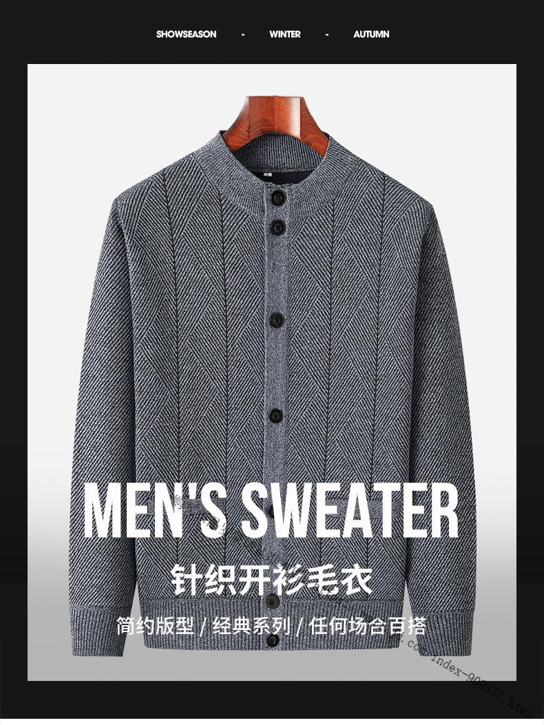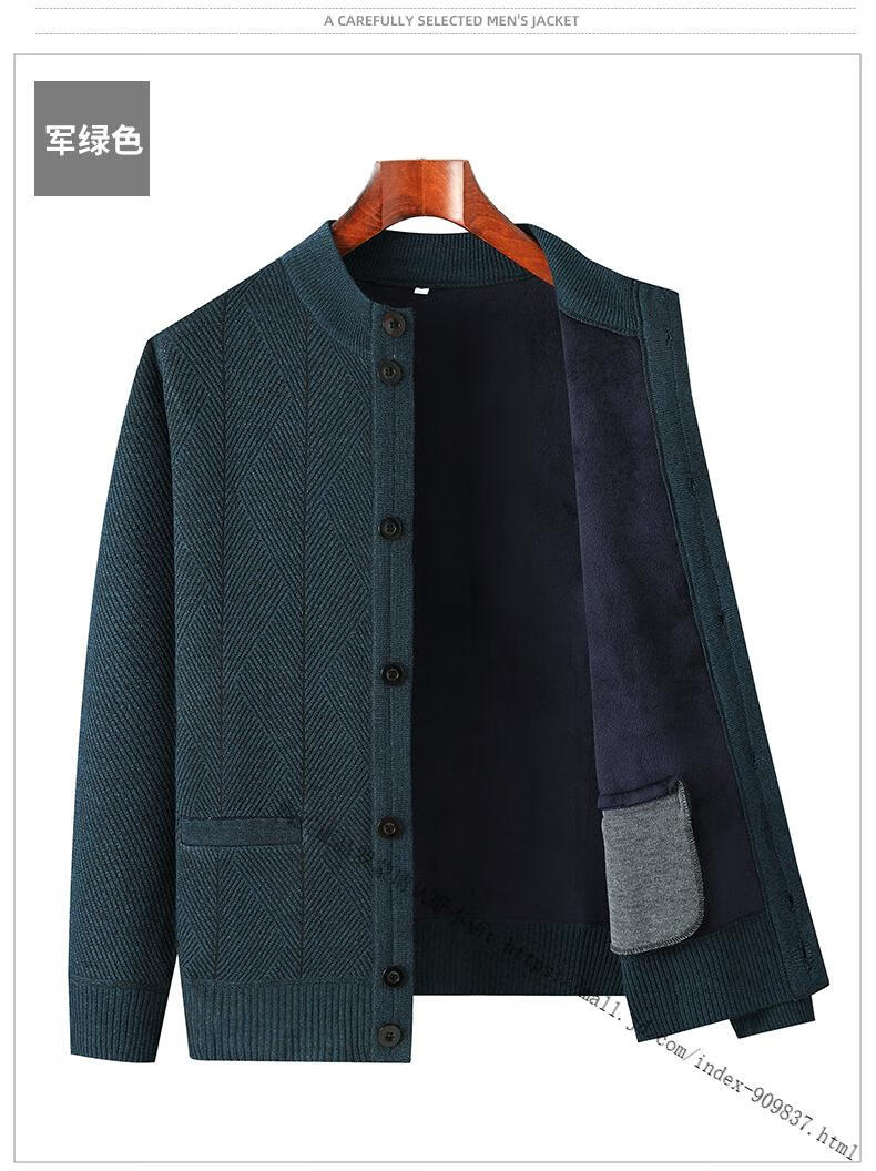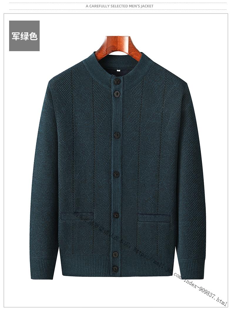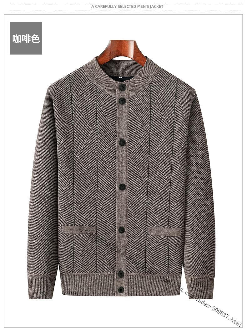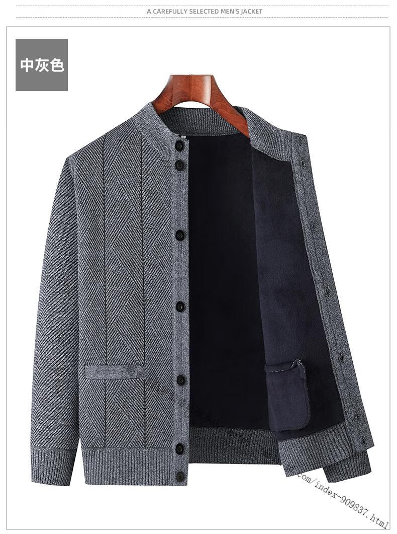 ROMON middle-aged and elderly men's winter sweater grandpa round neck cardigan autumn and winter dad velvet thickened sweater jacket 100% pure wool - whole body black gray KS vertical/terms - velvet M