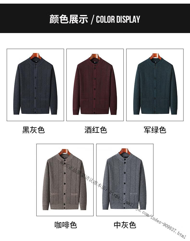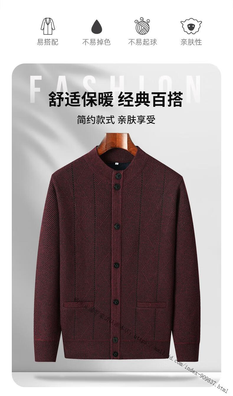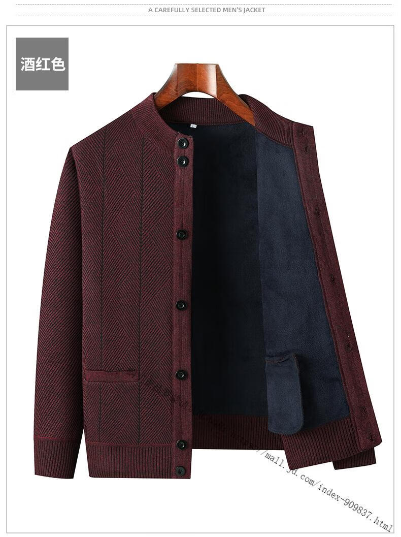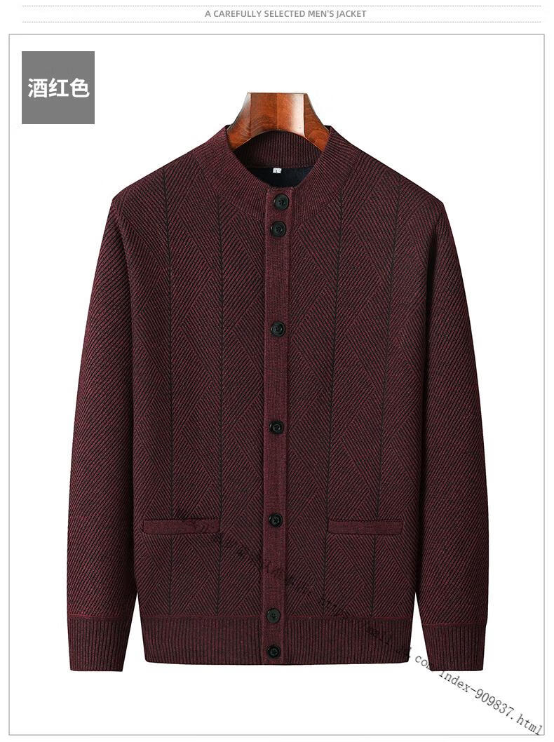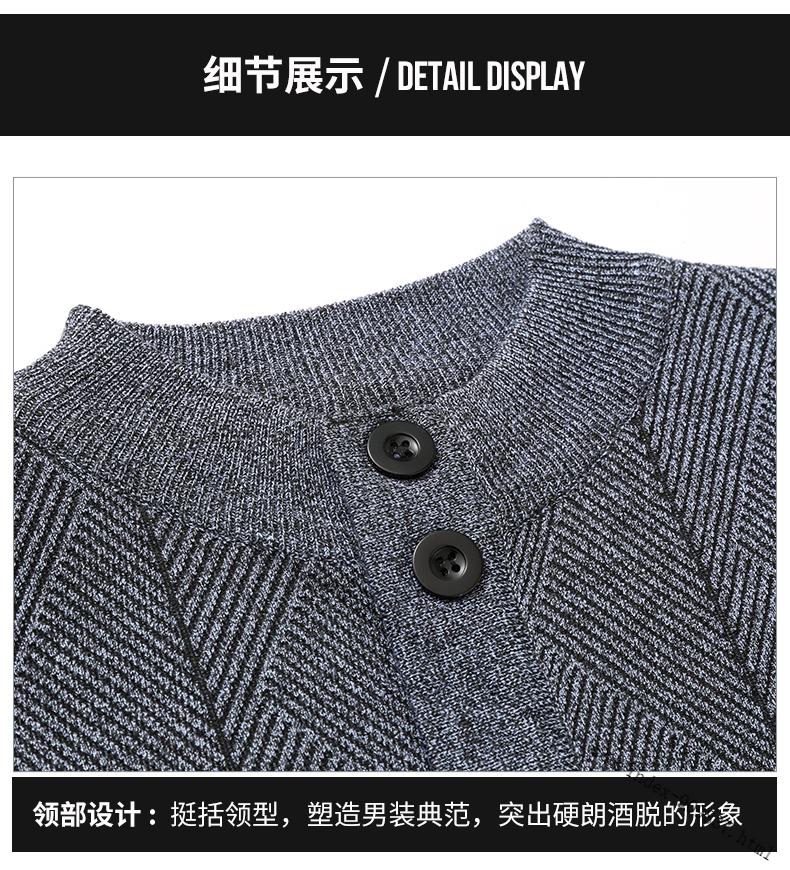 ROMON middle-aged and elderly men's winter sweater grandpa round neck cardigan autumn and winter dad velvet thickened sweater jacket 100% pure wool - whole body black gray KS vertical/terms - velvet M