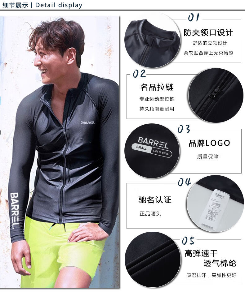 Barrel swimsuit men's surf suit split quick-drying tight-fitting wetsuit long-sleeved trousers direct-selling jellyfish snorkeling suit men's black cardigan M