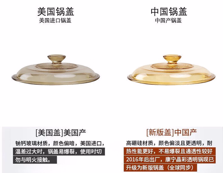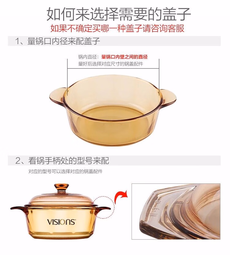 He Jiangong Corning pot lid American VISIONS crystal color glass lid household glass universal glass lid Pyrex-55 point 5L pot lid 1 inch
