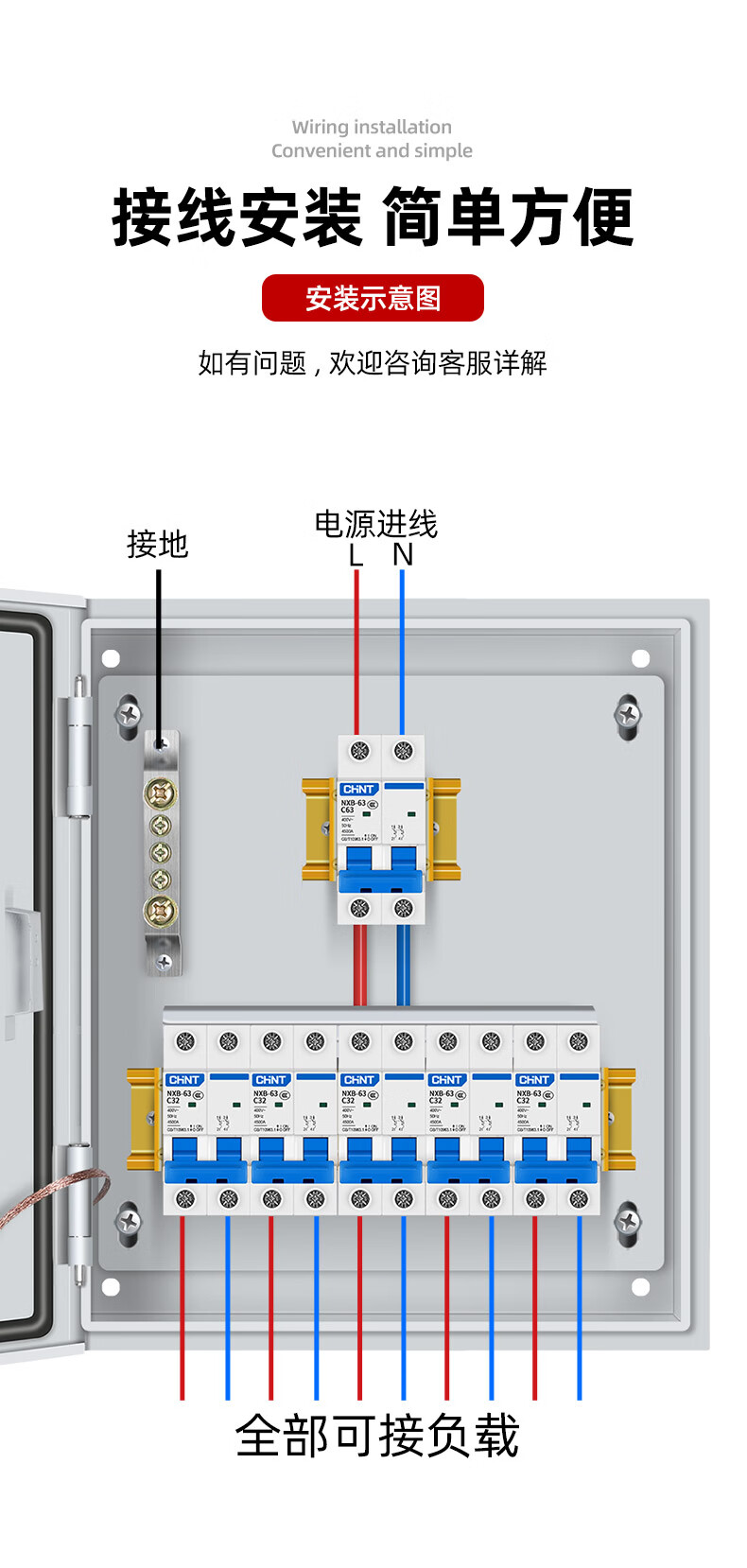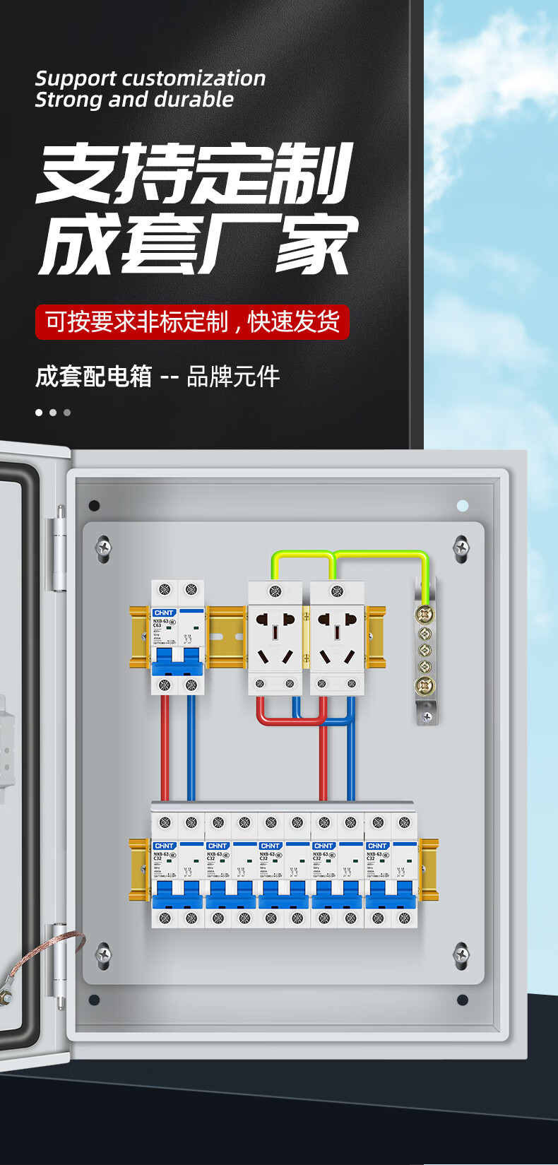 G CDQCN distribution box 220V household single complete set indoor base box 63A lighting socket leakage protection box strong current box Gechi configuration 1 indoor total open with leakage customized