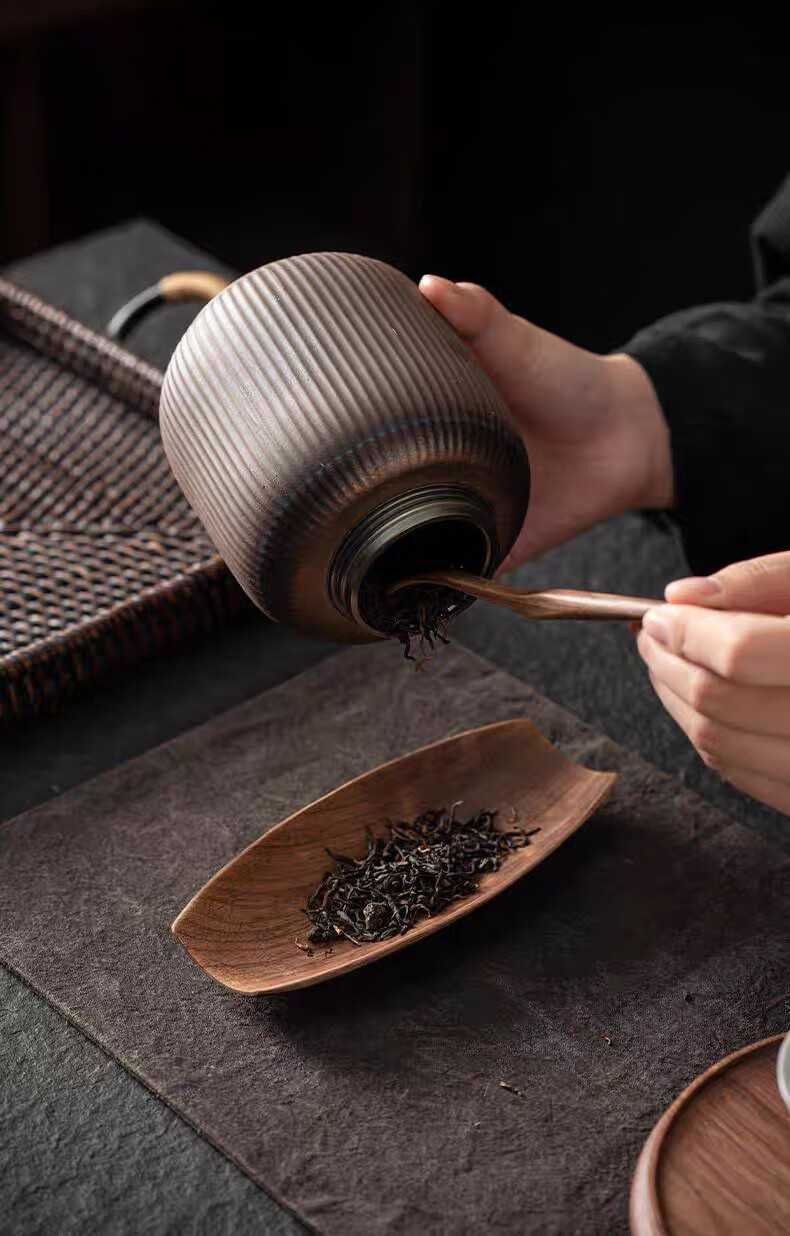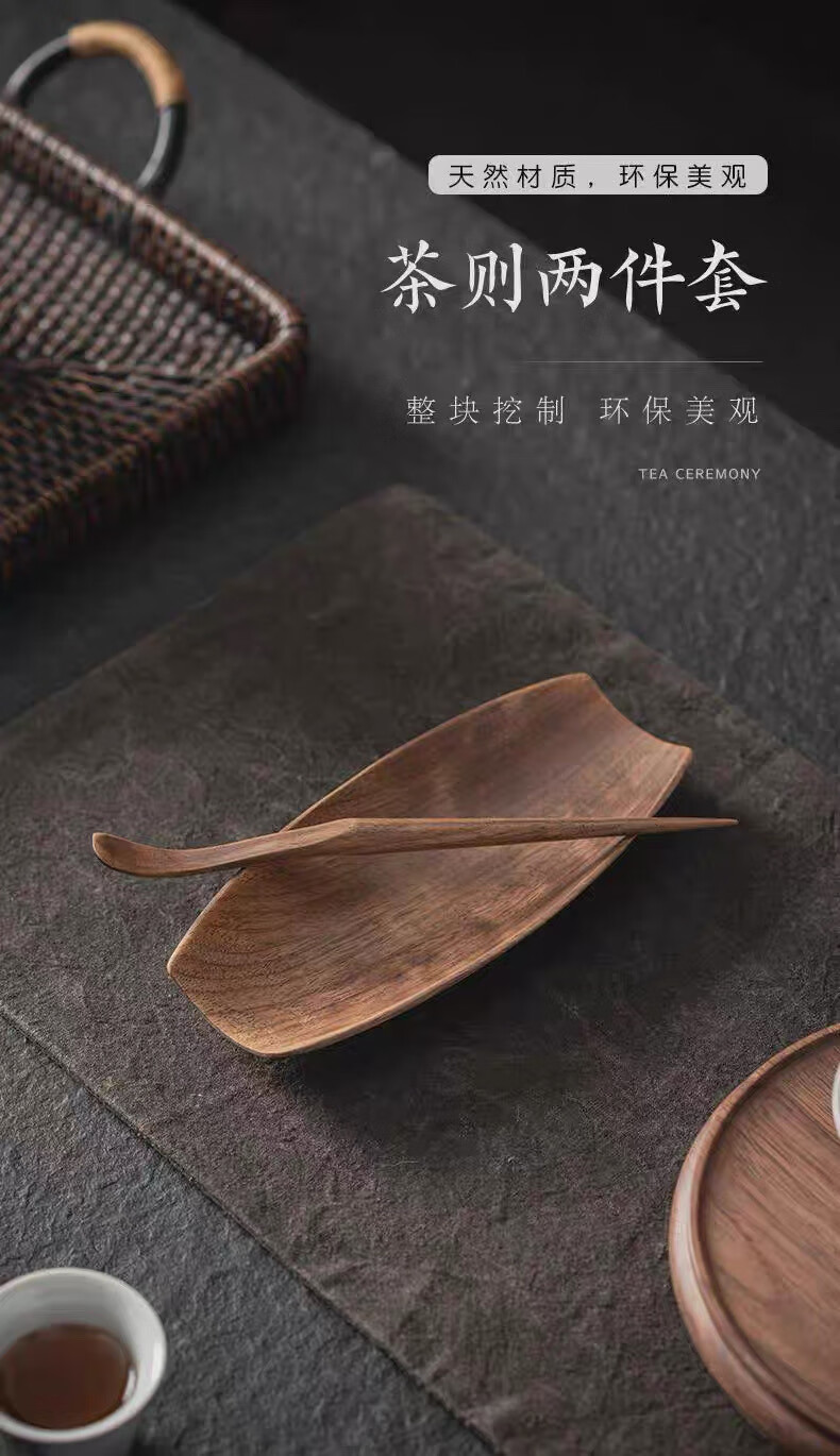 Wen Yijia black sandalwood high-end tea set two-piece set household tea pick tea spoon tea spoon tea accessories wake up tea lotus black sandalwood tea set