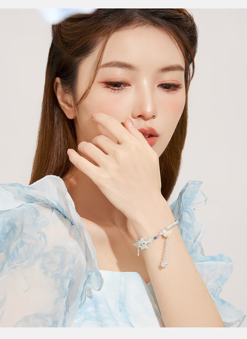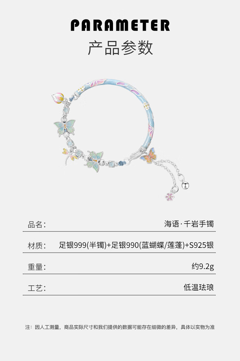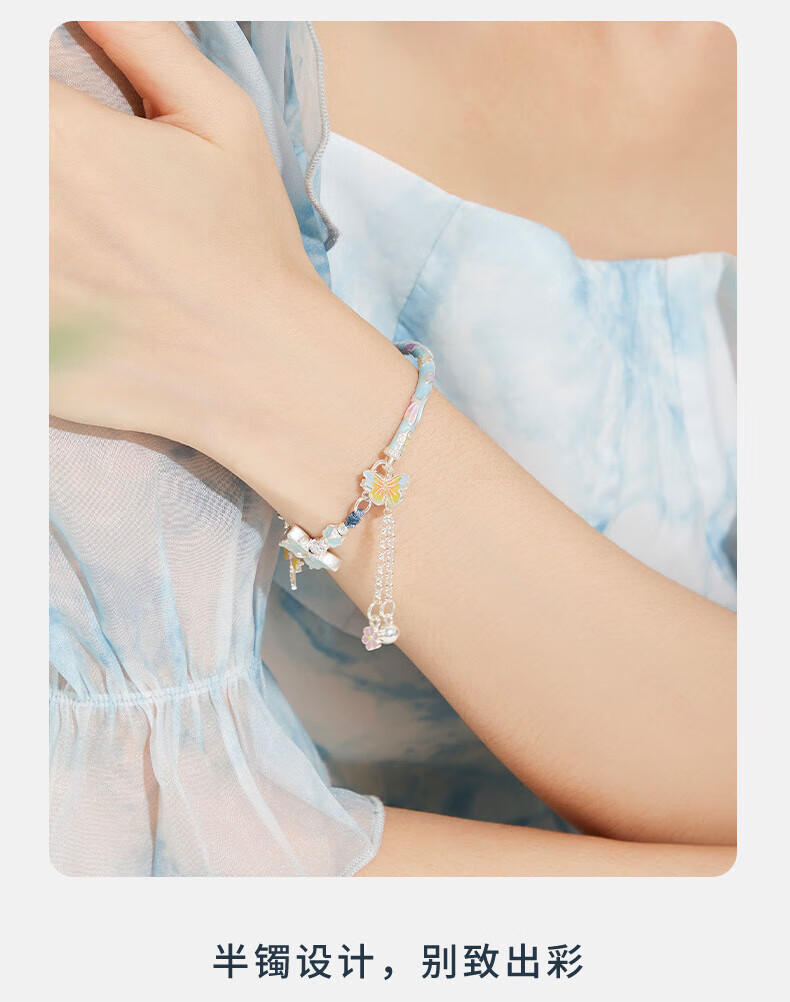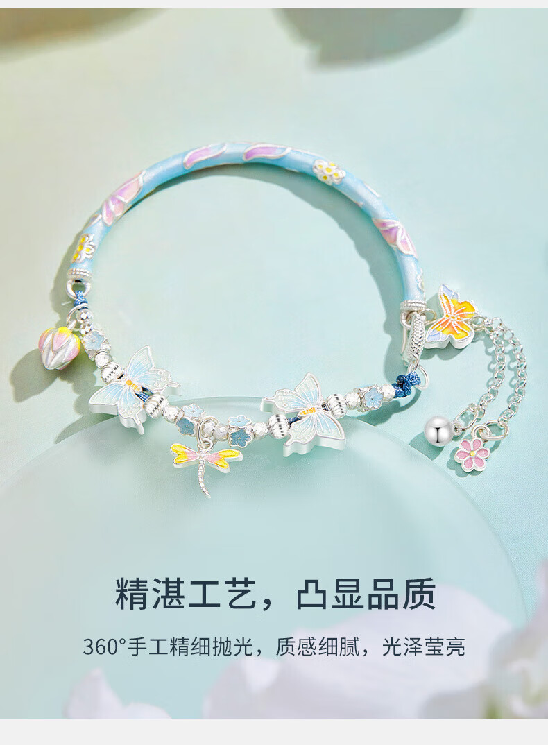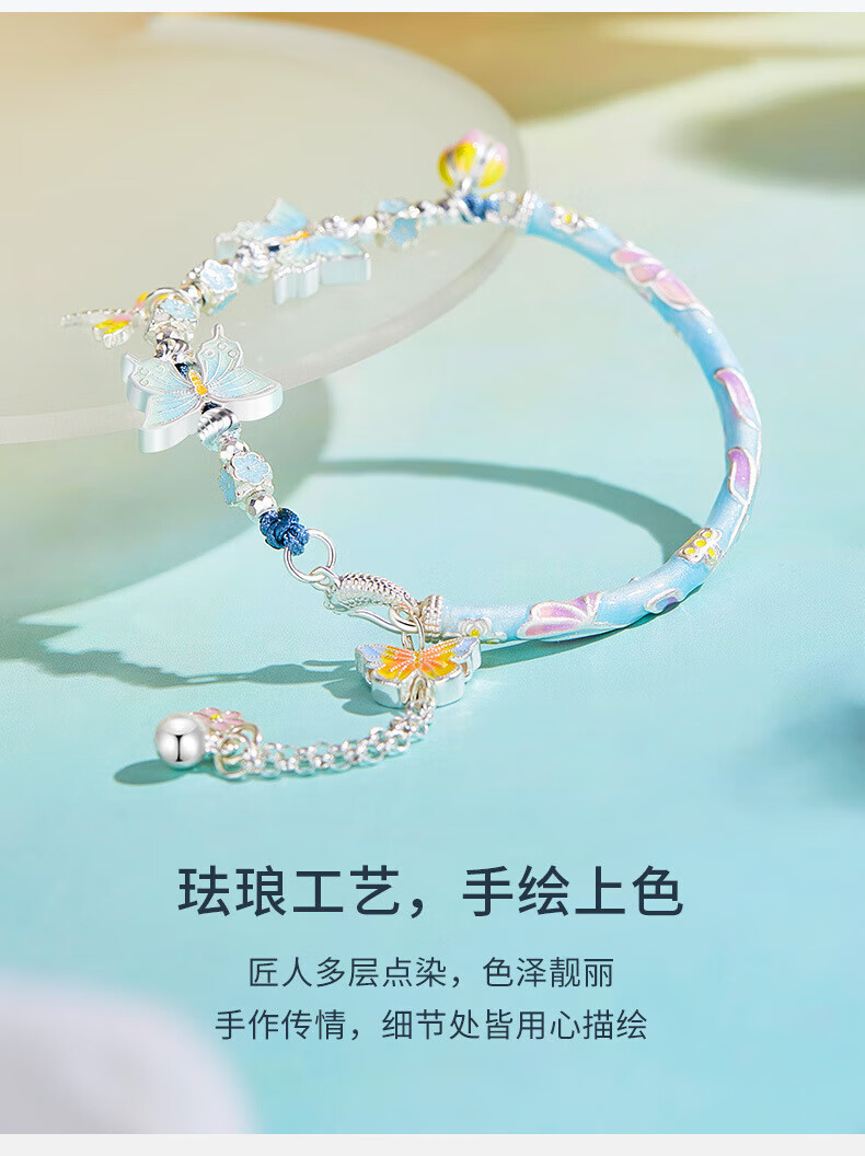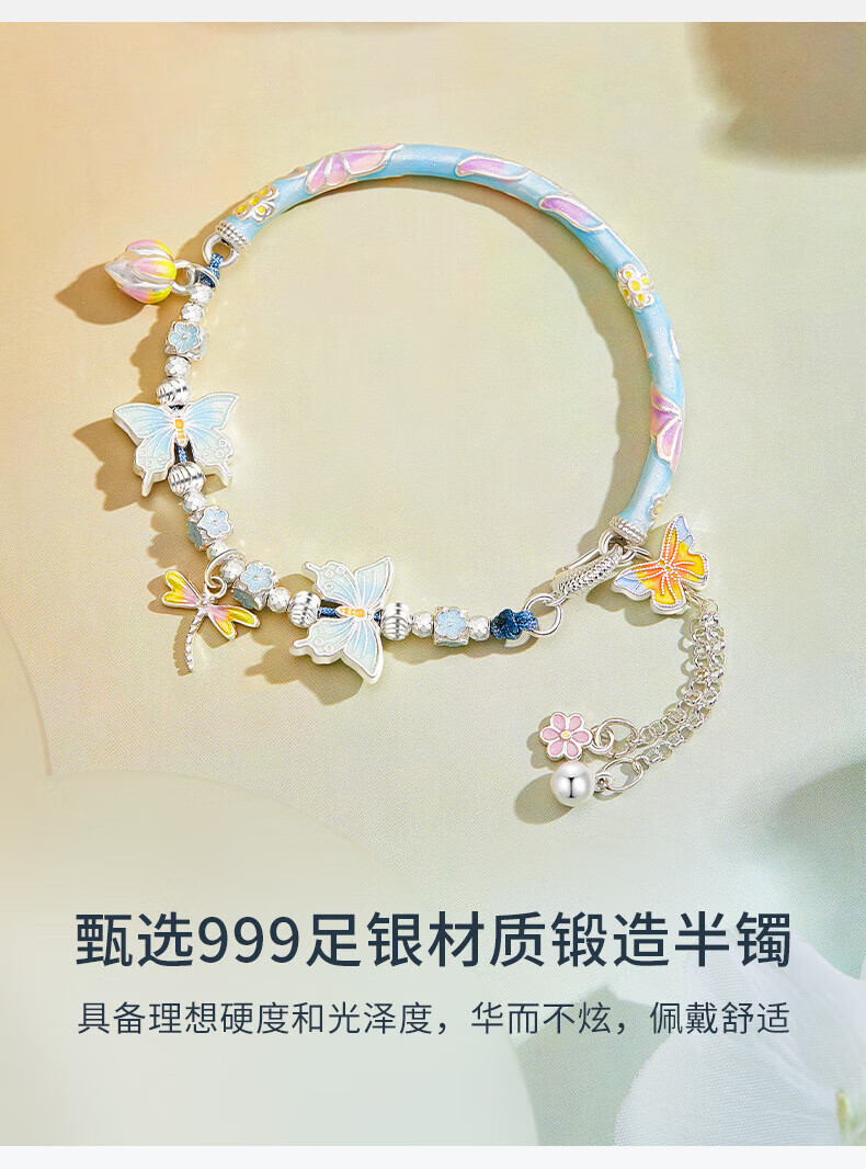 Half new foot silver enamel butterfly bracelet bracelet for women 99 silver curved tube new Chinese style versatile half bracelet half chain Taoyaoqiyu half bracelet