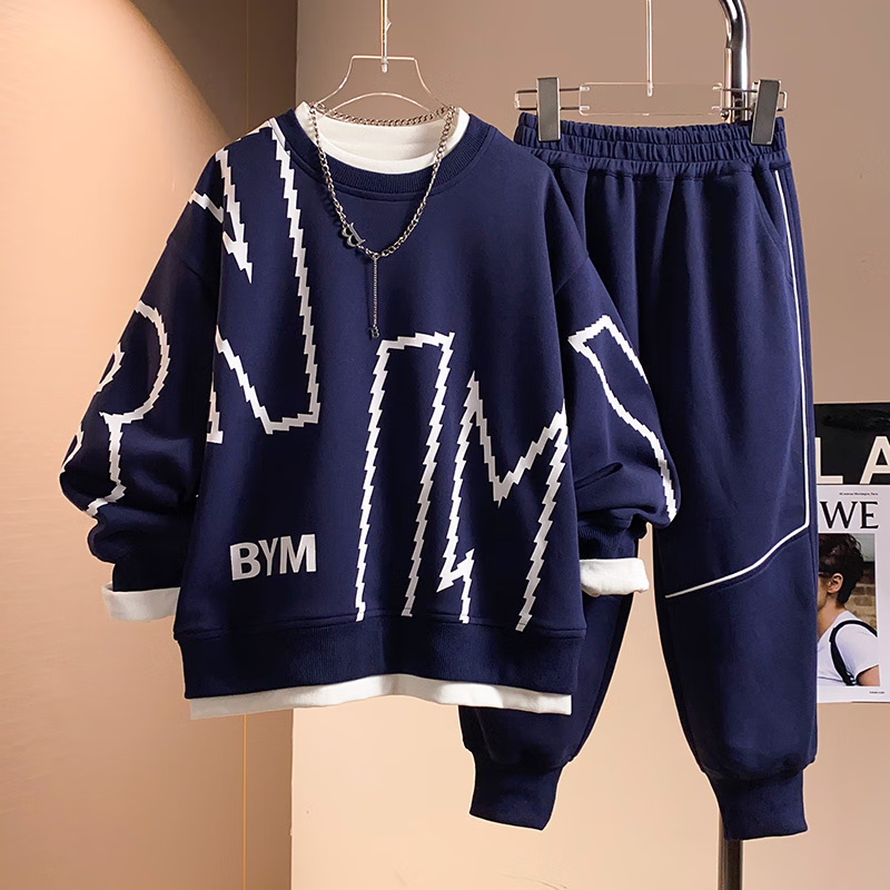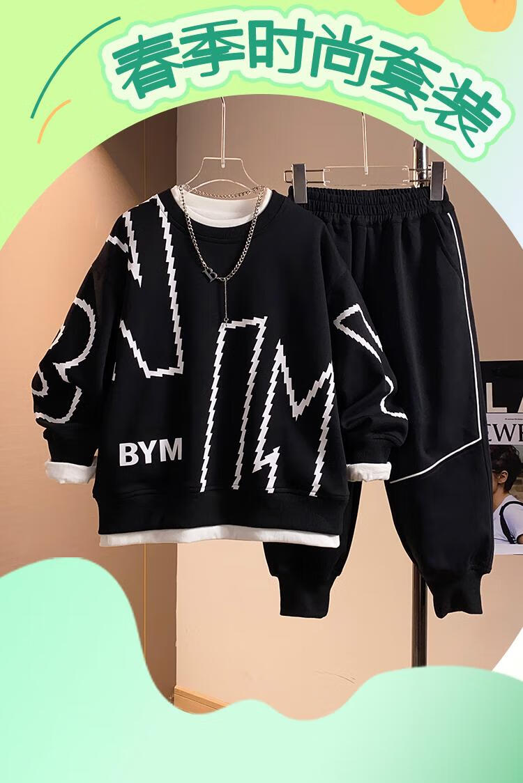 Yudie (YUDIE) 2025 new boys' spring and autumn velvet sweatshirt suit, big children's sports trendy suit 3085 black suit 140 cm