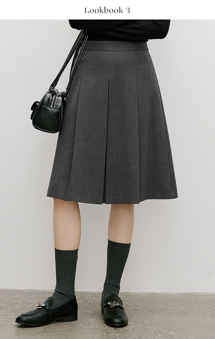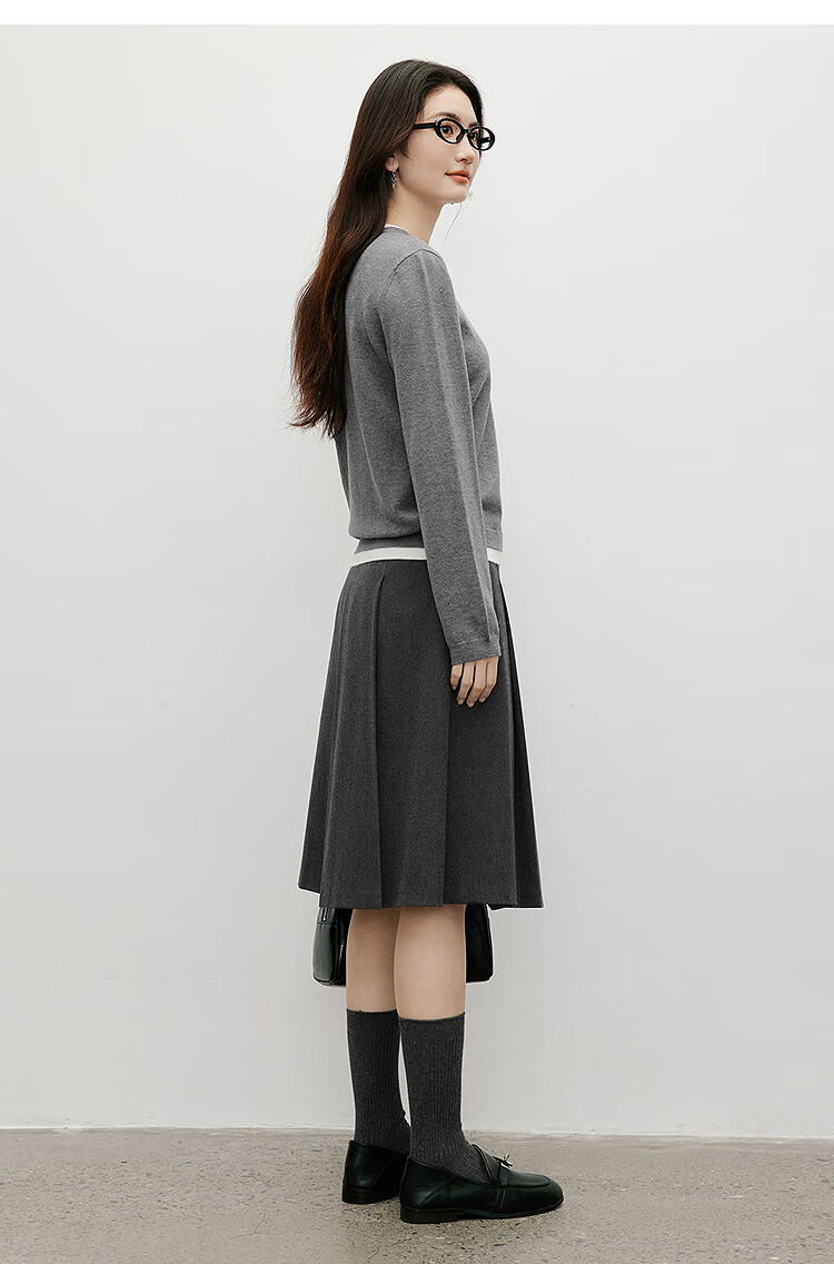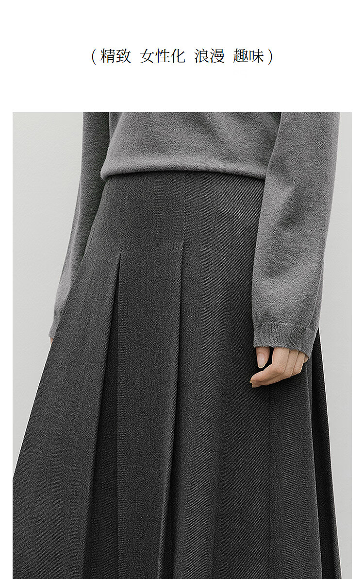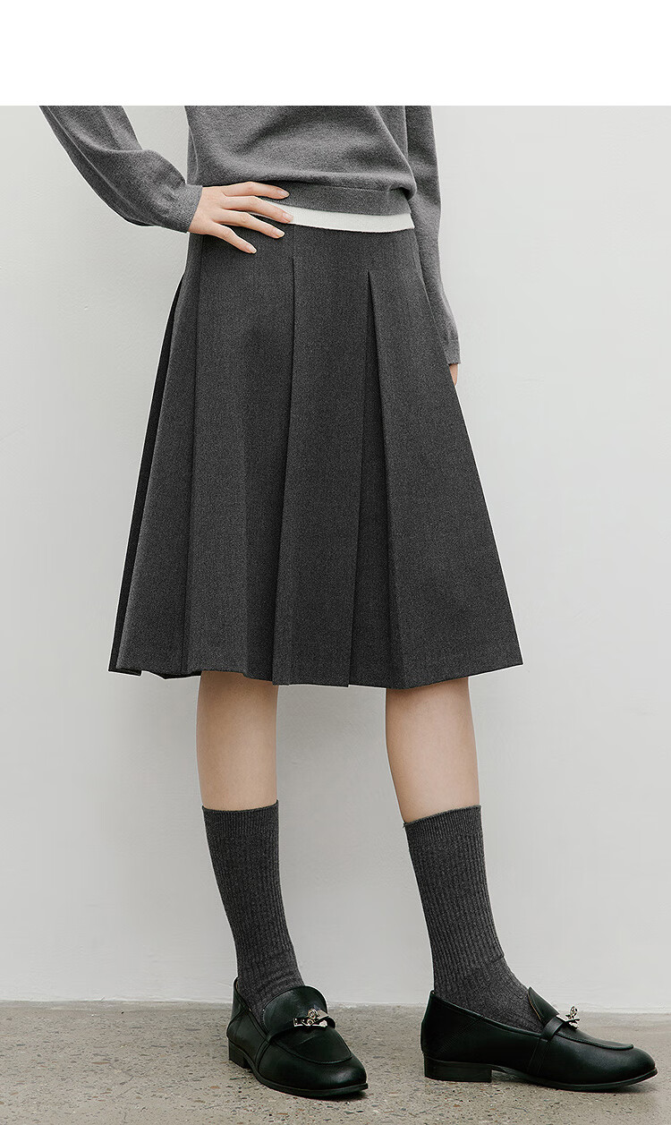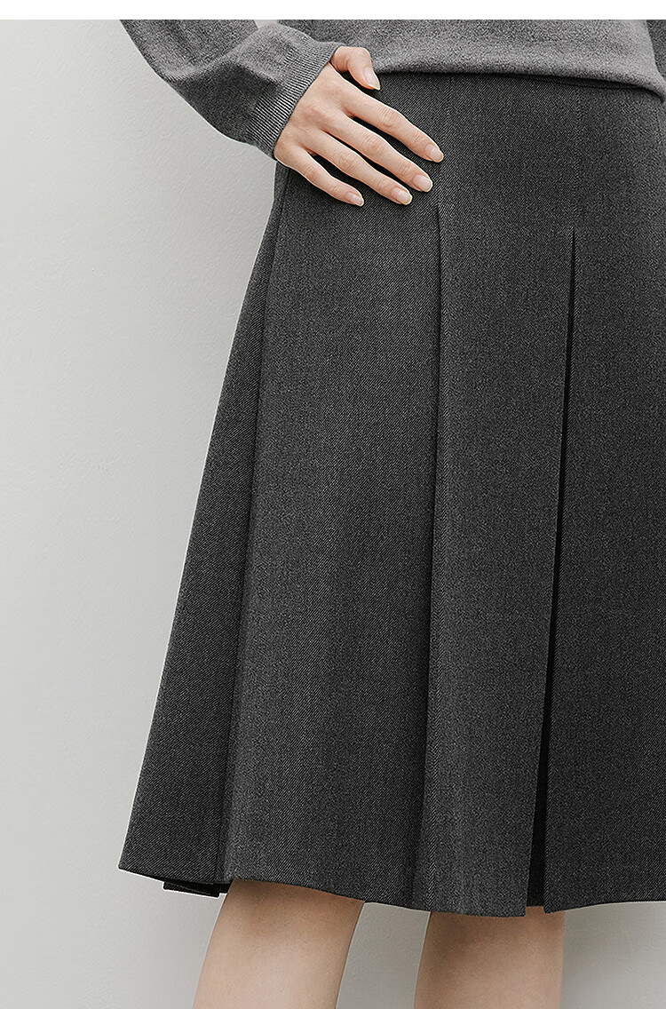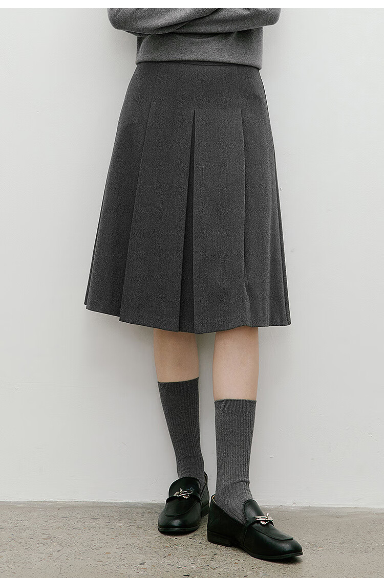 Red sleeve (hopeshow) high-end retro-feel skirt 2025 winter new women's MIU series versatile slimming temperament A-line pleated skirt Smoke 056 M