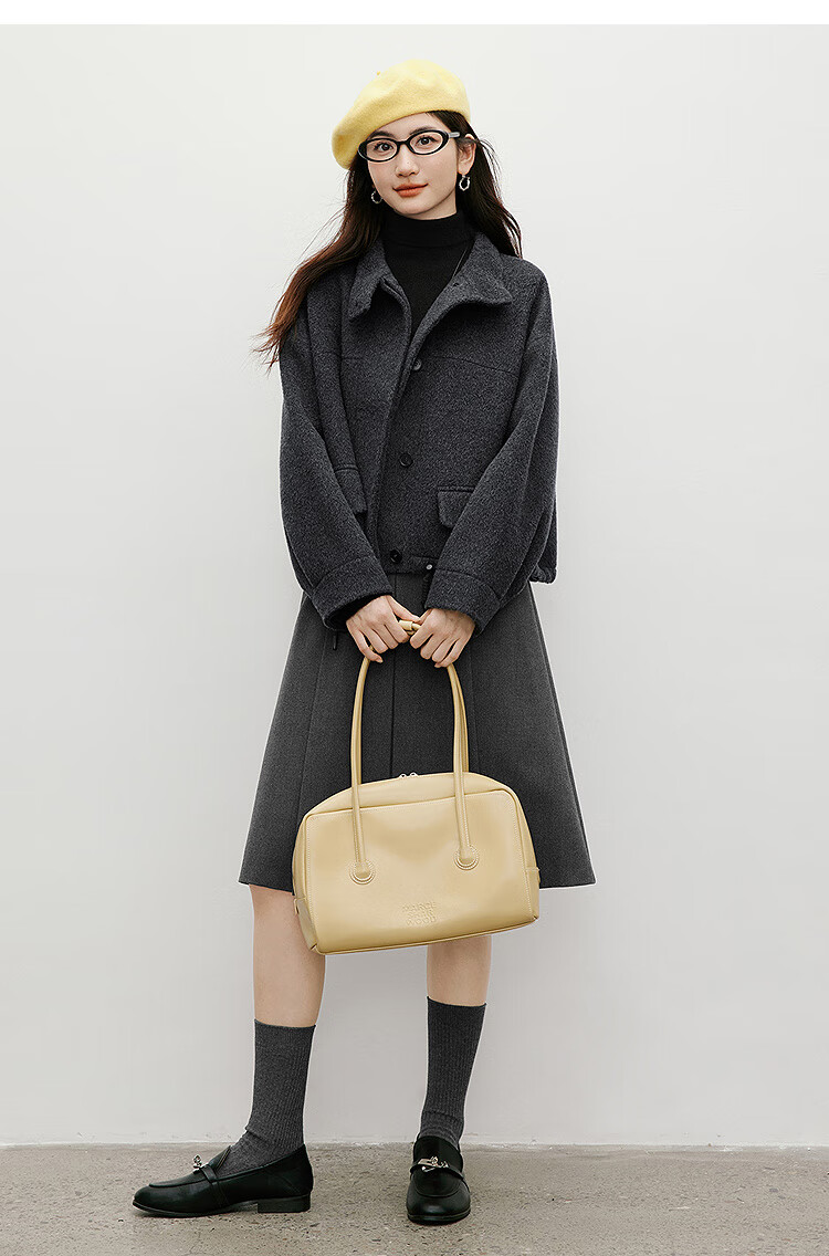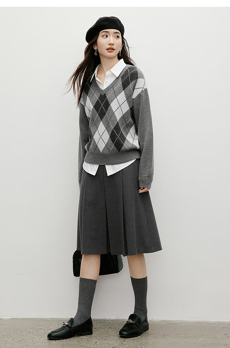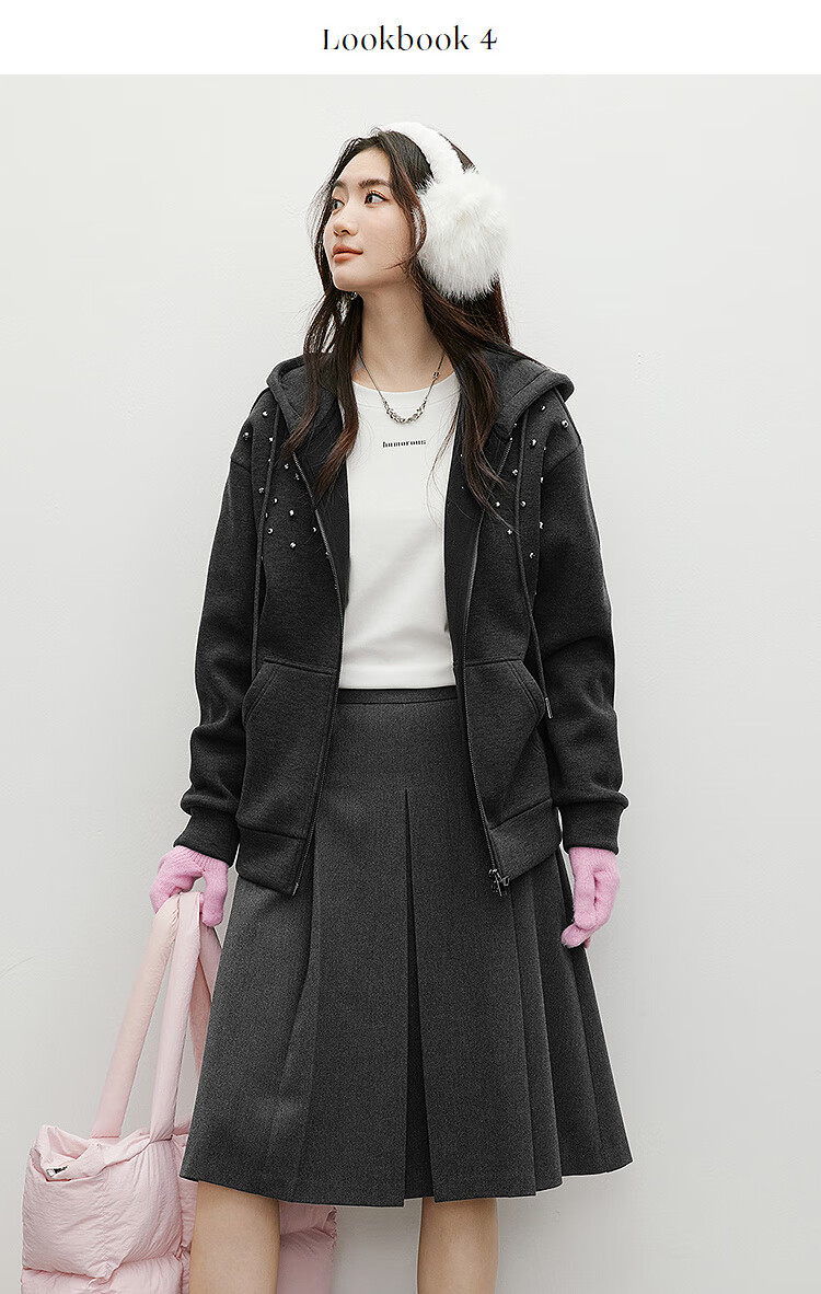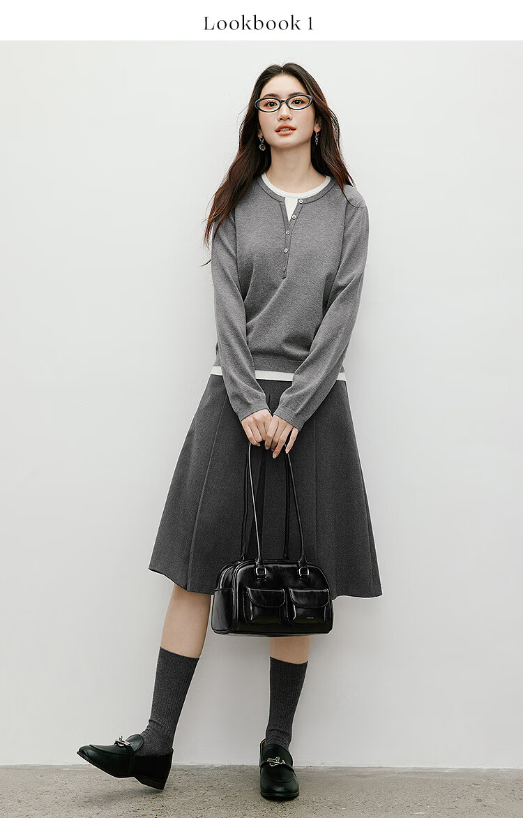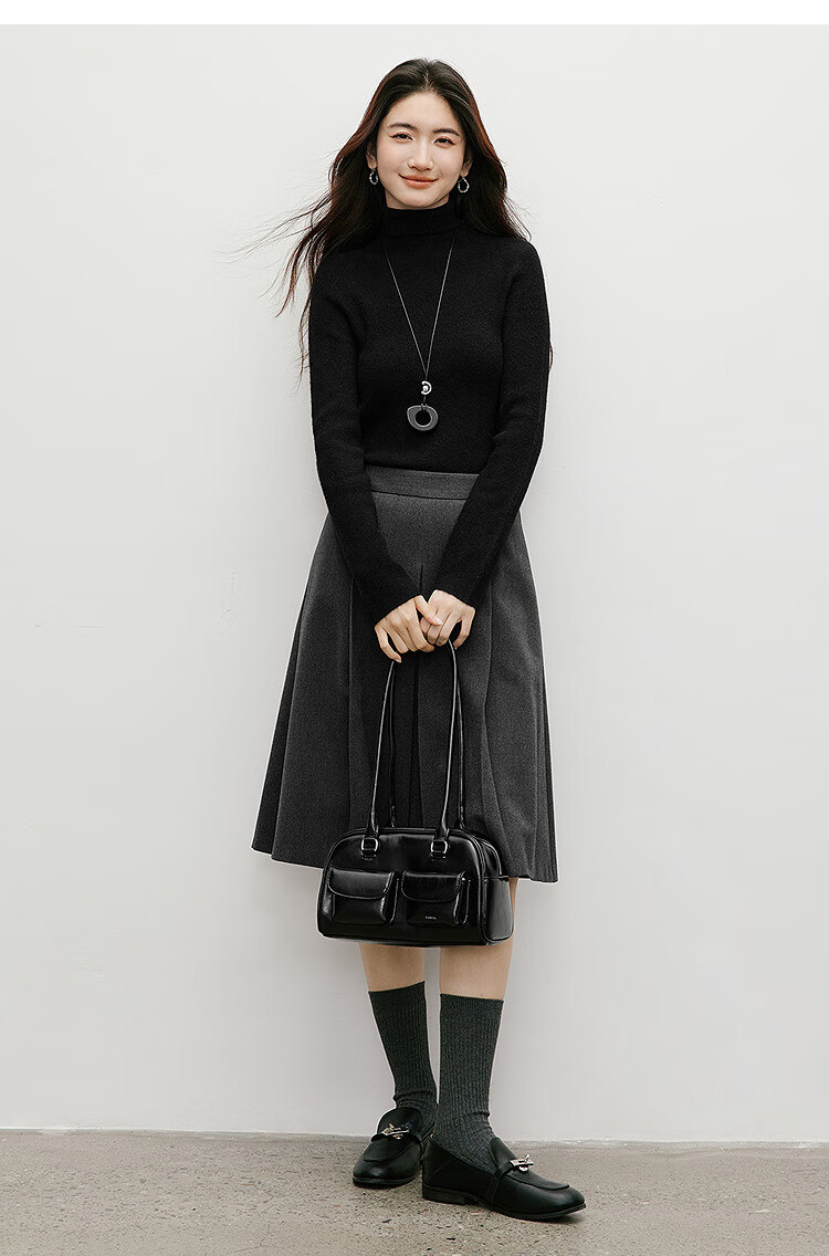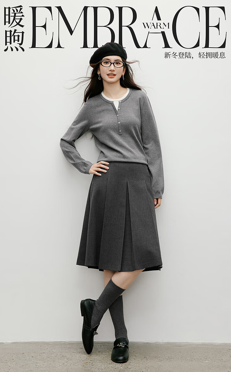 Red sleeve (hopeshow) high-end retro-feel skirt 2025 winter new women's MIU series versatile slimming temperament A-line pleated skirt Smoke 056 M