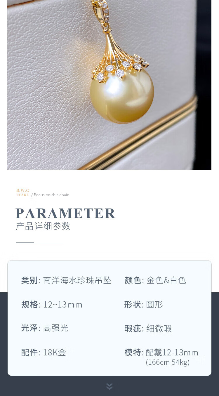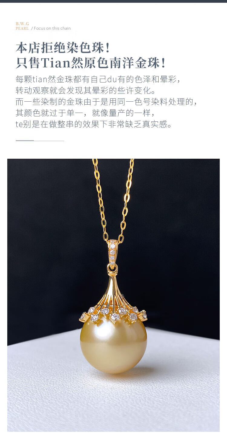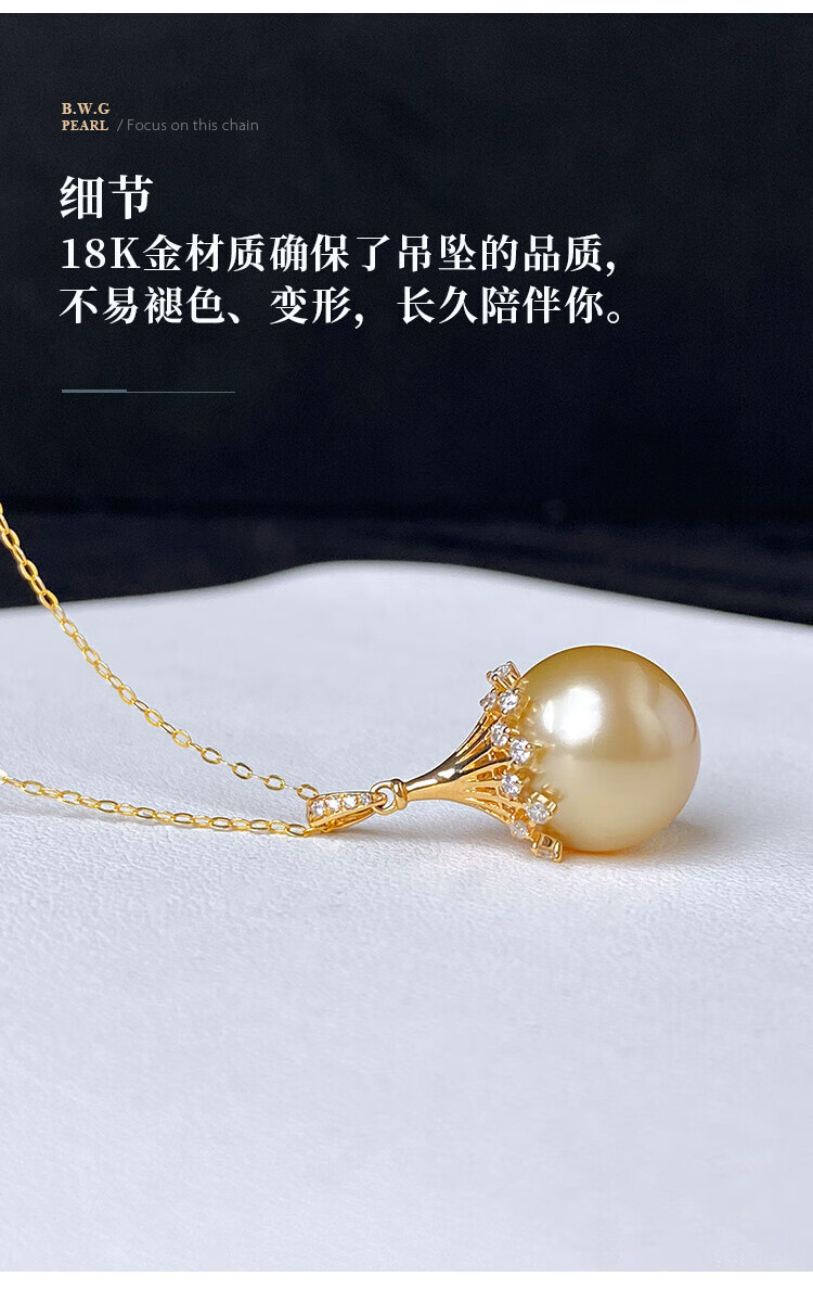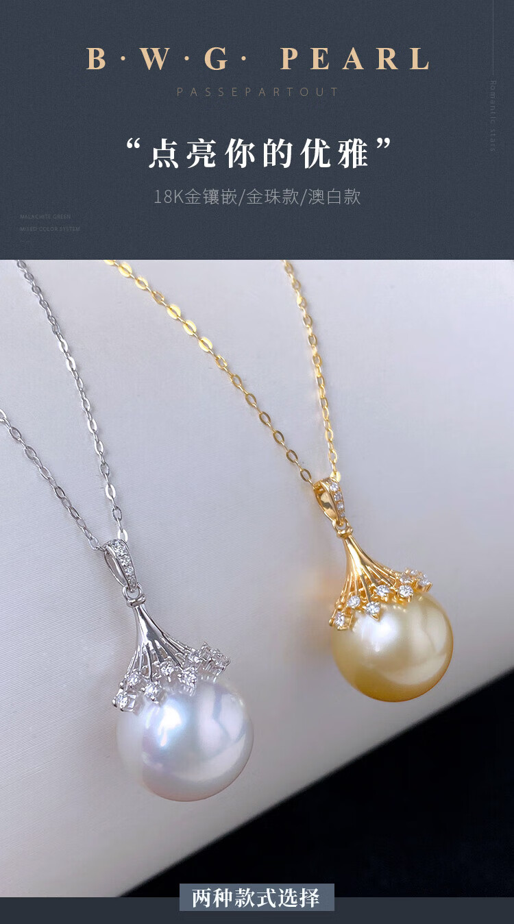 Half ocean seawater gold beads Australian white pearl pendant 18K gold material inlaid with K yellow K white temperament 12-1 gold bead style
