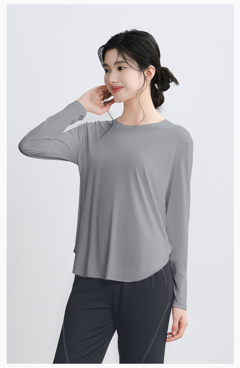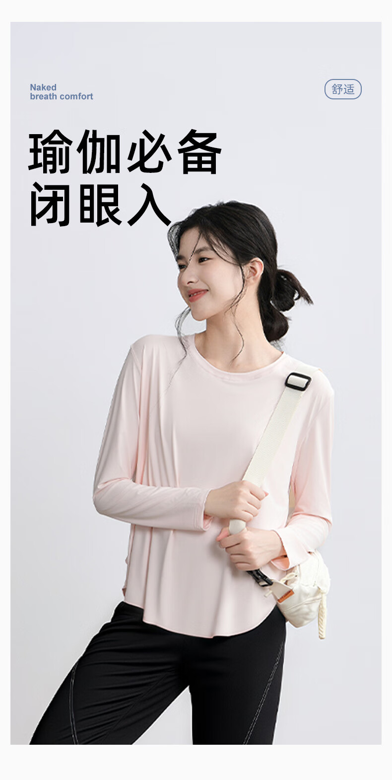 Yoga clothes for women 2025 new autumn running Pilates training professional large size sports fitness long-sleeved top suit light pink + tomato purple soft and breathable flexible and elastic M suitable for 95-105 Jin Jin equals 0.5 kg