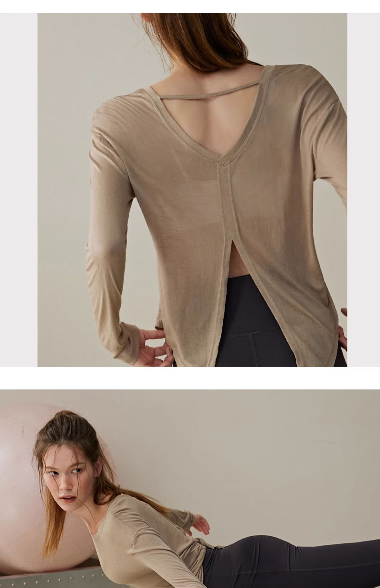 Yoga clothes for women, spring and autumn loose sports long-sleeved blouses, running fitness tops, professional Pilates training clothes, white M