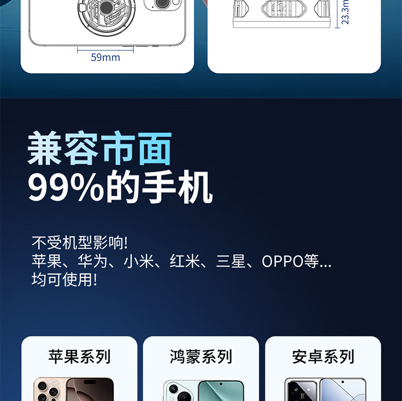 Hang suitable for realme mobile phone radiator gt7pro playing games neo7 live broadcast gt6 special gt5pro magnetic v70 black real ice-3-speed digital display temperature control SR17