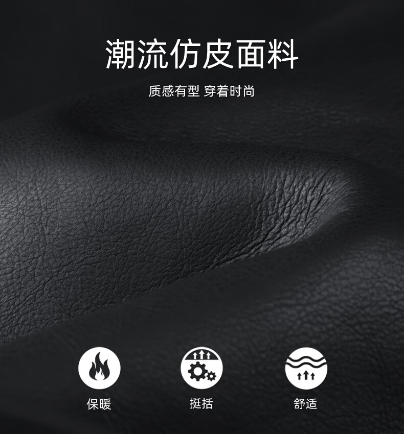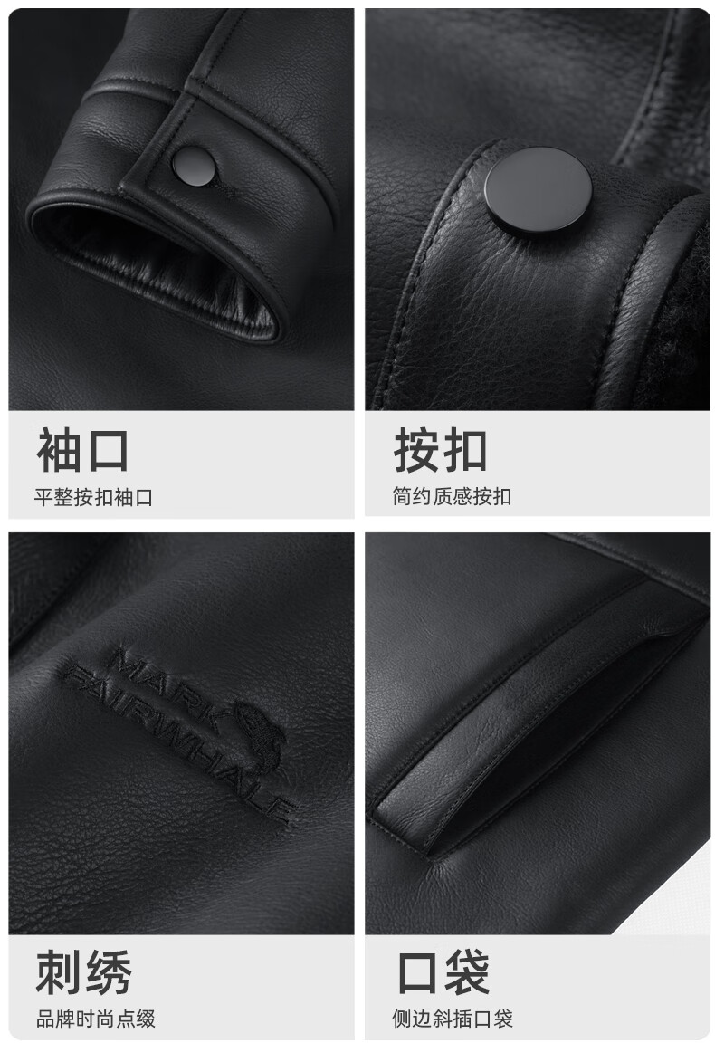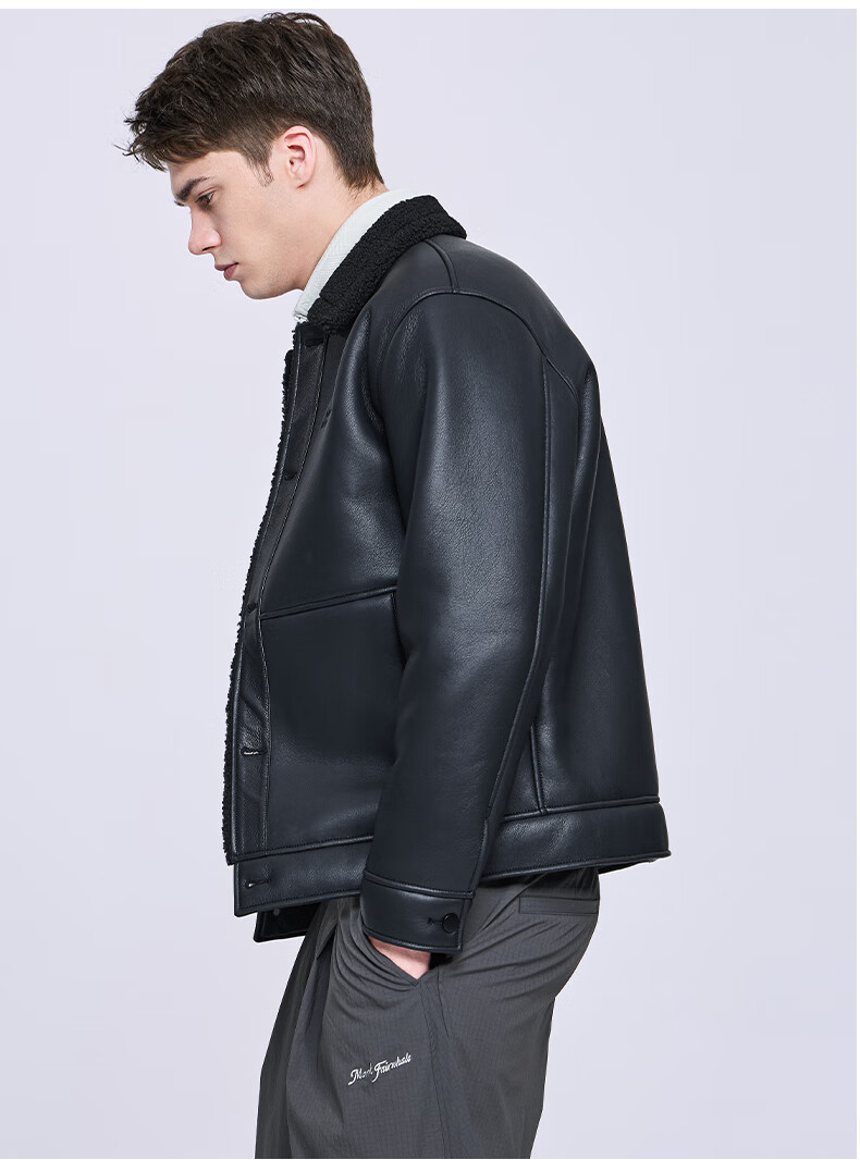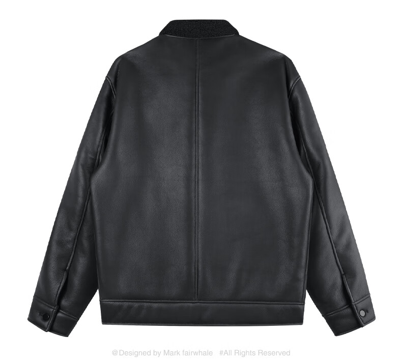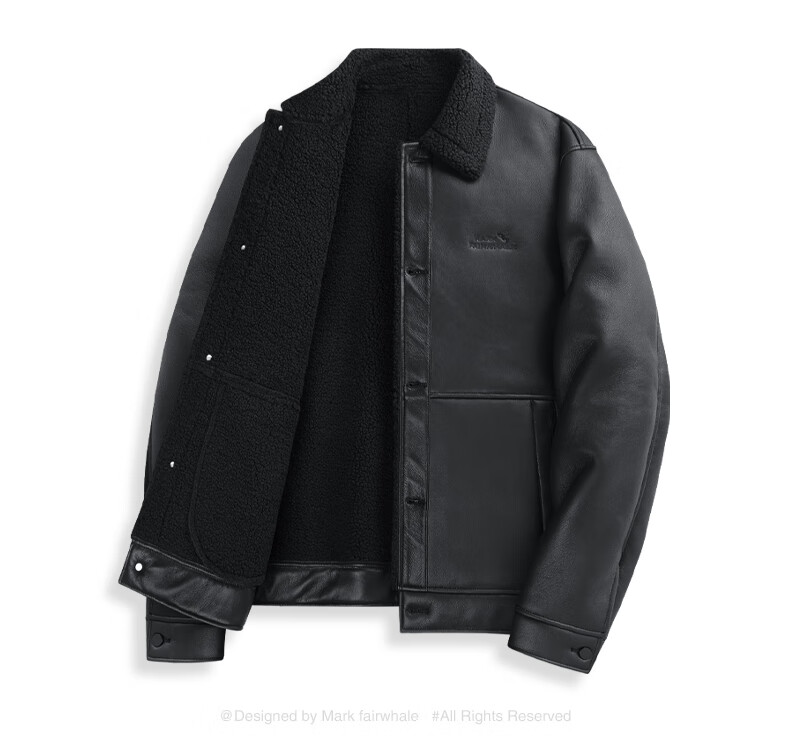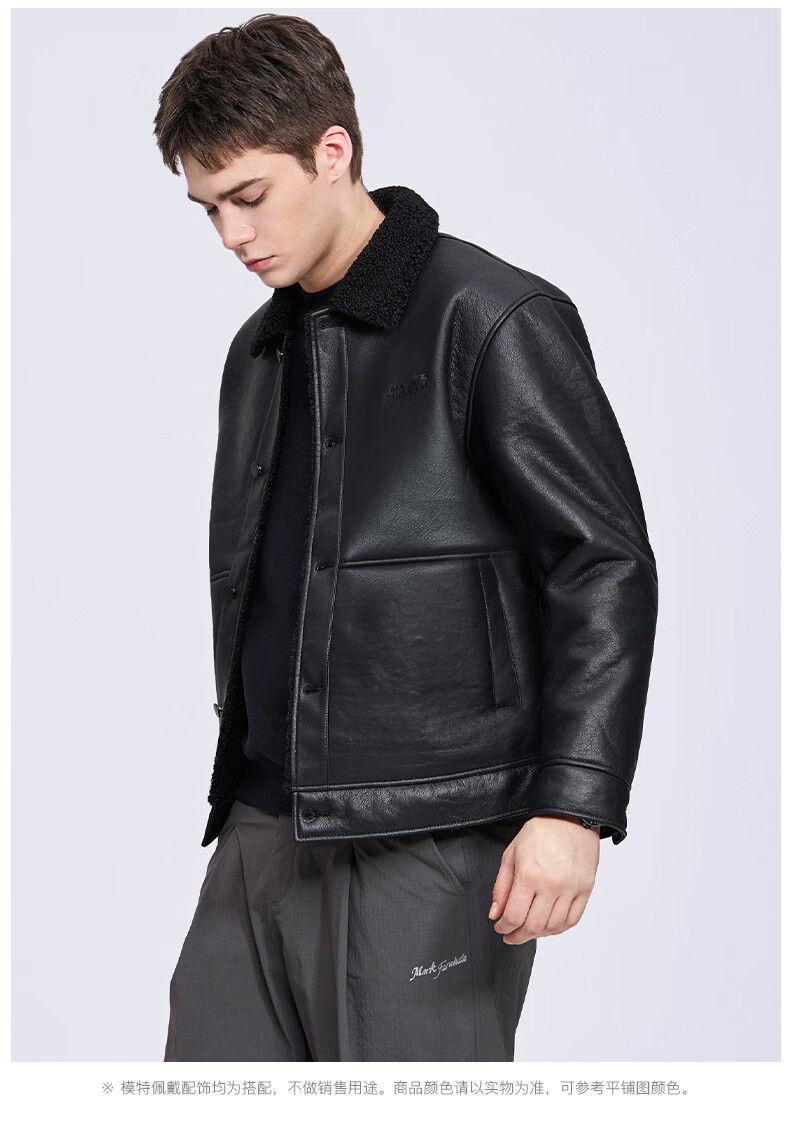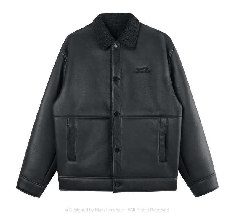 马克华菲摇粒绒翻领皮夹克男2025秋冬新款潮流保暖防风pu皮外套1515 黑色001 M 170