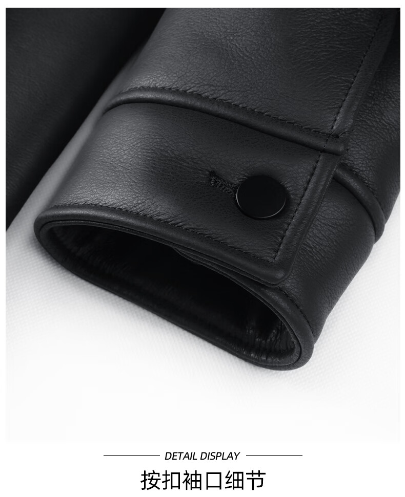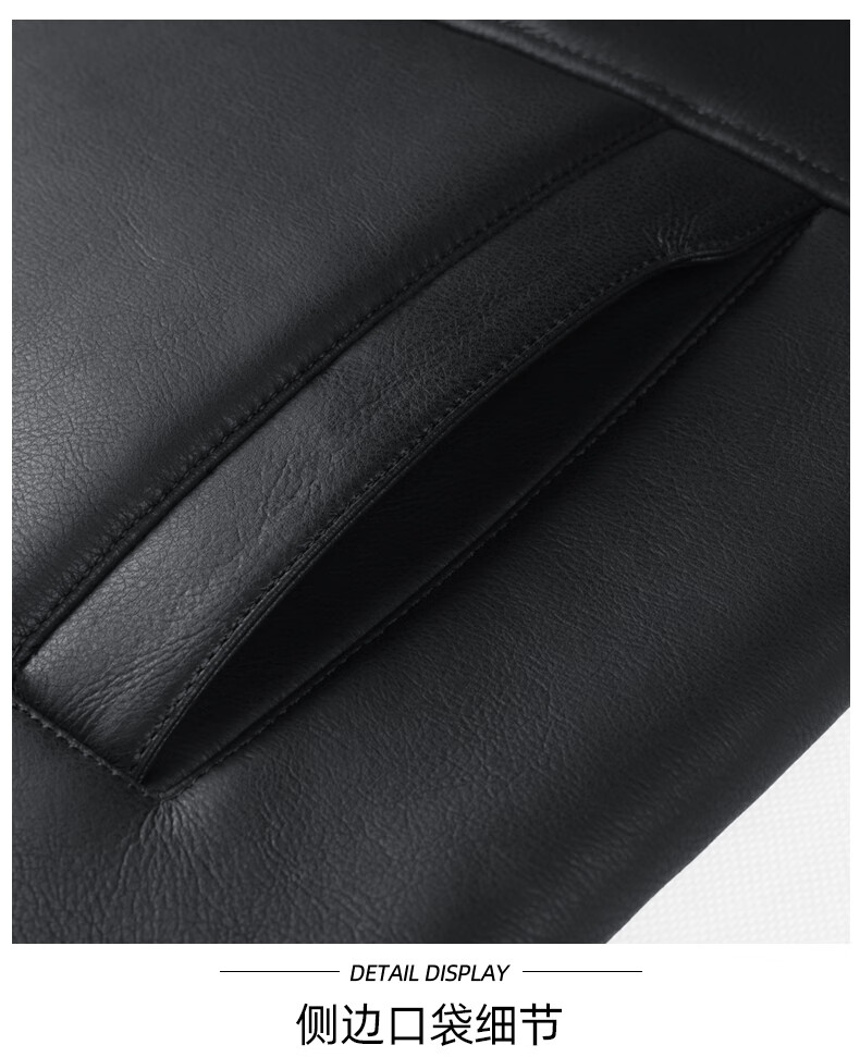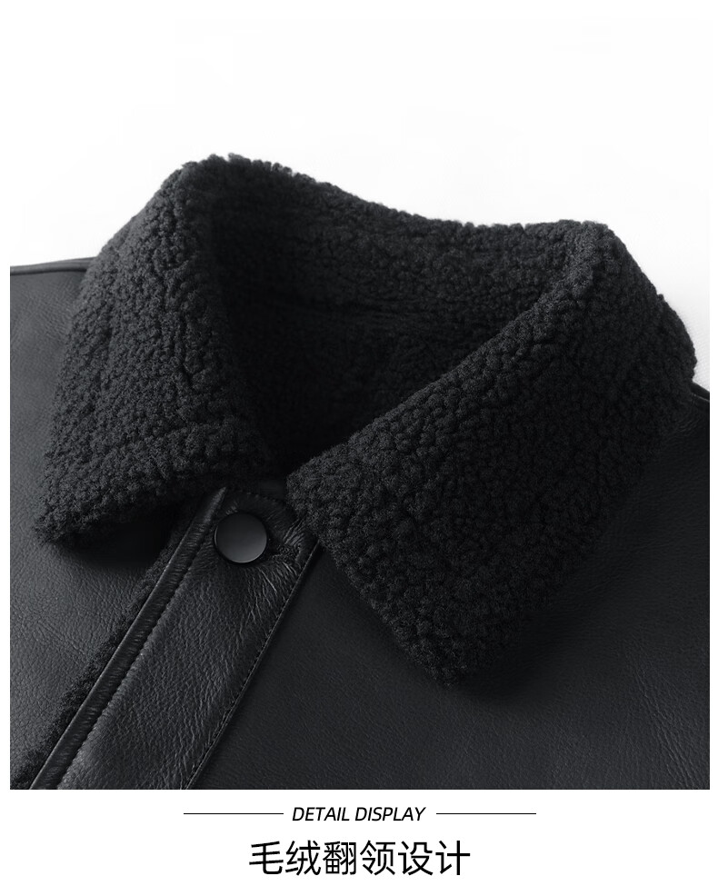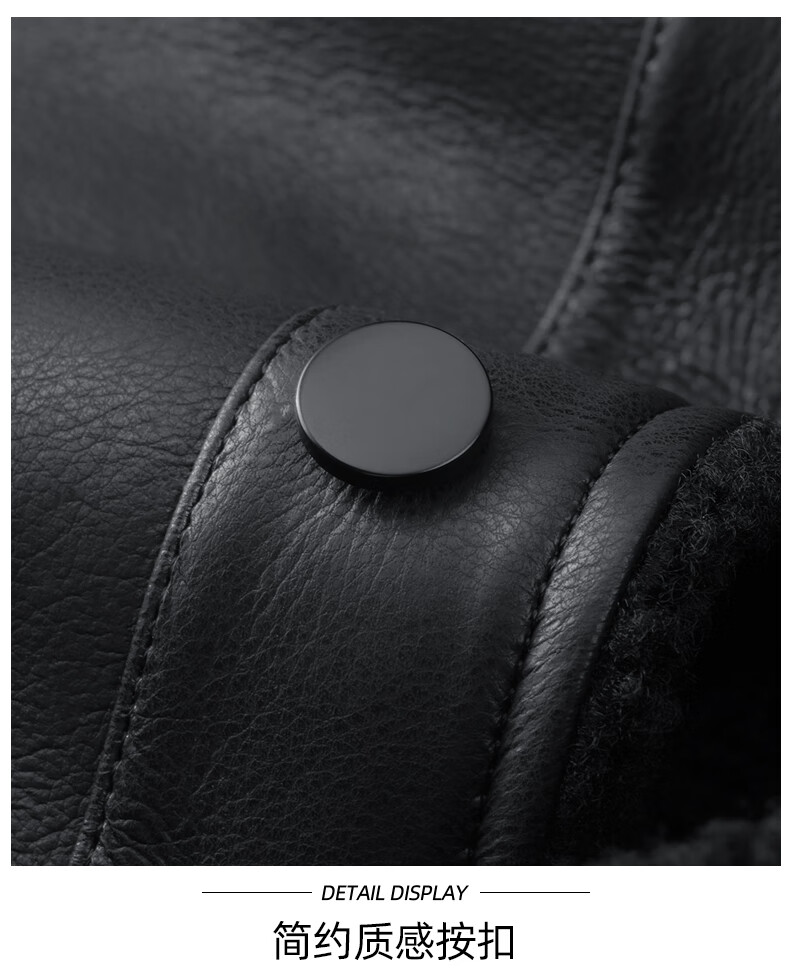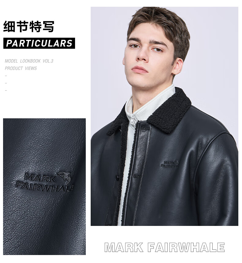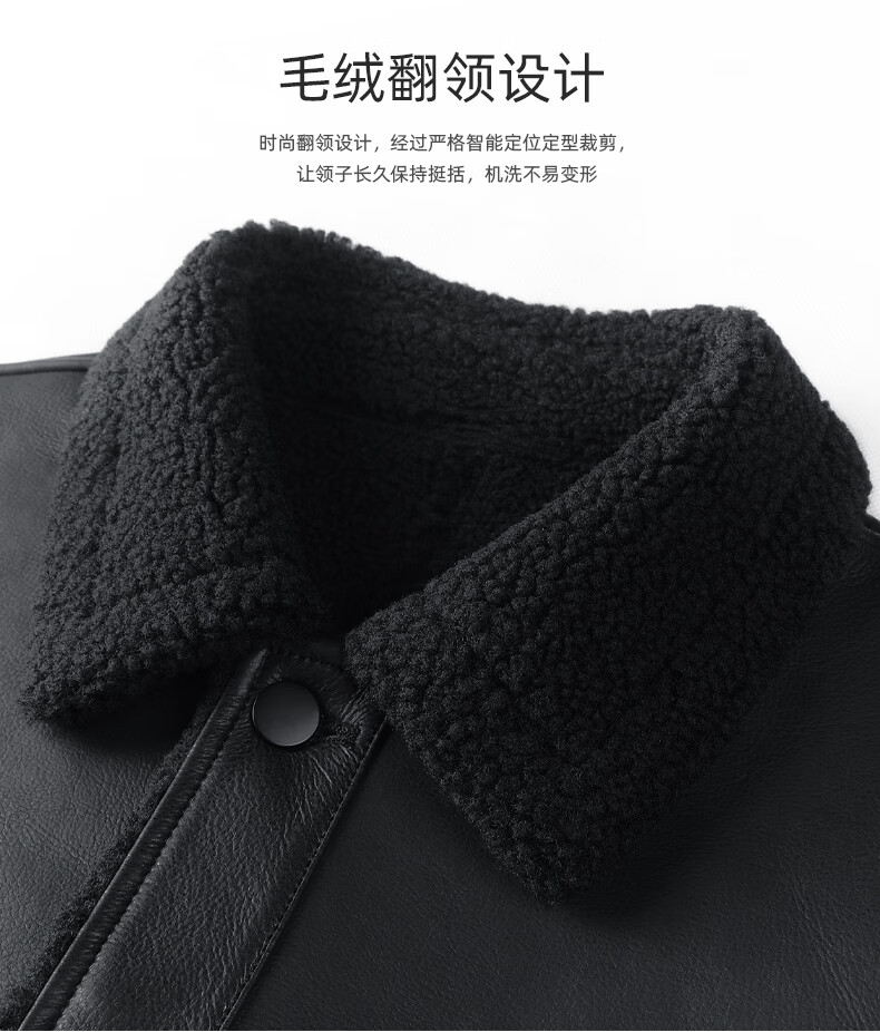 马克华菲摇粒绒翻领皮夹克男2025秋冬新款潮流保暖防风pu皮外套1515 黑色001 M 170