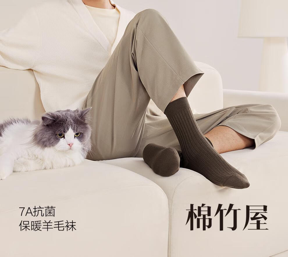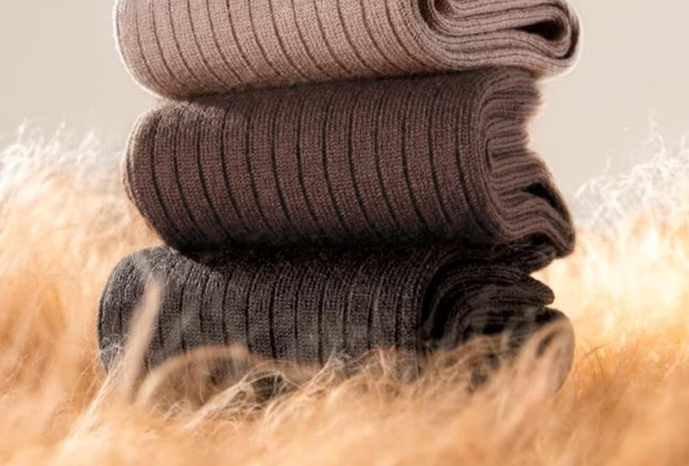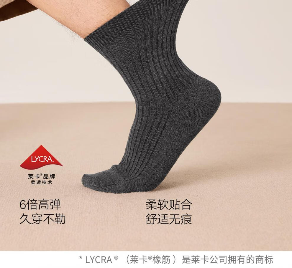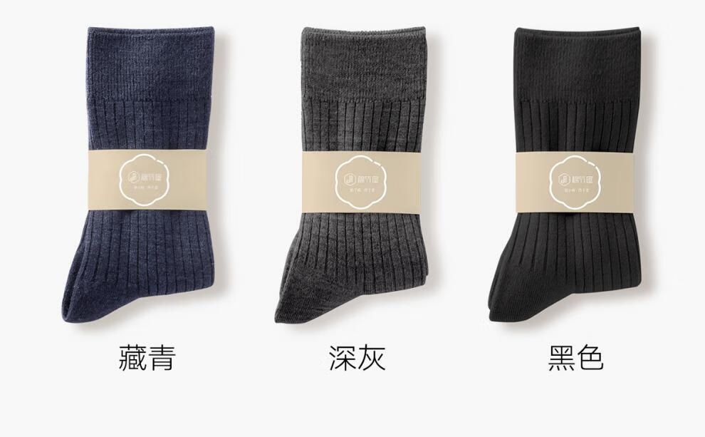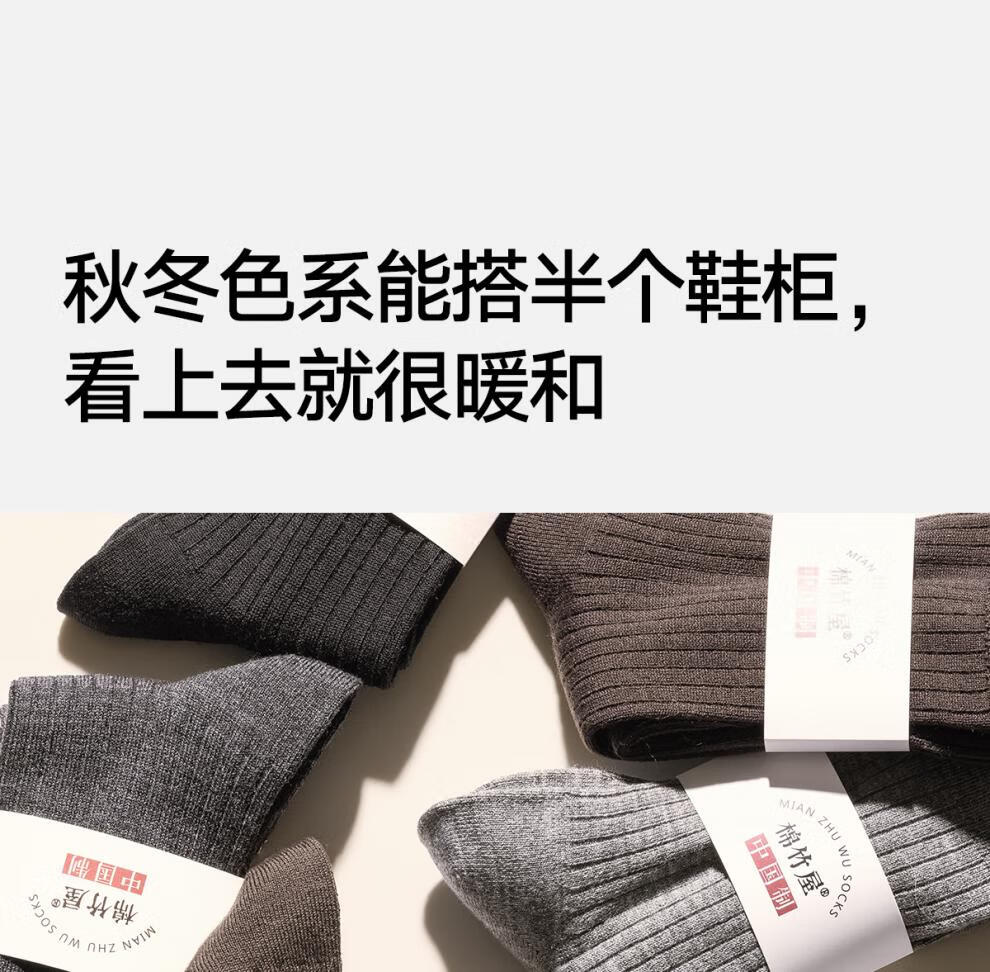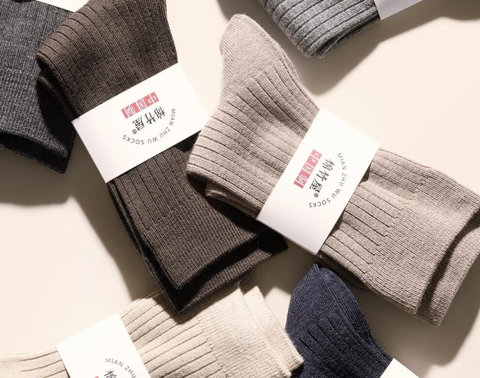 Mianzhuwu Men's Thickened High Socks for Autumn and Winter, Heat Storage and Warmth, No Pilling, Black Stockings, Combination Thirteen (Medium Gray + Camel + Navy Blue + Navy Blue), One Size 39-44_4 Pairs of Soft Wool_Warmth