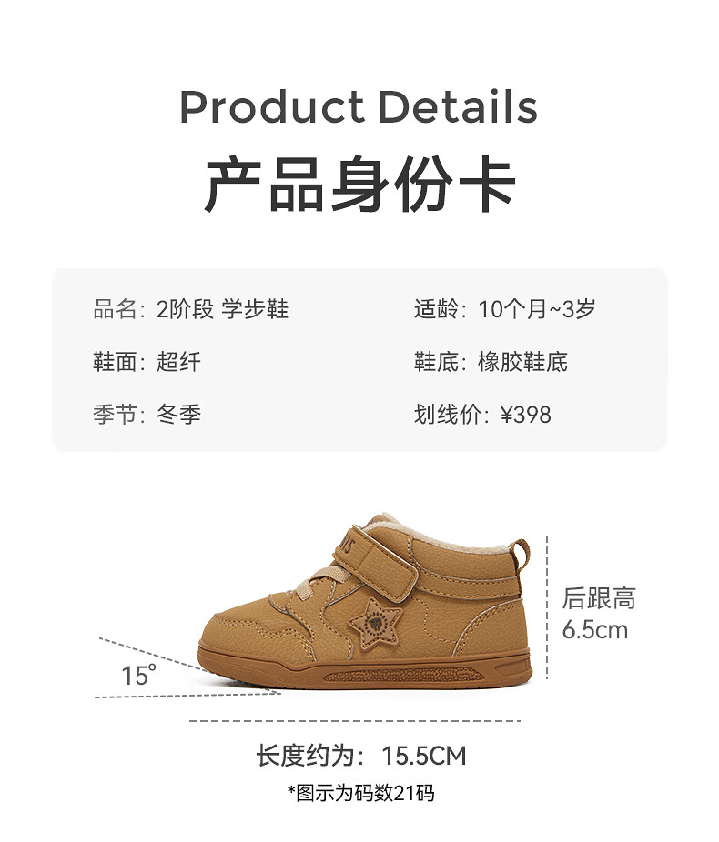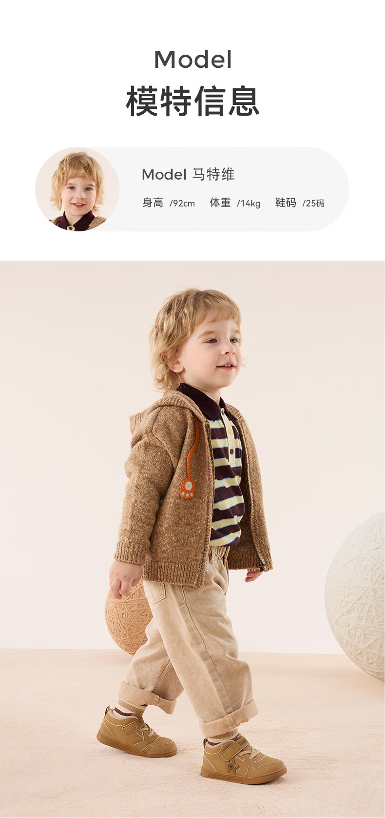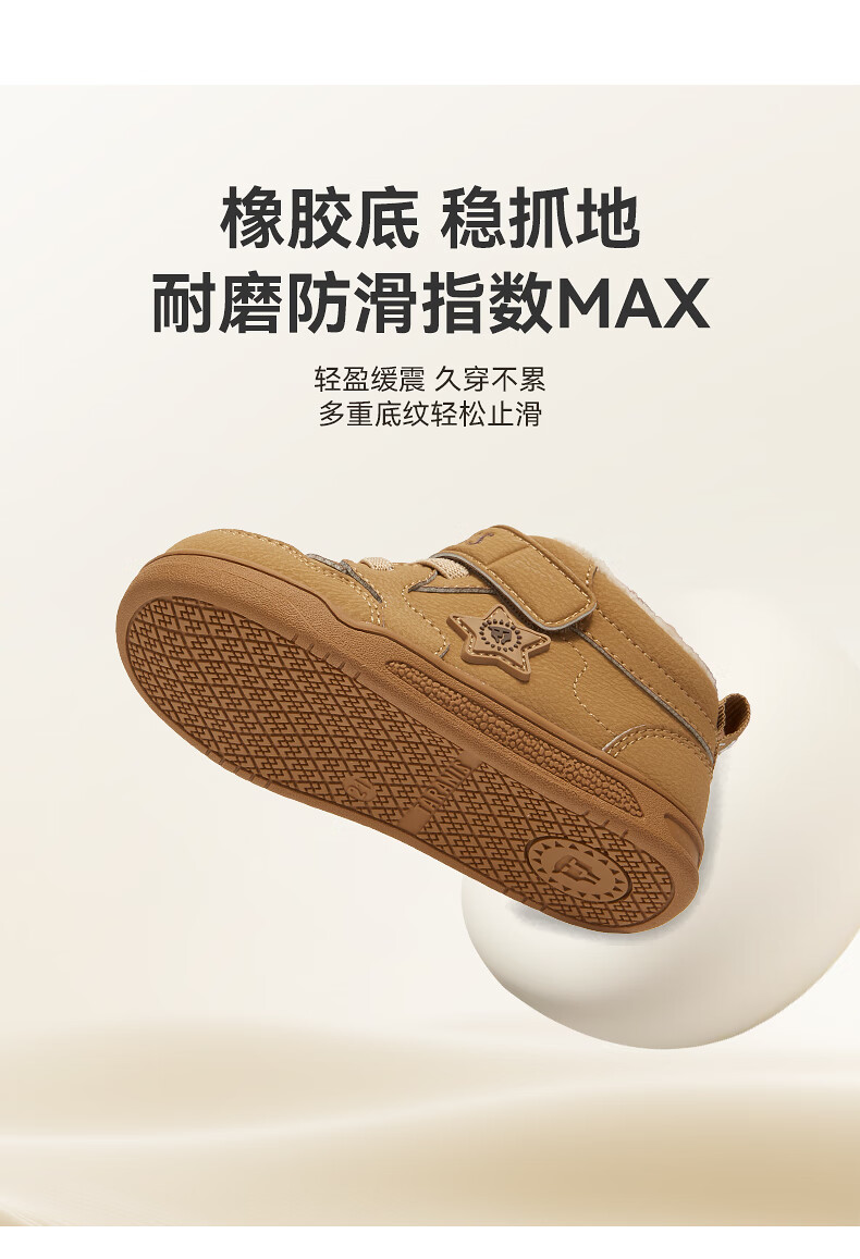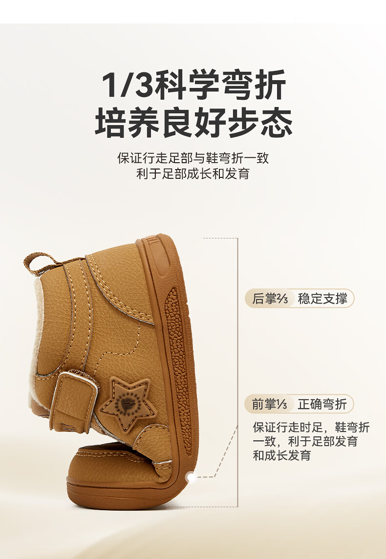 Terranis Children's Shoes 2025 Winter New Baby Toddler Shoes Plus Velvet Warm Boys' Shoes Girls Key Shoes Brown 25 Inner Length 16.0 Suitable for Feet Length 14.3~14.7
