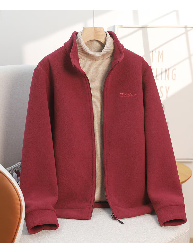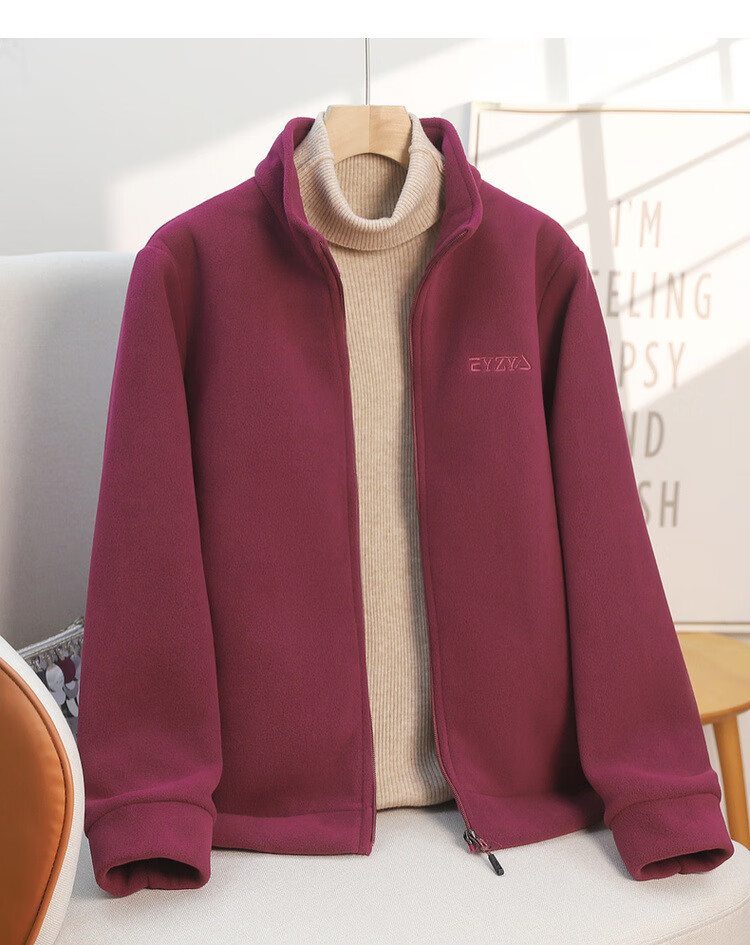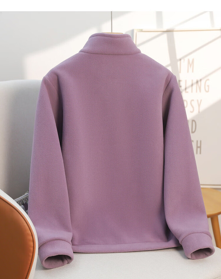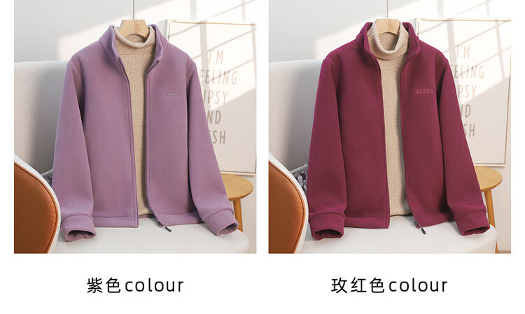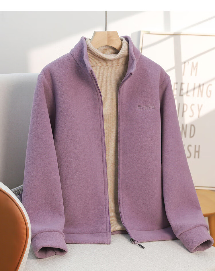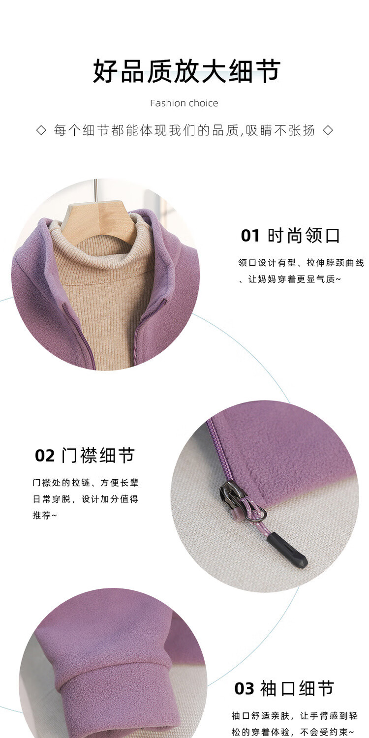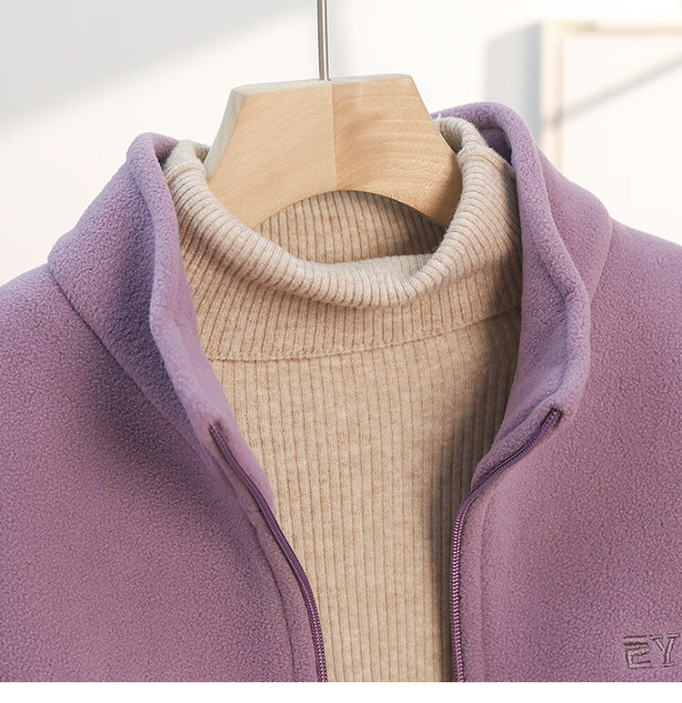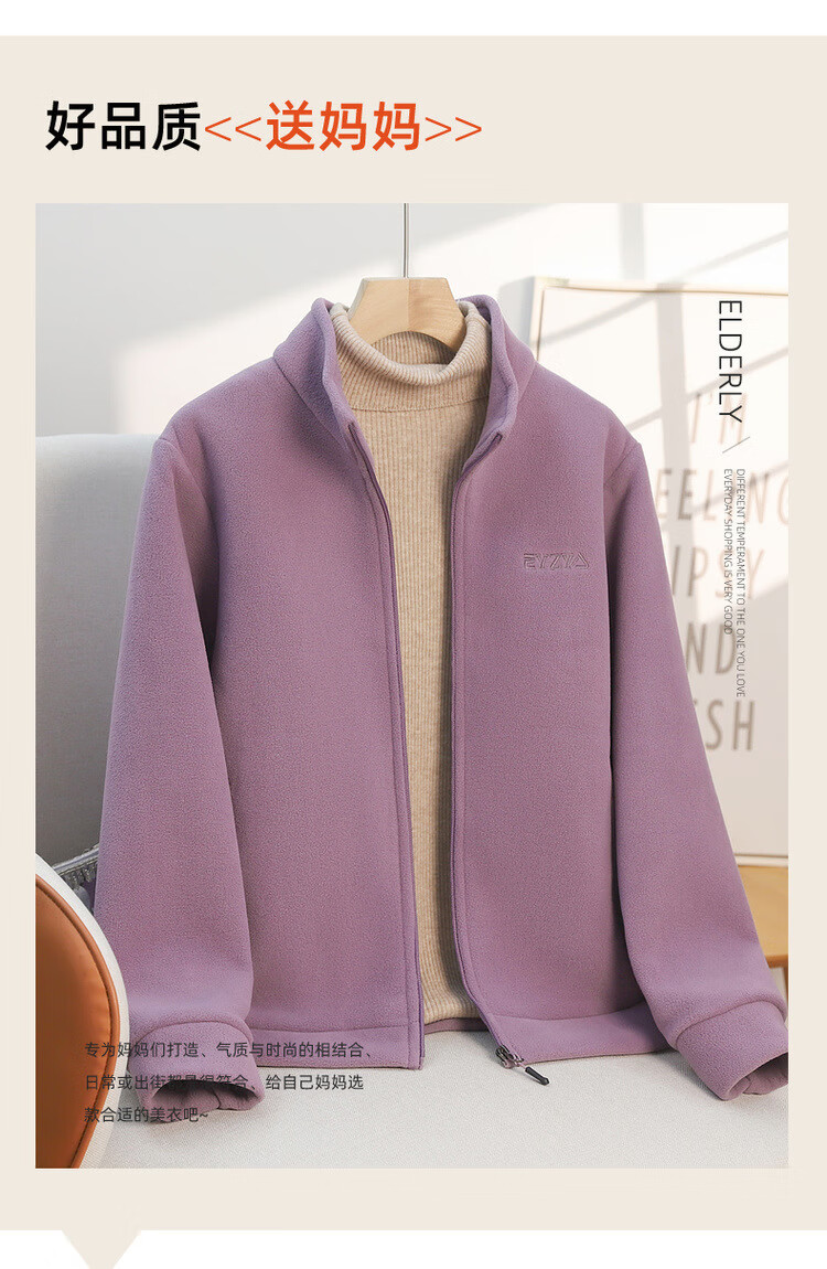 2025 middle-aged and elderly women's polar fleece jacket for spring and autumn warm fleece mother's wear sweatshirt stand-up collar cardigan jacket purple 2XL (recommended 105-120Jin Jin equals 0.5 kg)