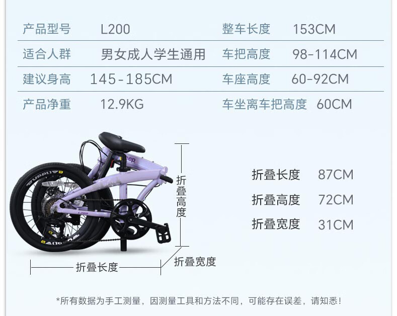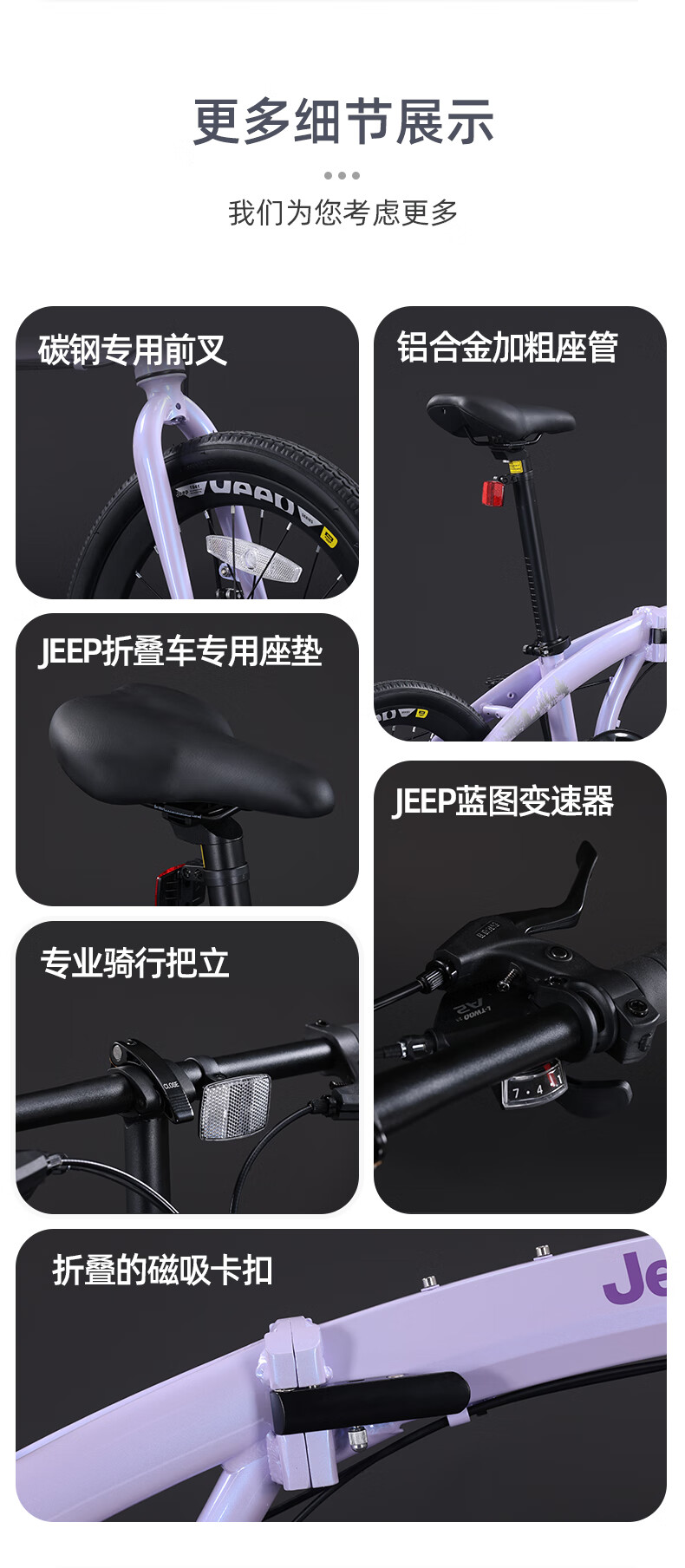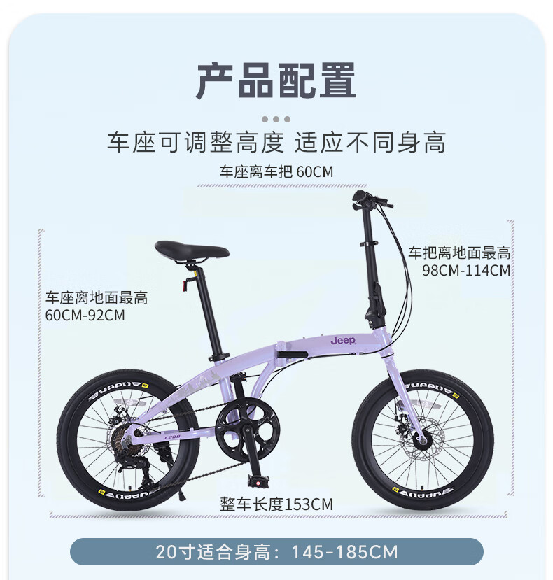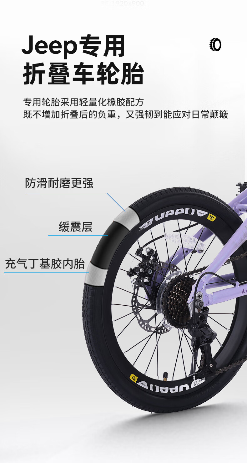 Jeep folding bike 20-inch portable commuting folding bike for men and women, lightweight cycling parent-child bike-Ai L200 L200-pepper white classic model 99% installed 20 inches (suitable for height 140-185CM) 7-speed