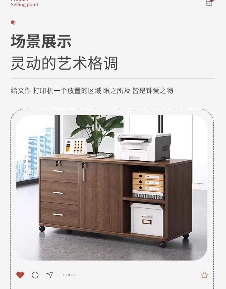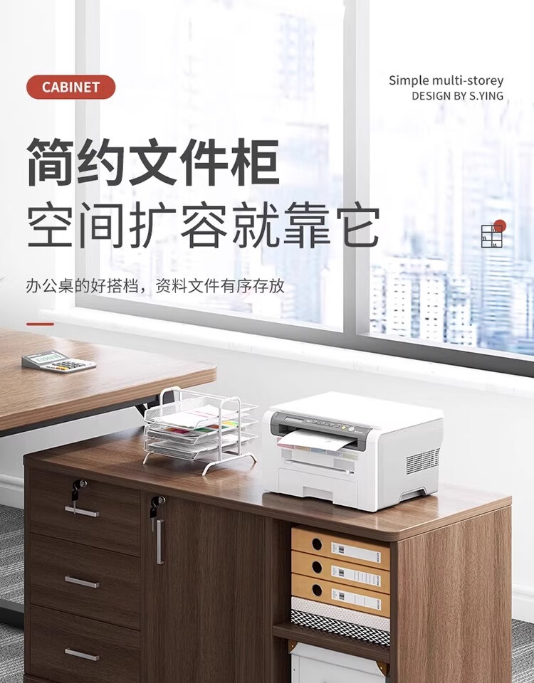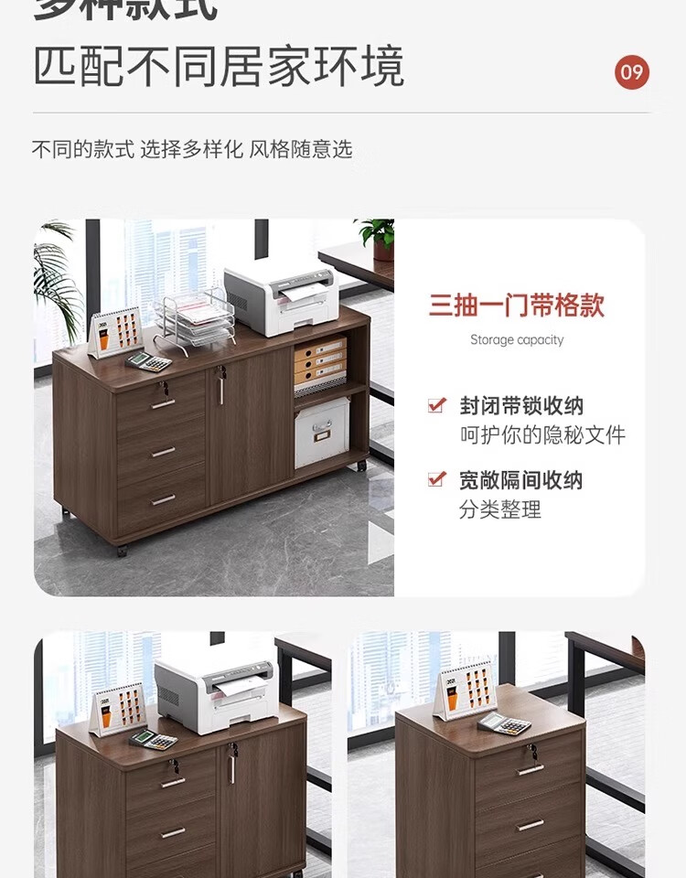 Moai file cabinet information cabinet office cabinet with lock locker mobile side cabinet under the table drawer cabinet storage cabinet low cabinet cabinet three drawers and one door black walnut color 60*34