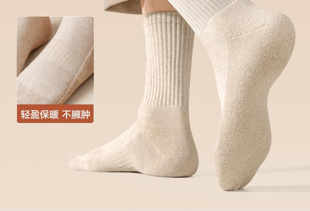 Mianzhuwu men's thickened terry mid-calf socks for autumn and winter, new warm, deodorant, sweat-absorbent sports stockings, combination four (white + white + black + black + black, one size fits all, terry mid-calf 39-44 thick terry_