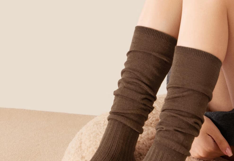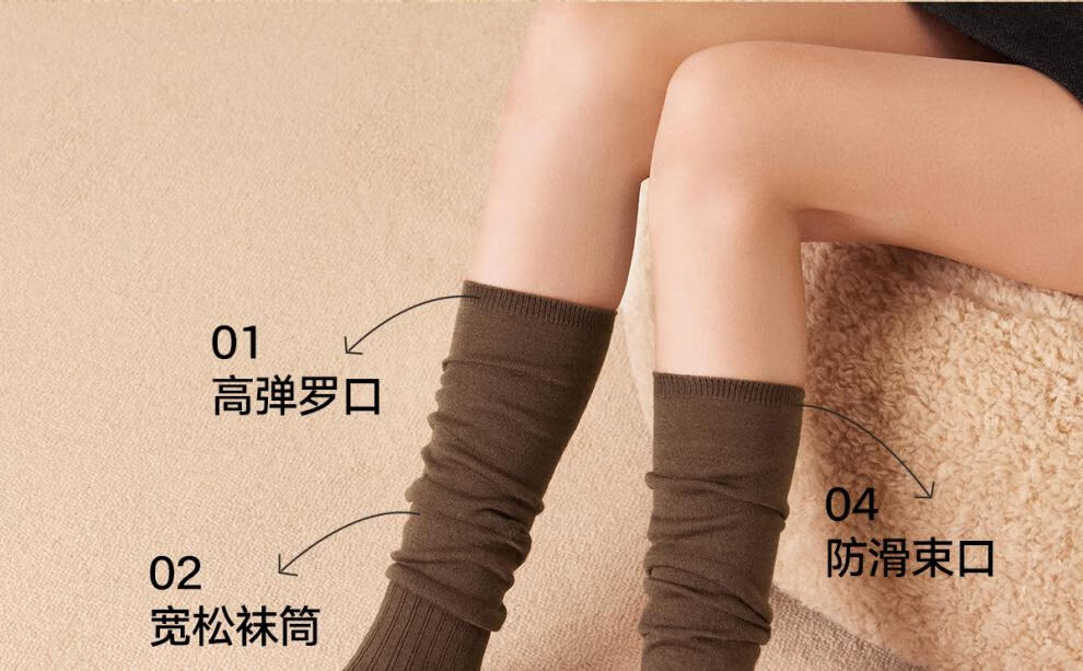 Mianzhuwu New Product Pile Calf Socks Women's Autumn and Winter Long-Tube Shoes with Soundtrack White Non-Slip Non-Falling Spring and Autumn Long Socks Combination 1 (Milk White + Black) One Size 35-39 Wool Warm_Non-Floating_