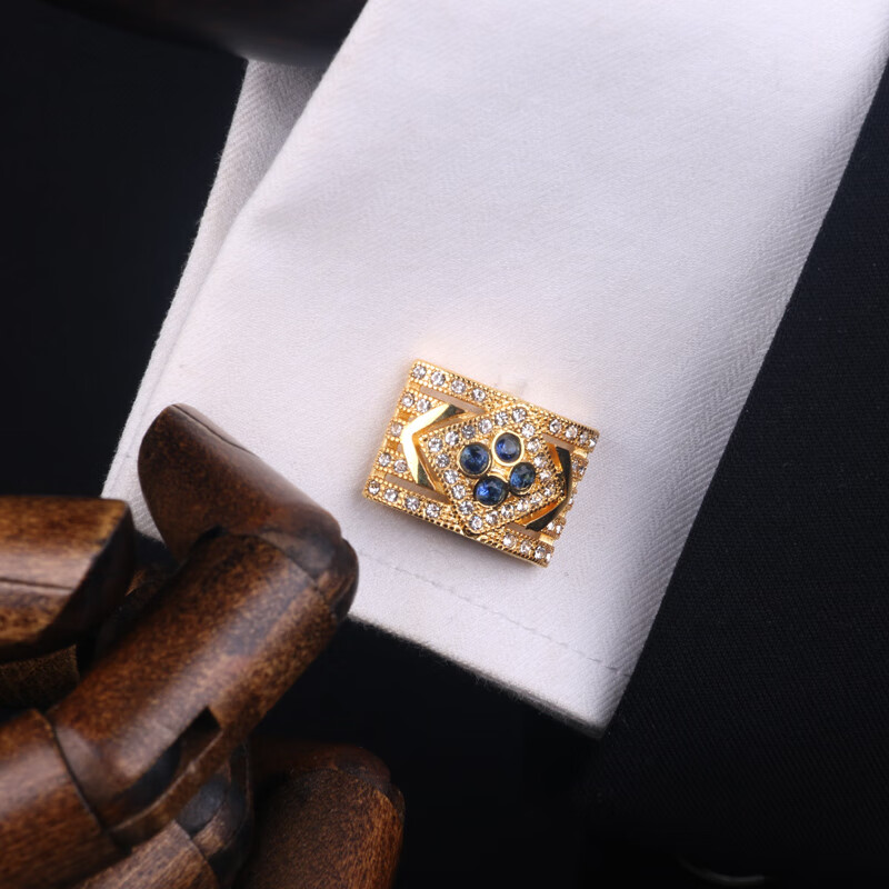 Lieshang gold-plated deep blue cufflinks for men, simple French shirt sleeve studs, suit cuff buttons, light luxury birthday gift, deep blue Lord cufflinks