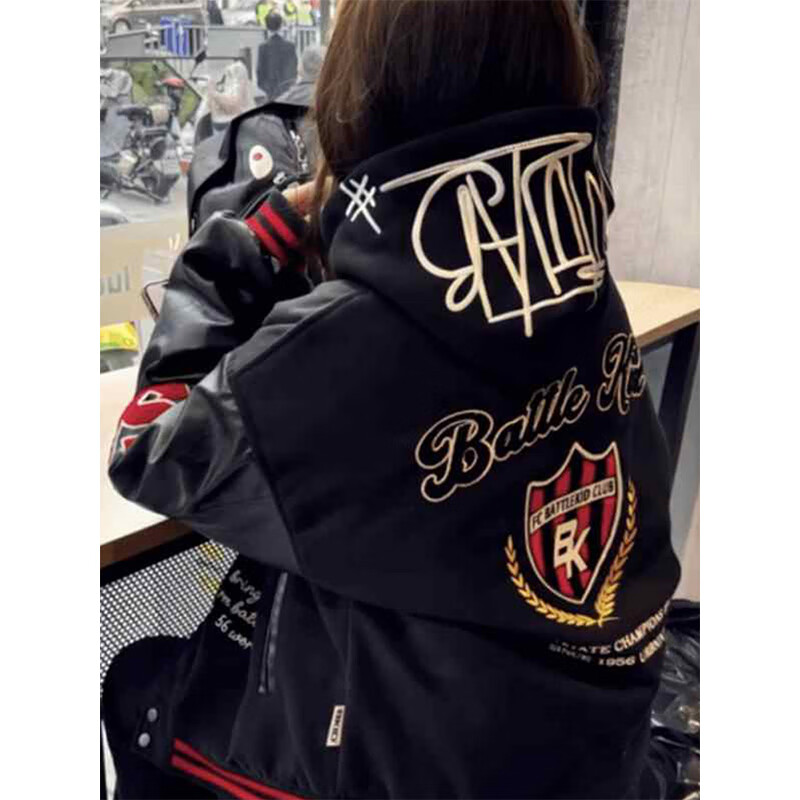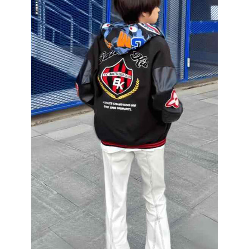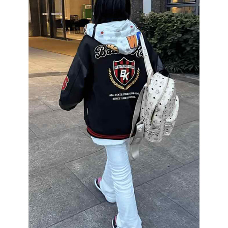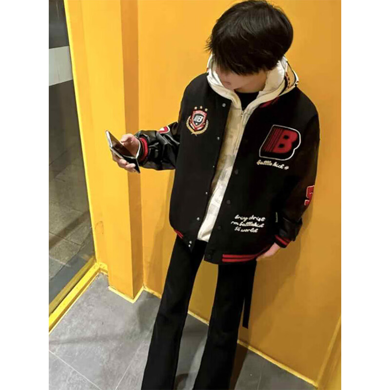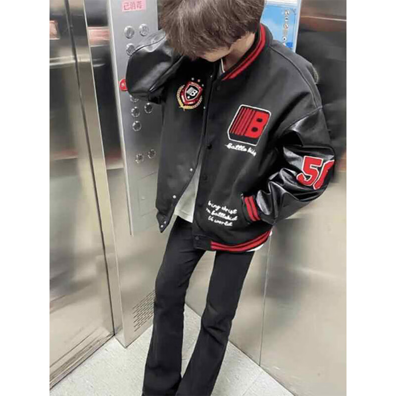 YIMENGTO Yimen camel baseball uniform spliced national fashion jacket men's spring and autumn American retro embroidered letter design trendy brand handsome jacket XL