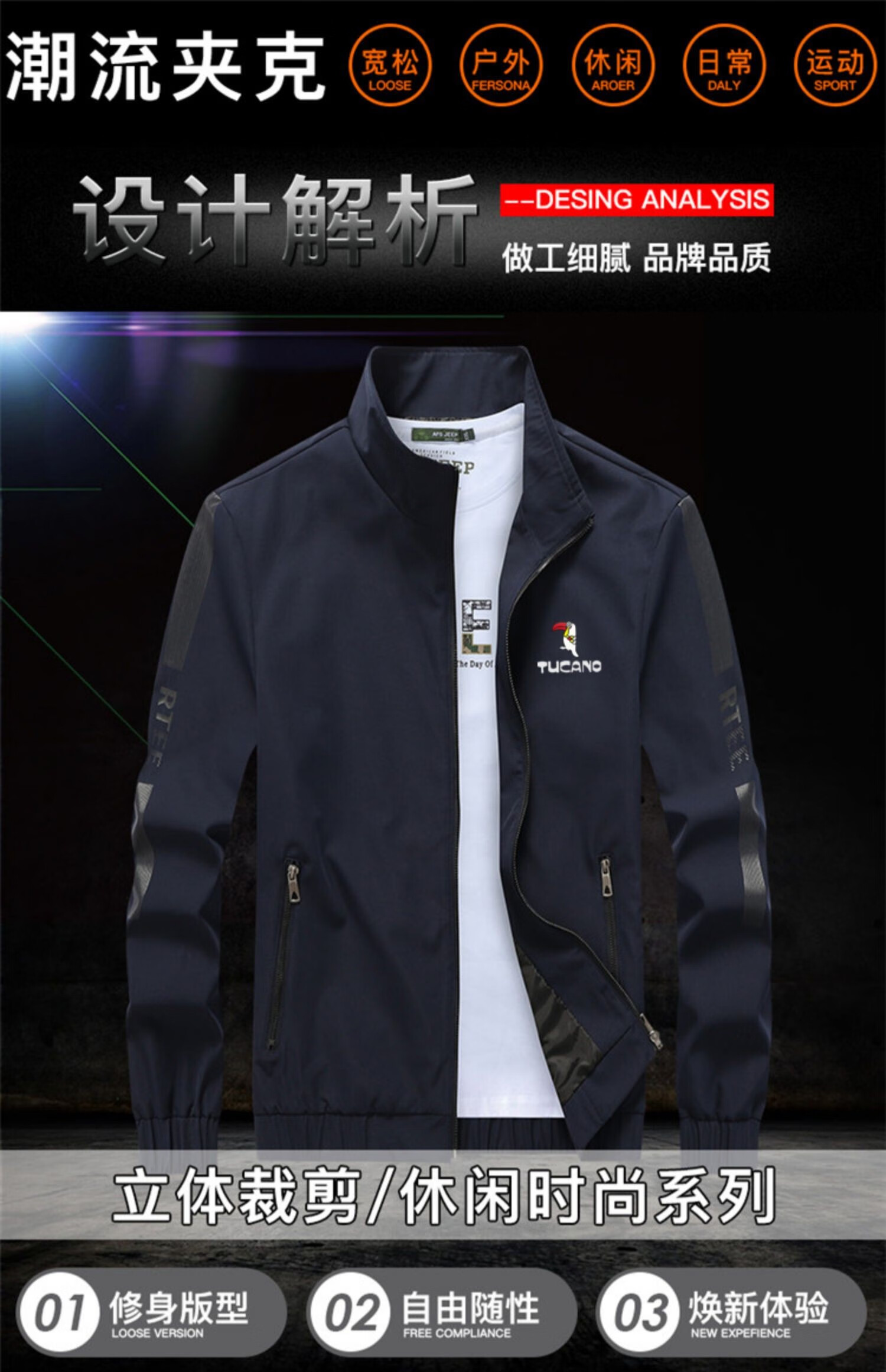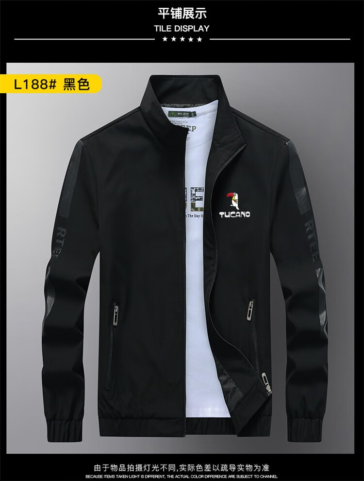 Woodpecker (TUCANO) Thin Jacket Men's Spring and Autumn New Casual Stand-up Collar Jacket Men's Large Size Velvet Thickened Top 188 Khaki Spring and Autumn Style Free Socks 3XL Recommended 150-165 Jin Jin equals 0.5 kg