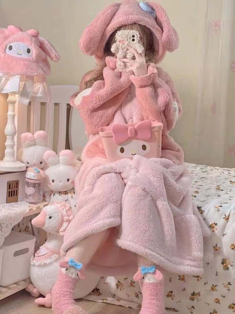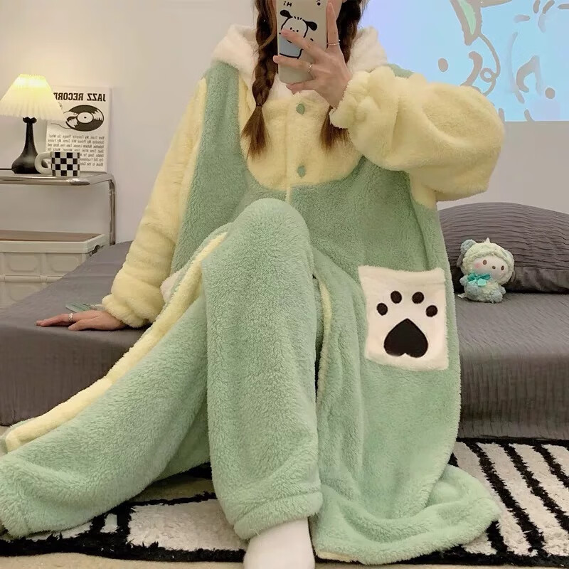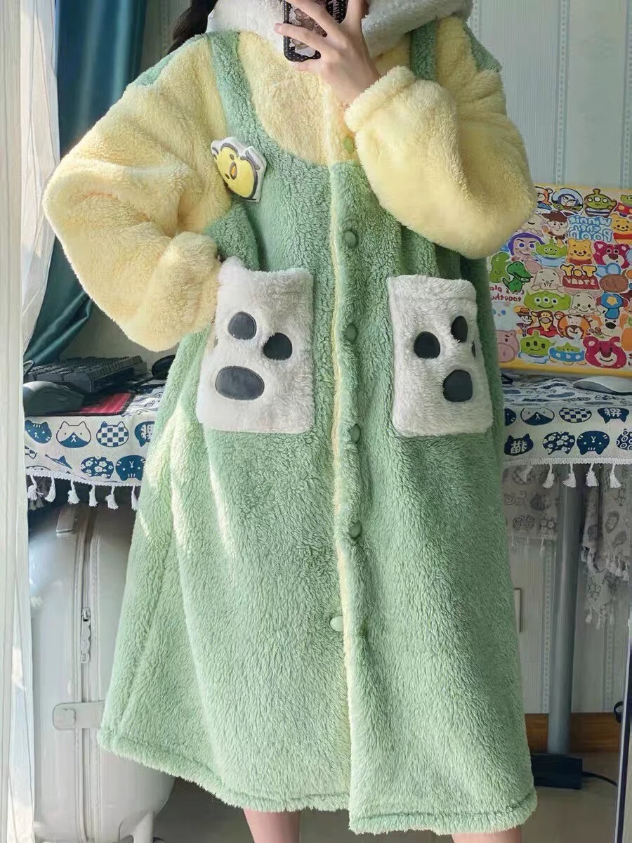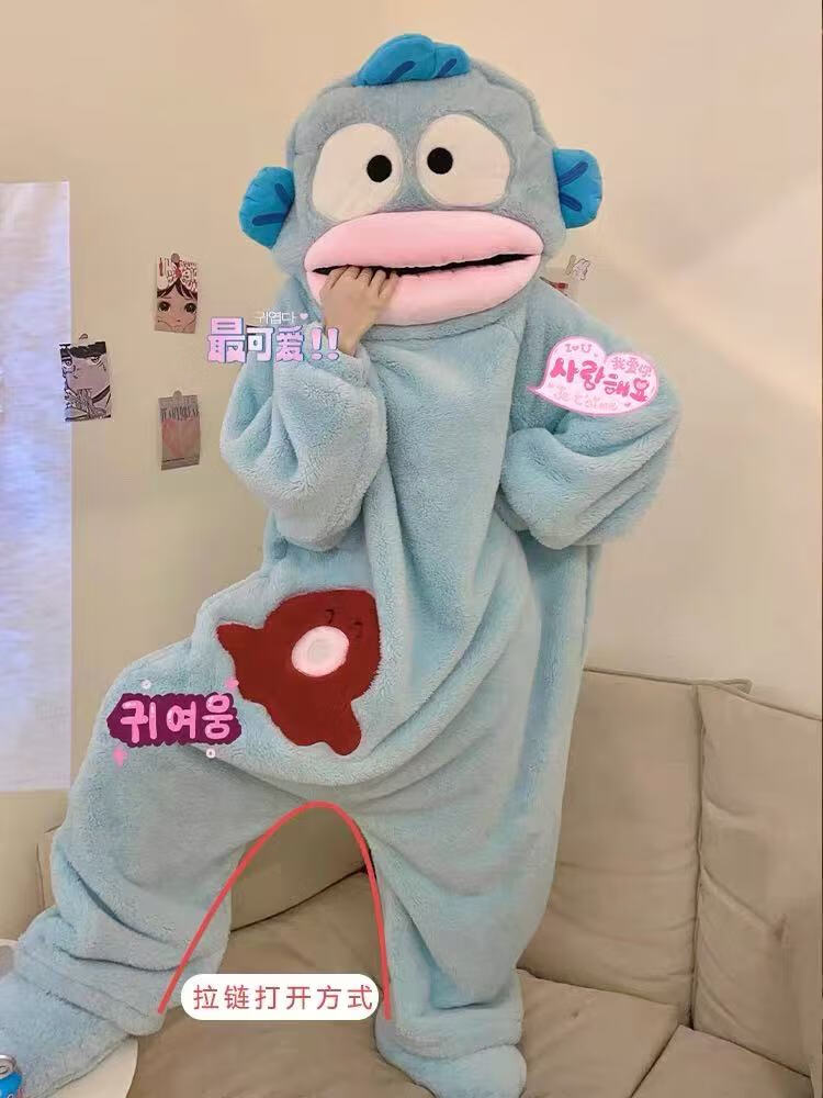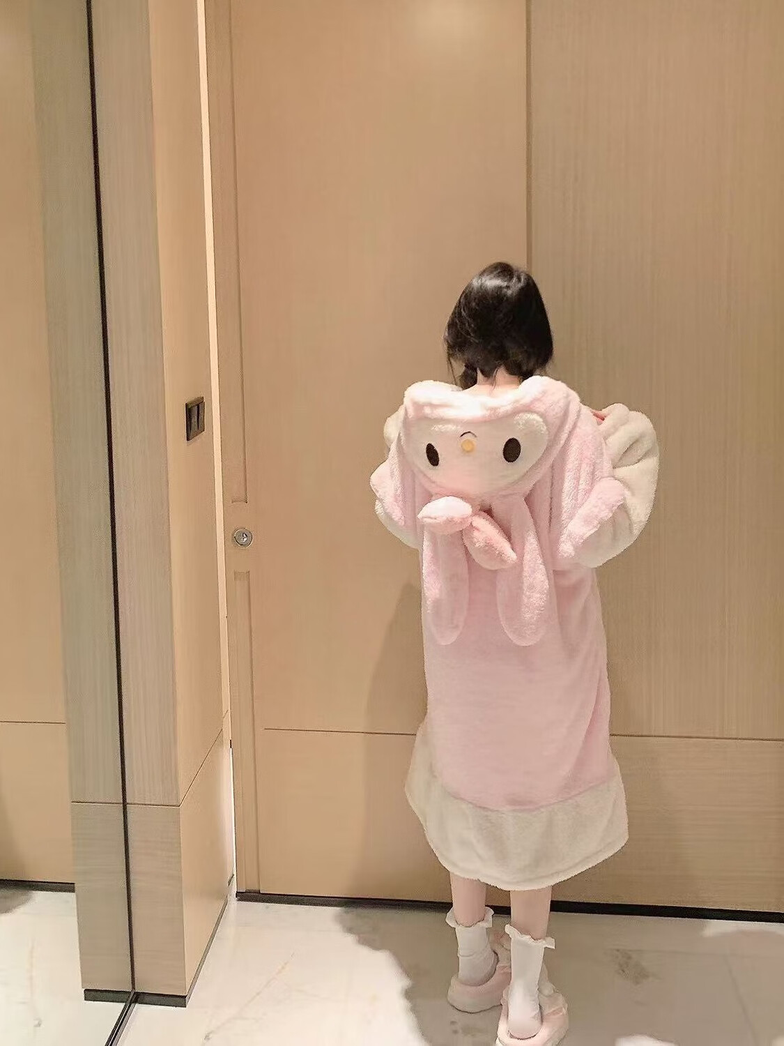 Cute Cartoon Coral Fleece Nightgown Melody Jade Dog Autumn and Winter Flannel Pajamas Home Clothes Set Warm Women Ugly Fish Hanton One-piece Nightgown M Recommended Height 145-160cm