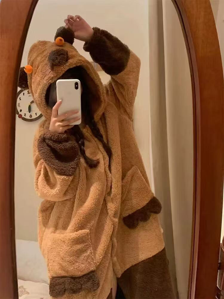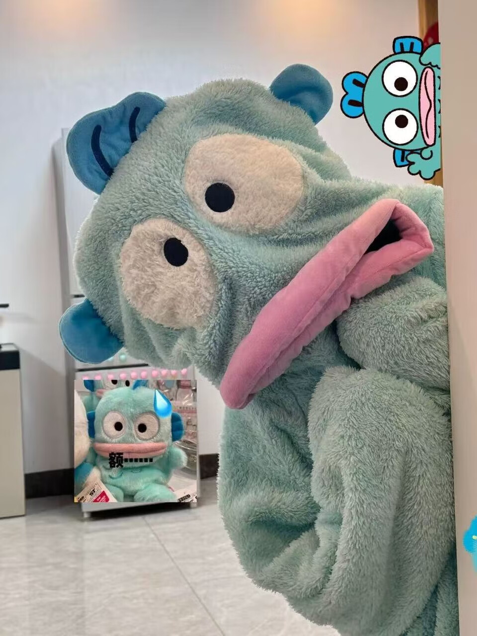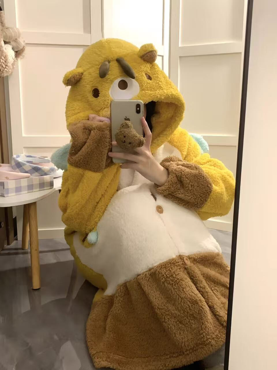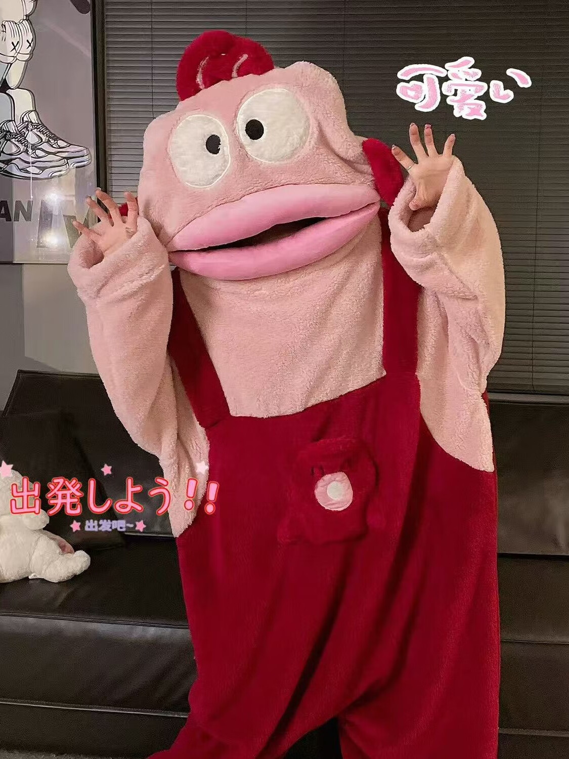 Cute Cartoon Coral Fleece Nightgown Melody Jade Dog Autumn and Winter Flannel Pajamas Home Clothes Set Warm Women Ugly Fish Hanton One-piece Nightgown M Recommended Height 145-160cm