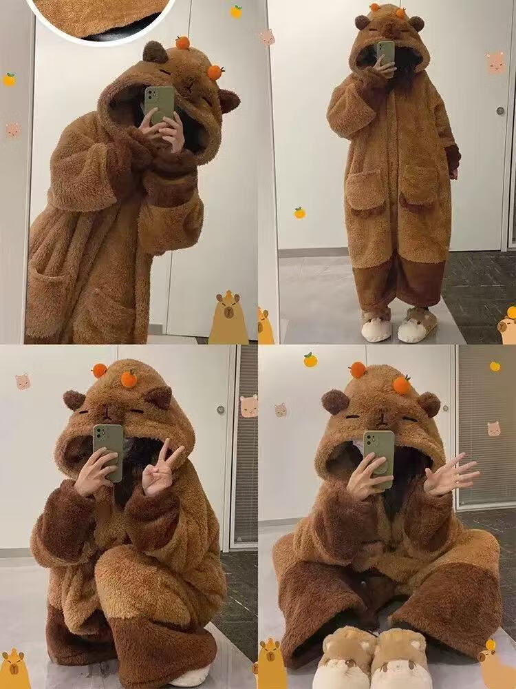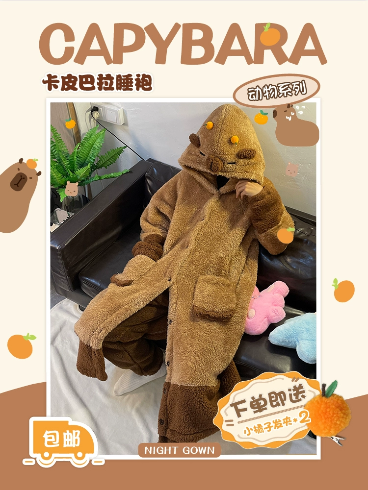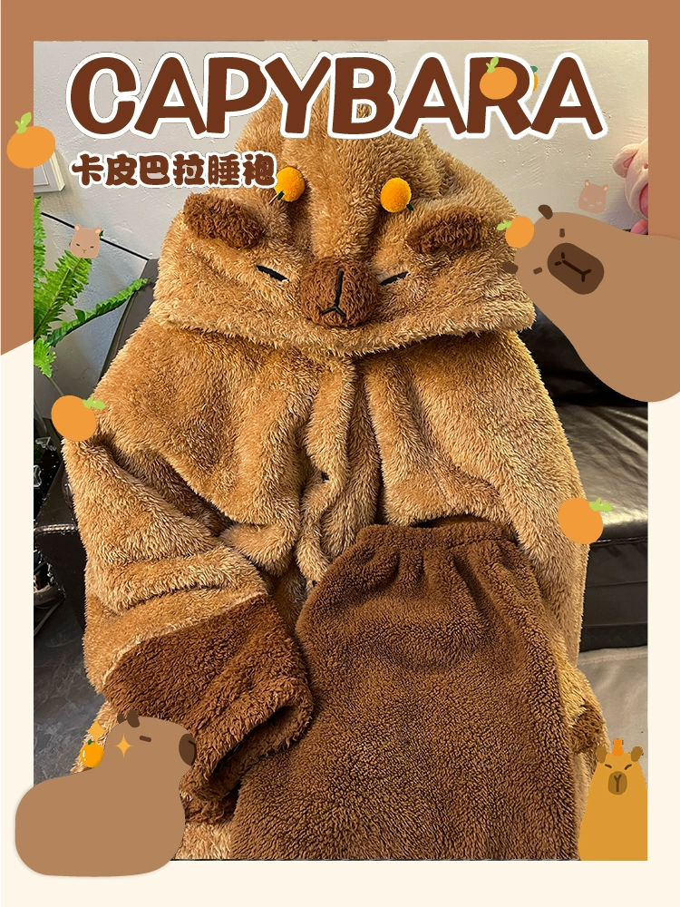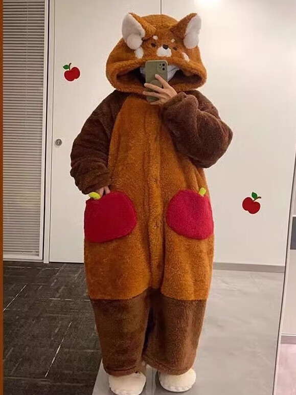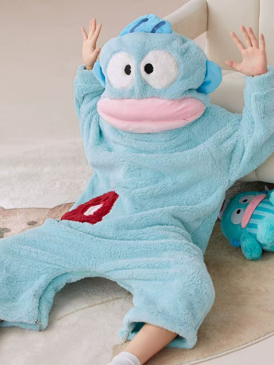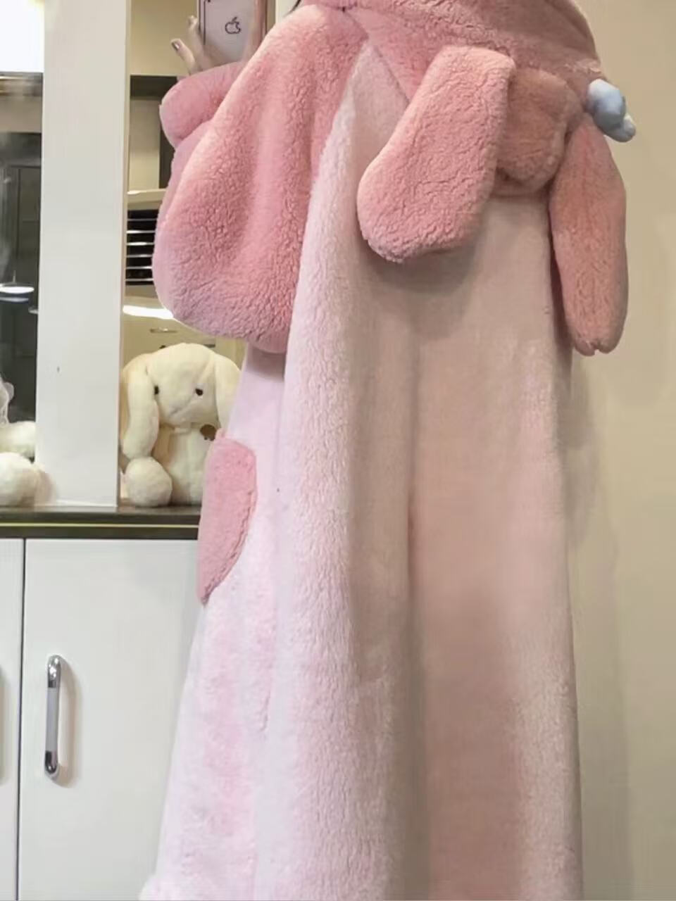 Cute Cartoon Coral Fleece Nightgown Melody Jade Dog Autumn and Winter Flannel Pajamas Home Clothes Set Warm Women Ugly Fish Hanton One-piece Nightgown M Recommended Height 145-160cm