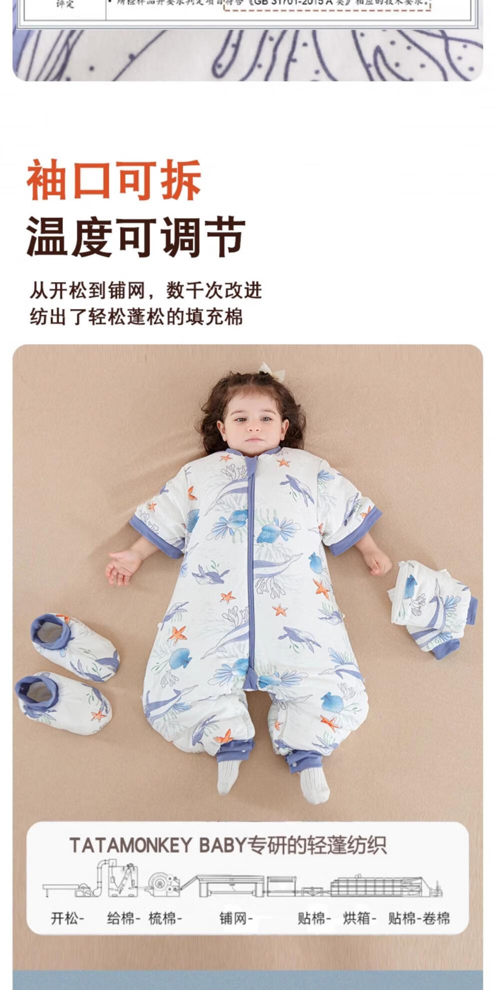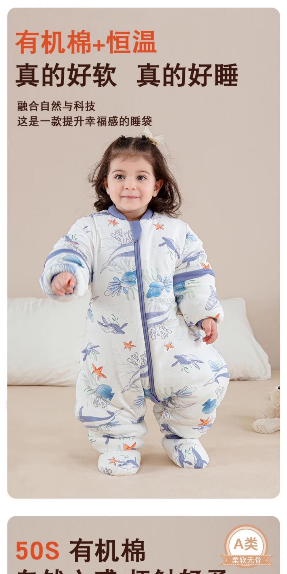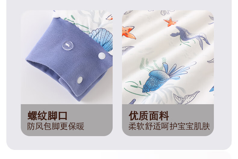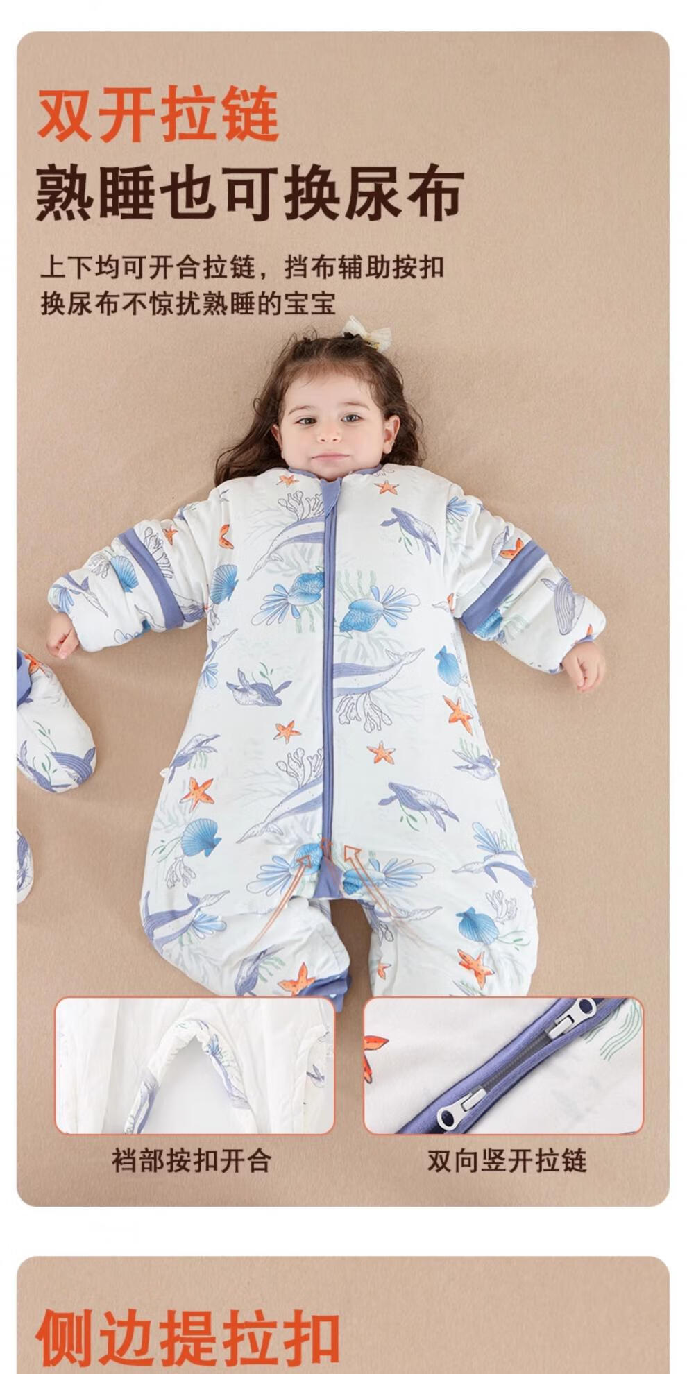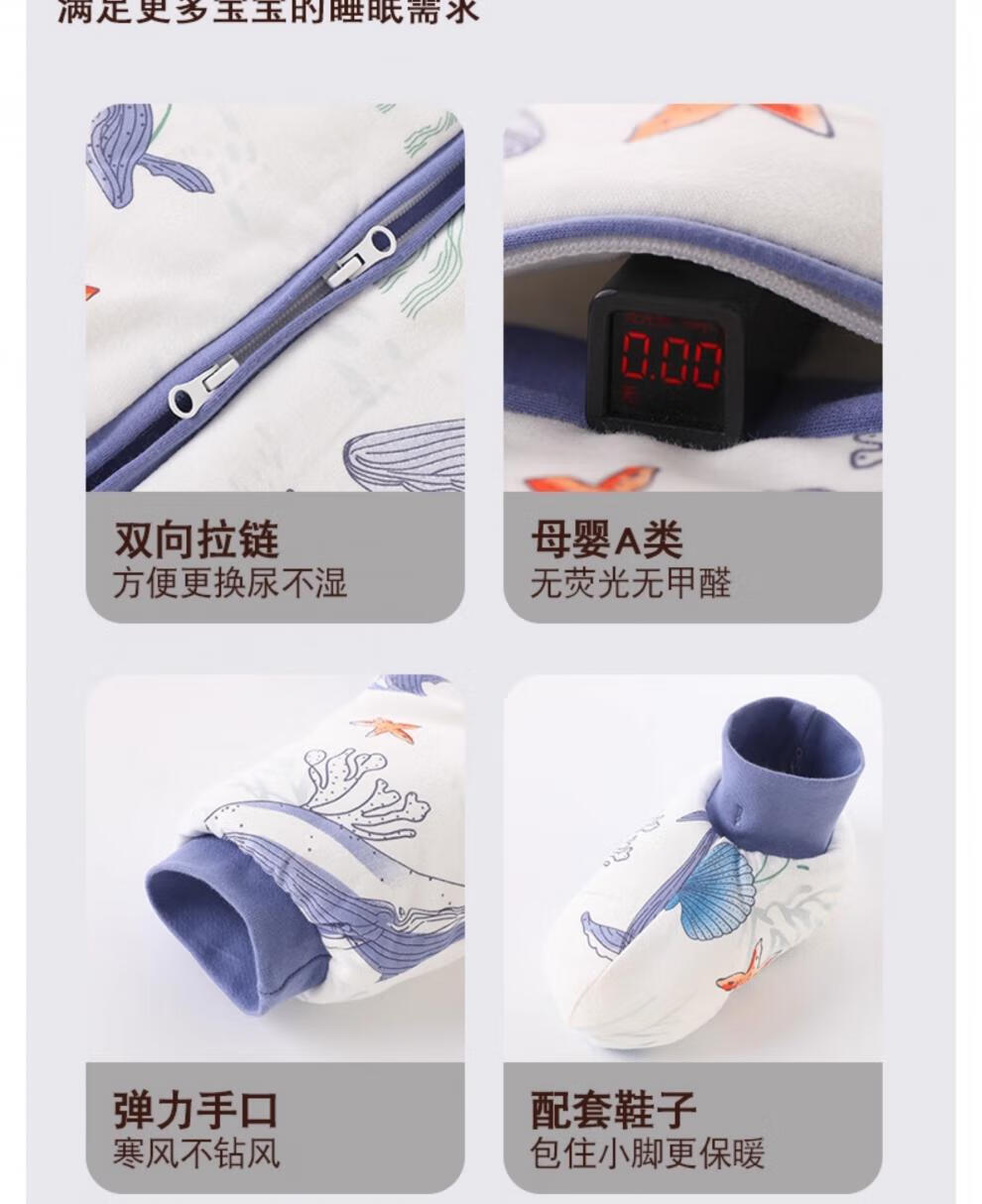 Disney baby sleeping bag spring, autumn and winter constant temperature four-season universal children's pure cotton anti-kick quilt split-leg baby sleeping bag spring and autumn double layer room temperature 18-26 Sea World footless cover 85cm 80 size (reference 65-, June-1 and a half years old)