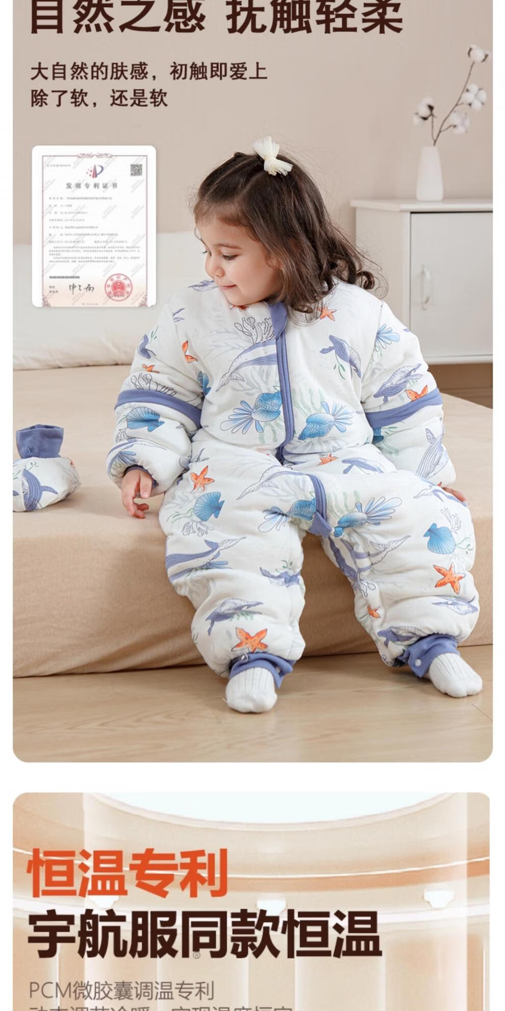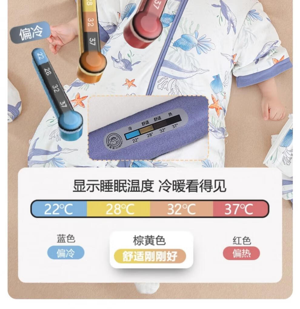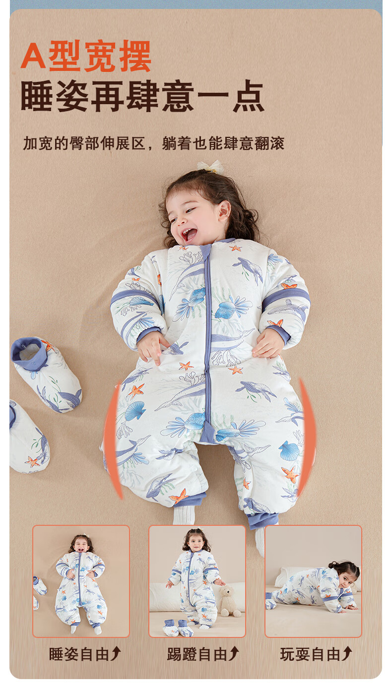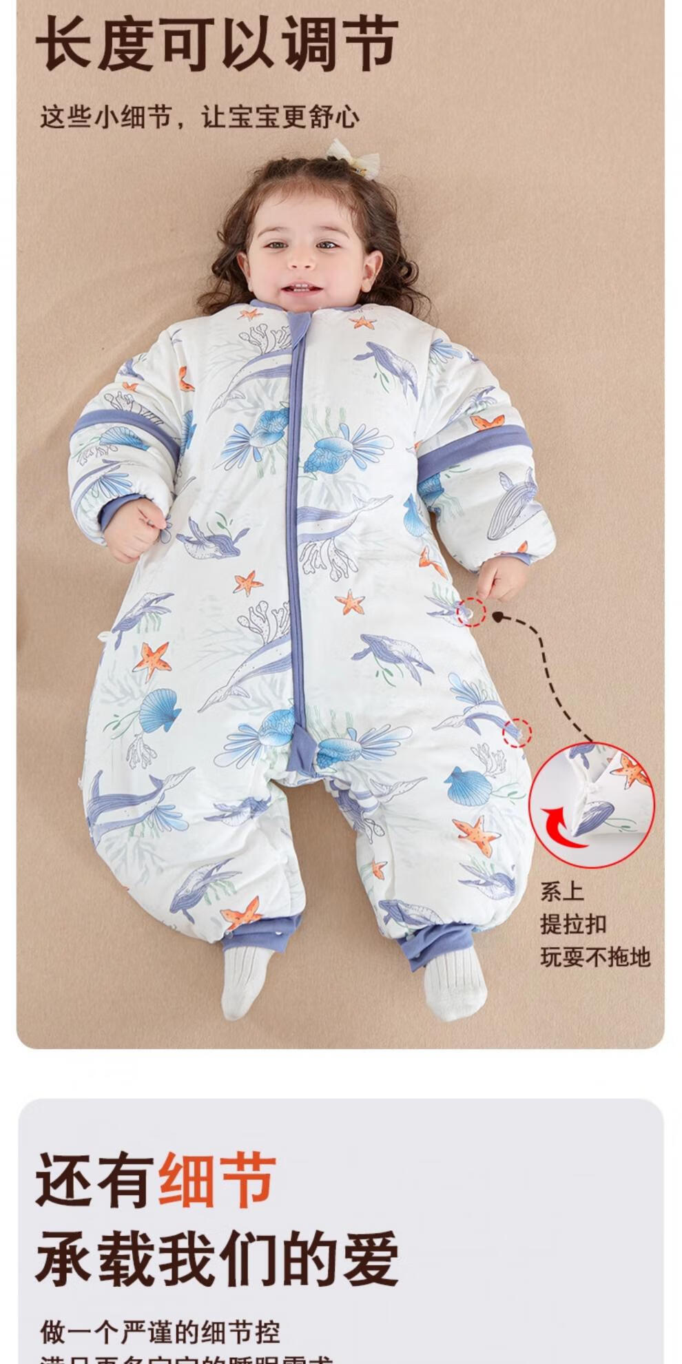Disney baby sleeping bag spring, autumn and winter constant temperature four-season universal children's pure cotton anti-kick quilt split-leg baby sleeping bag spring and autumn double layer room temperature 18-26 Sea World footless cover 85cm 80 size (reference 65-, June-1 and a half years old)