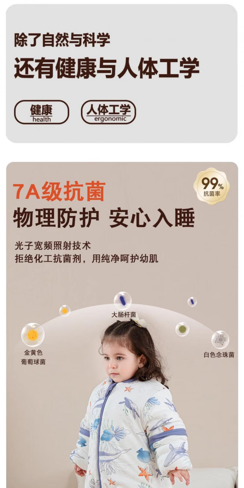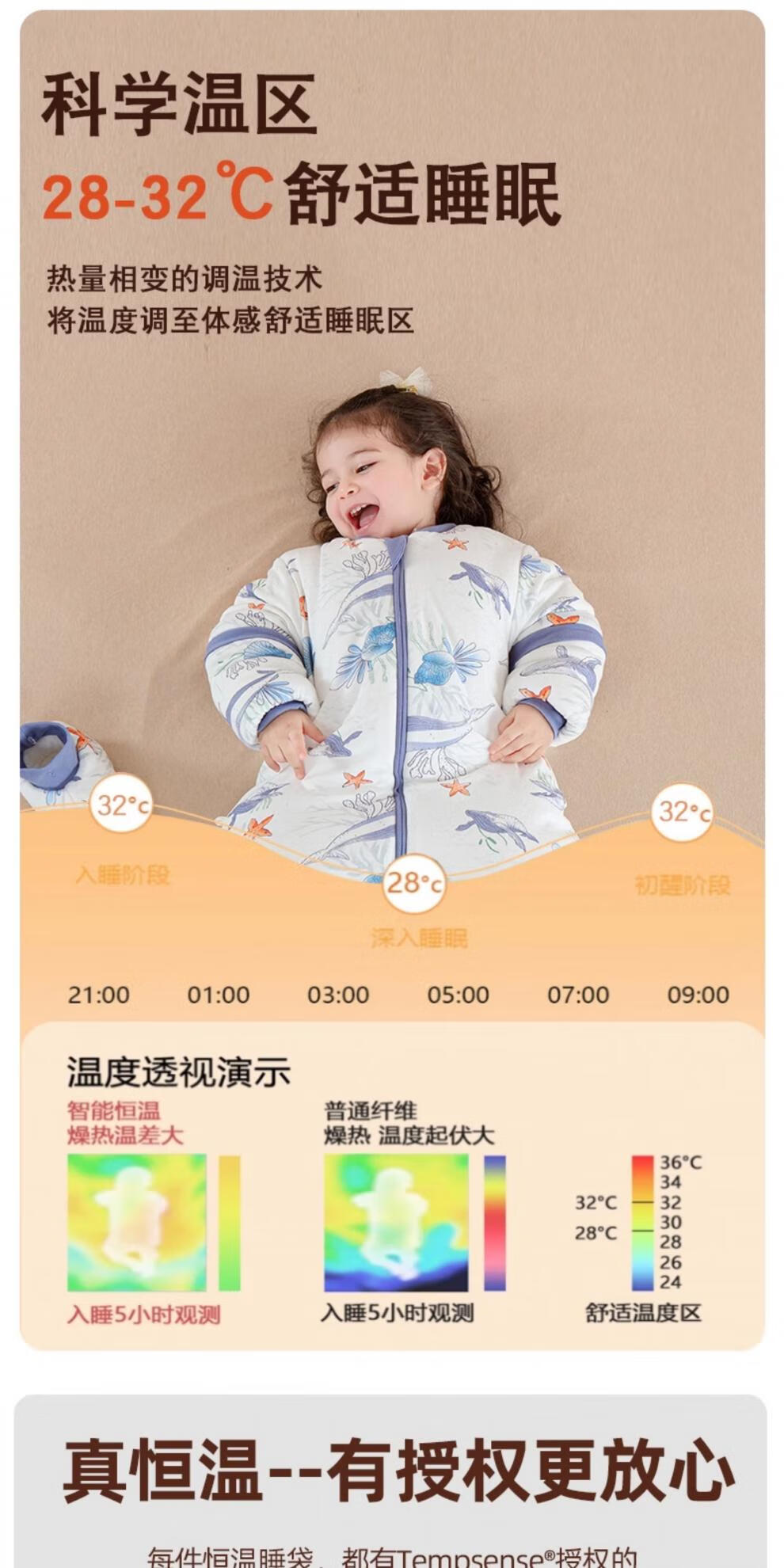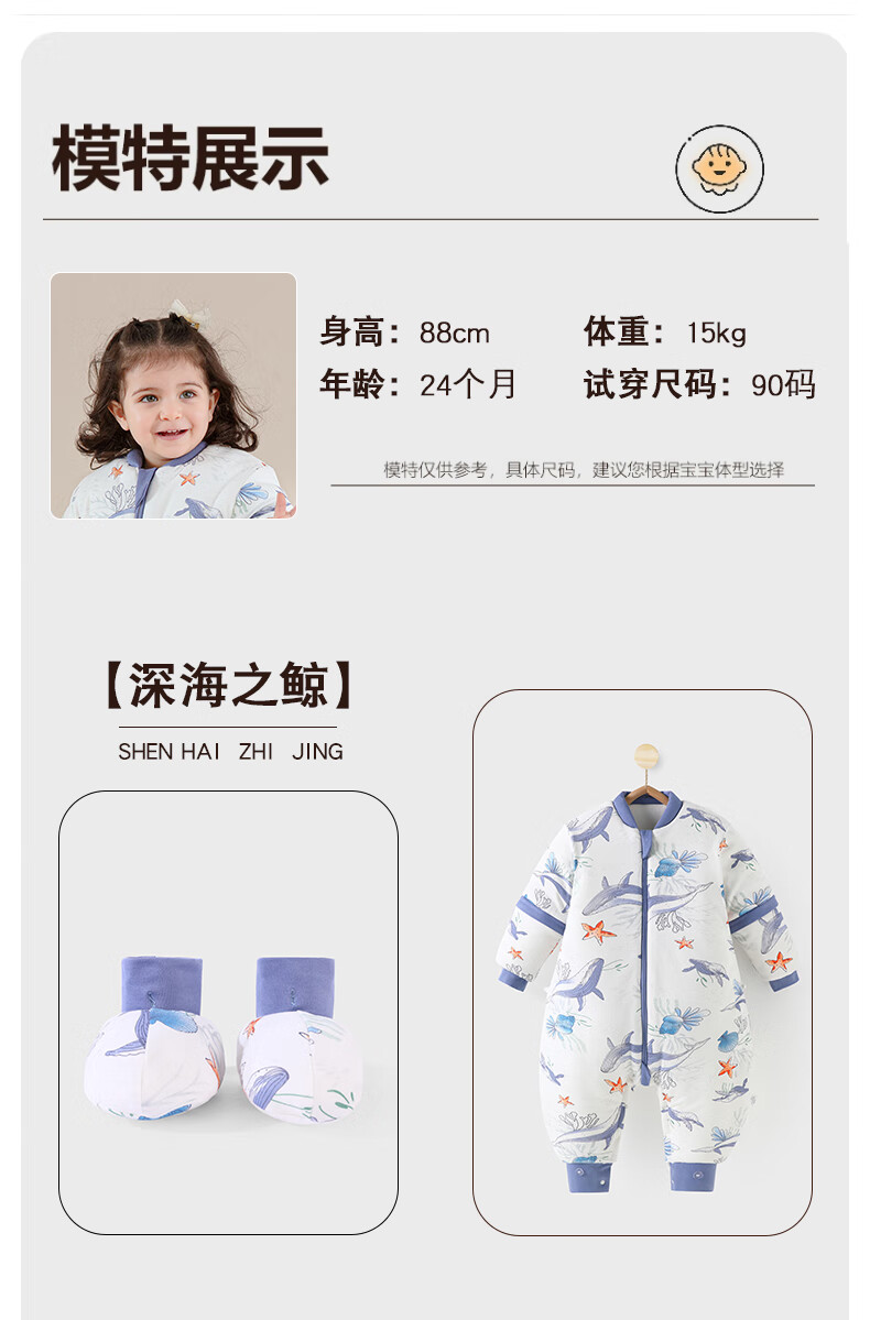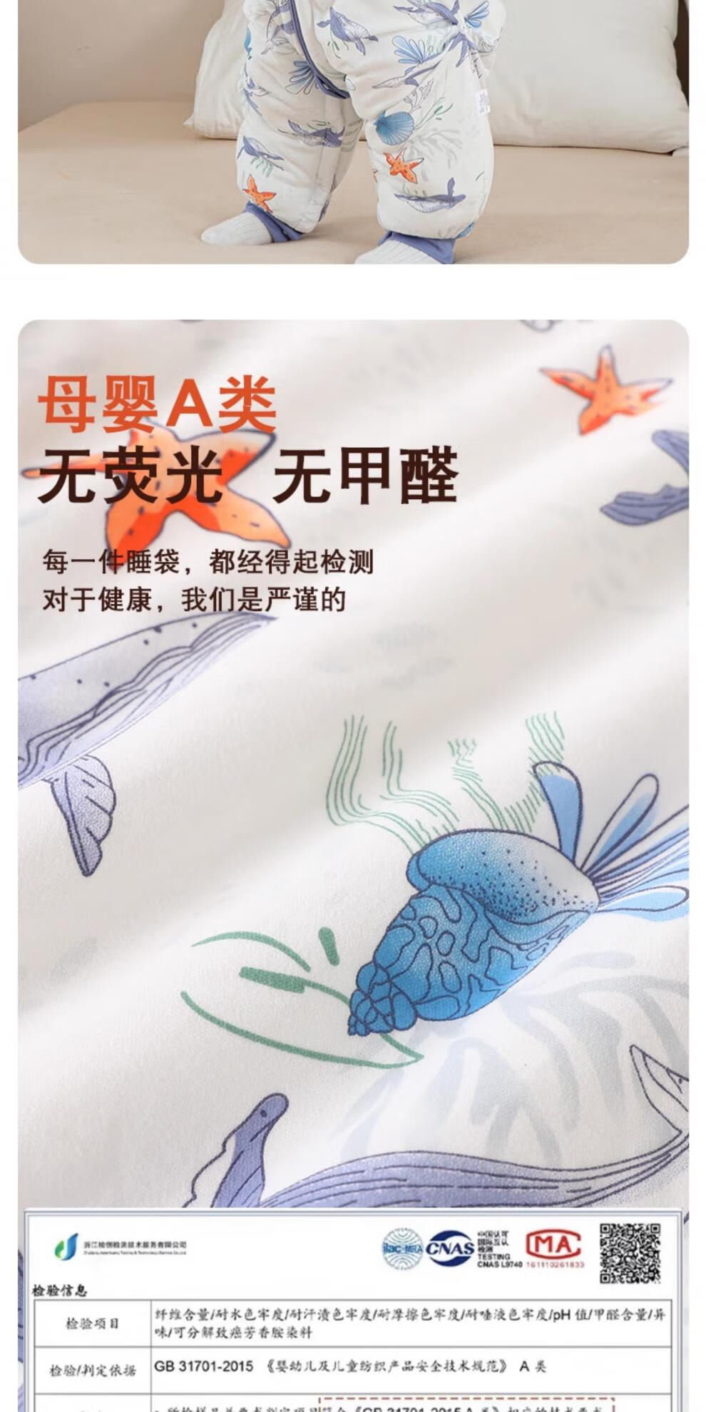Disney baby sleeping bag spring, autumn and winter constant temperature four-season universal children's pure cotton anti-kick quilt split-leg baby sleeping bag spring and autumn double layer room temperature 18-26 Sea World footless cover 85cm 80 size (reference 65-, June-1 and a half years old)