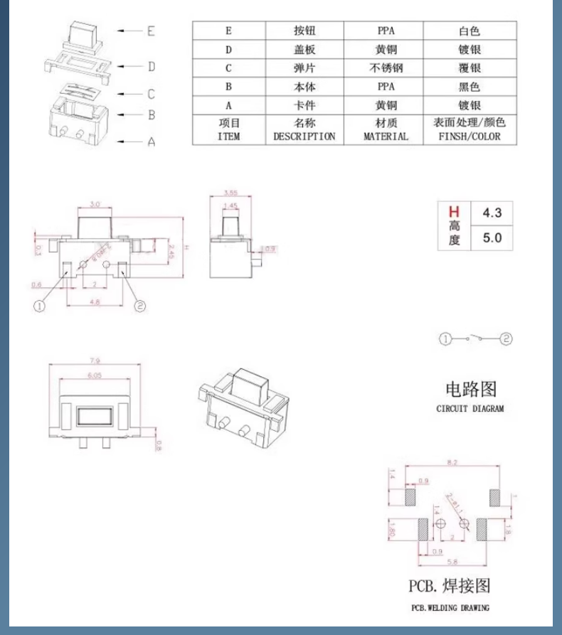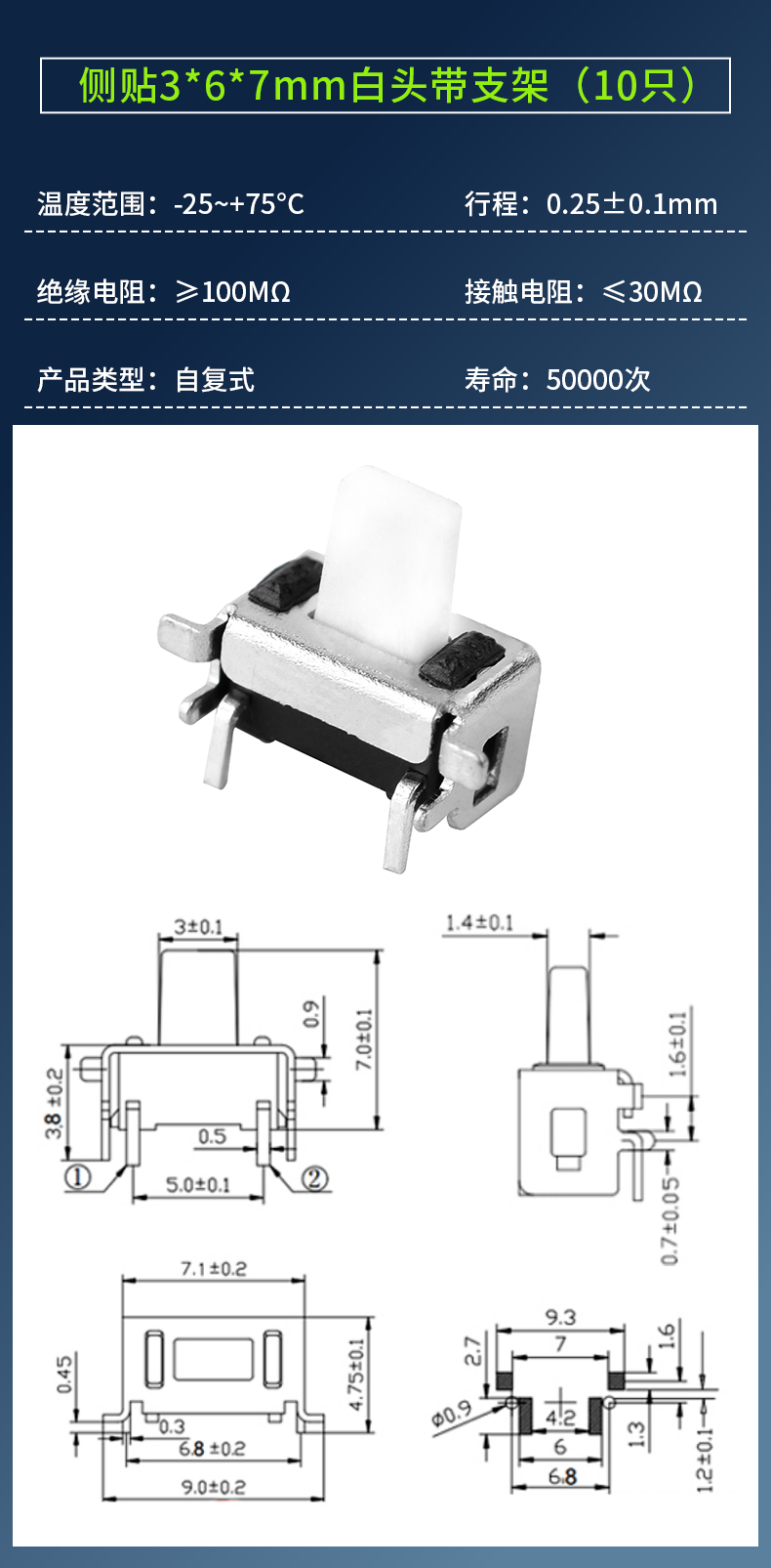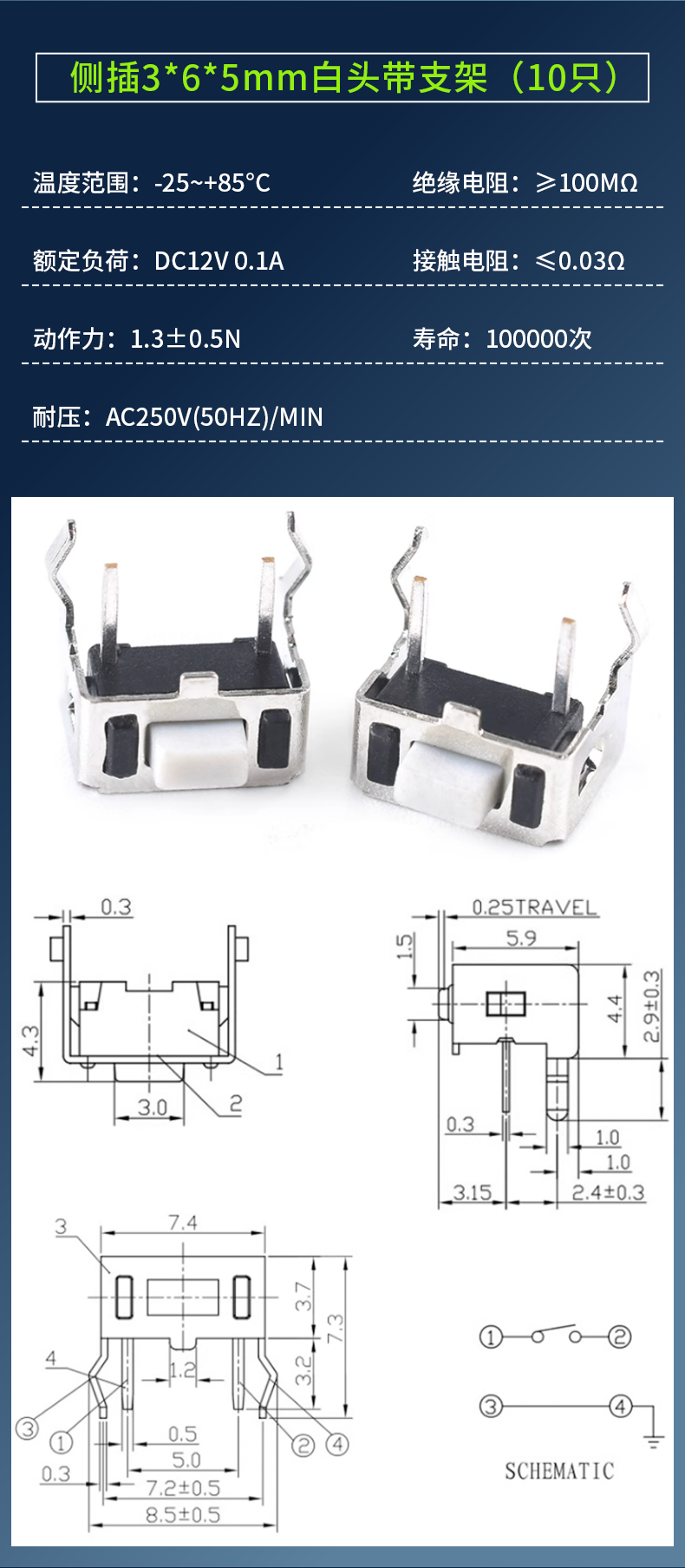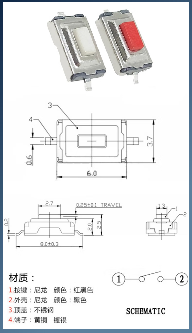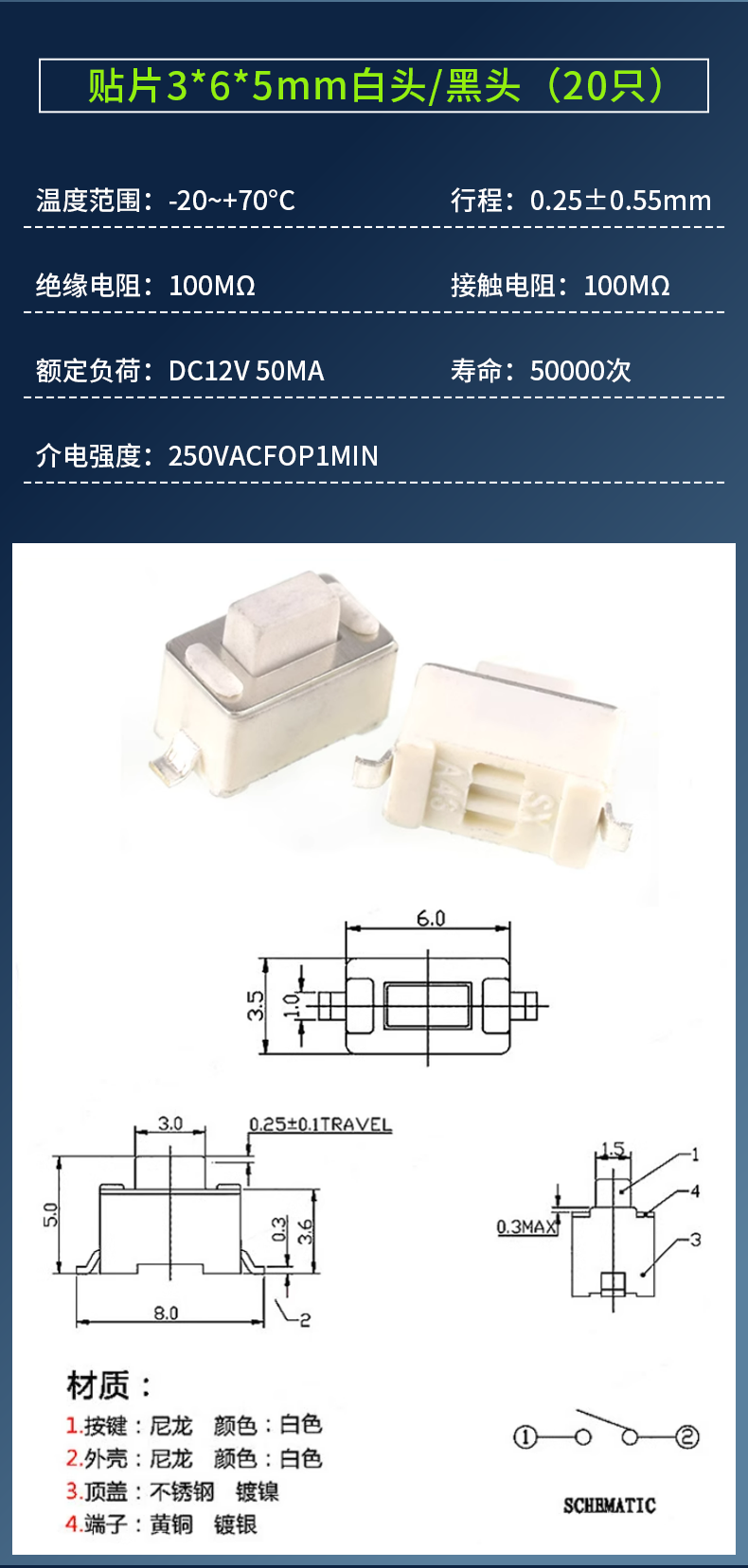 3*6*4.3/5/7/2.5/3.5MM light touch button micro switch patch straight plug side with bracket side 2 pins straight plug 3*6*4.3mm white head (20 pieces) No Specifications