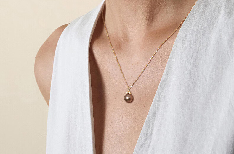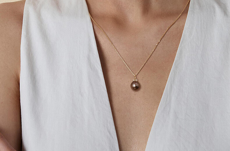 Keshan Hera Bow Tahitian Black Pearl Necklace 18K Gold Seawater Pearl Pendant Female Birthday Gift 9-10