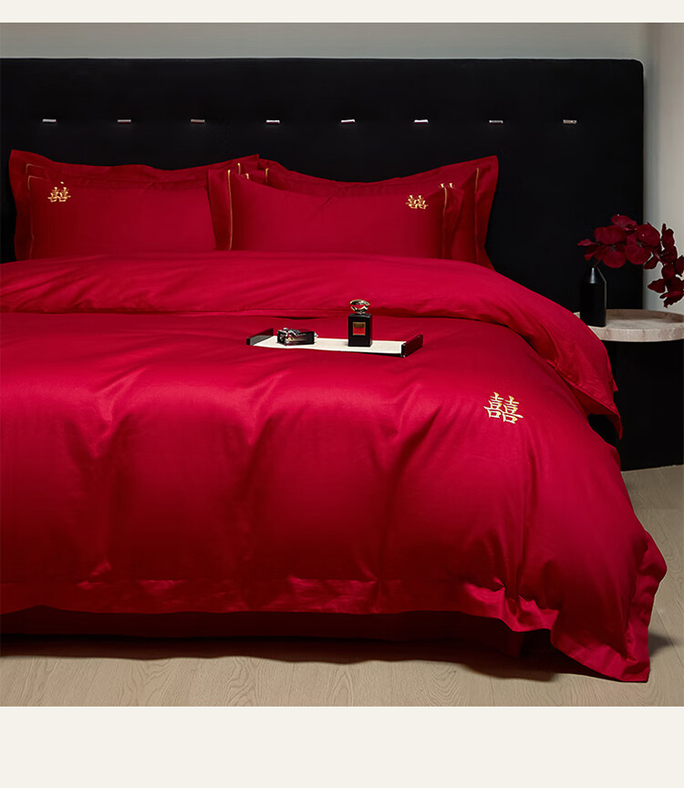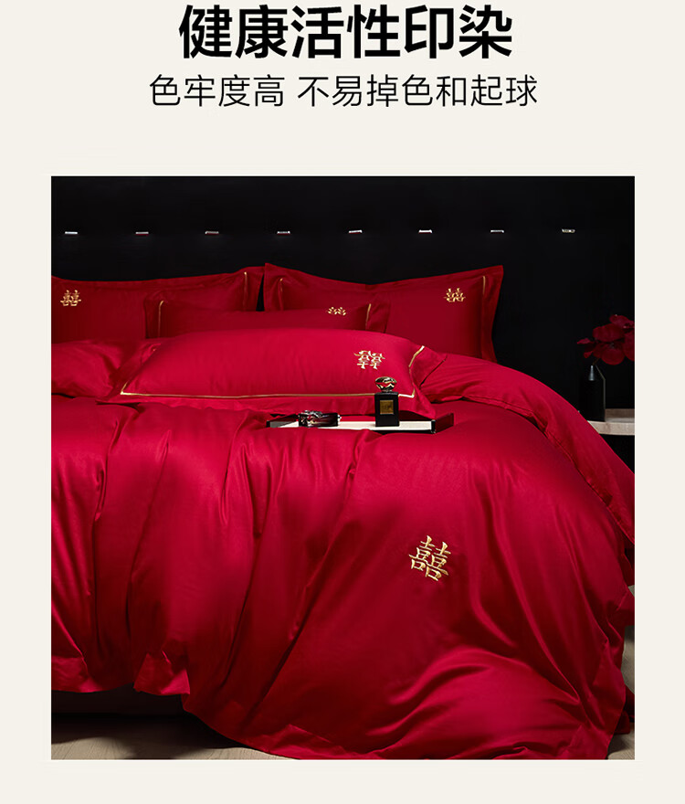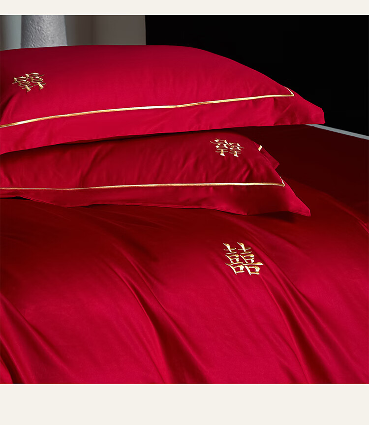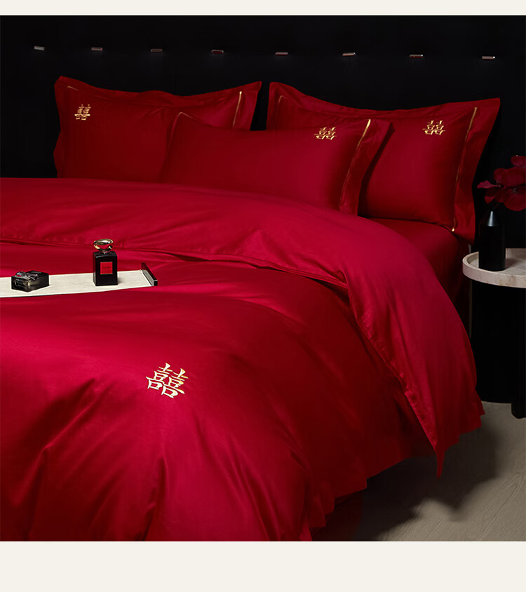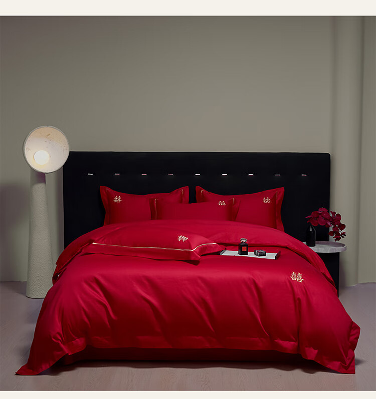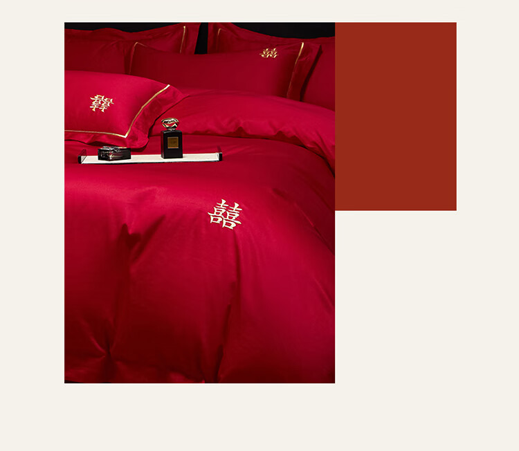 Mercury series home textiles high-end bright red wedding four-piece set wedding quilt cover pure cotton pure cotton sheets and fitted sheets bedding, the only 1.8 fitted sheet four-piece set quilt set 200*230