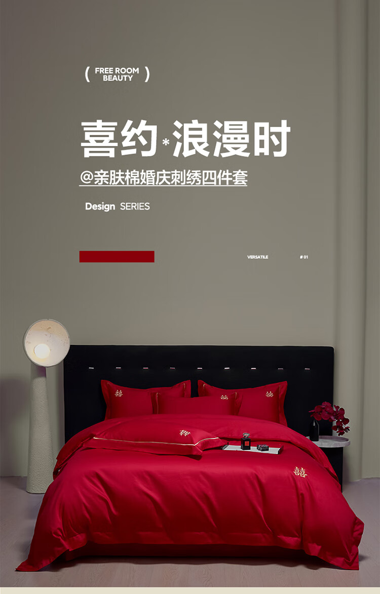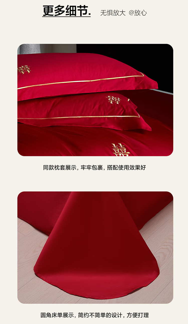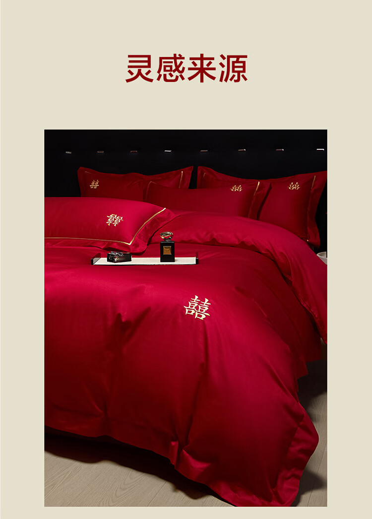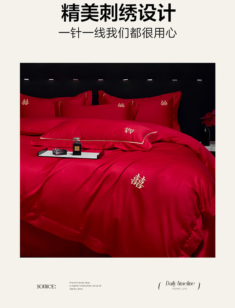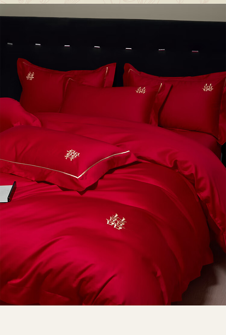 Mercury series home textiles high-end bright red wedding four-piece set wedding quilt cover pure cotton pure cotton sheets and fitted sheets bedding, the only 1.8 fitted sheet four-piece set quilt set 200*230