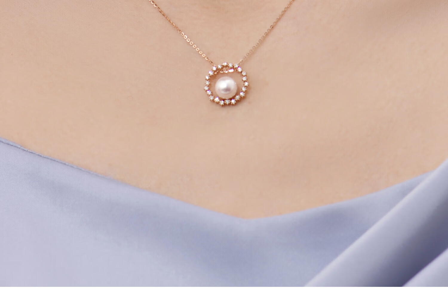 Koshan Jewelry Akoya Seawater Pearl Necklace 18K Gold Pearl Pendant Birthday Gift for Wife Rose 18K Gold Pearl 88.5mm
