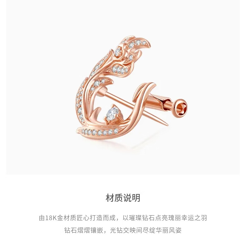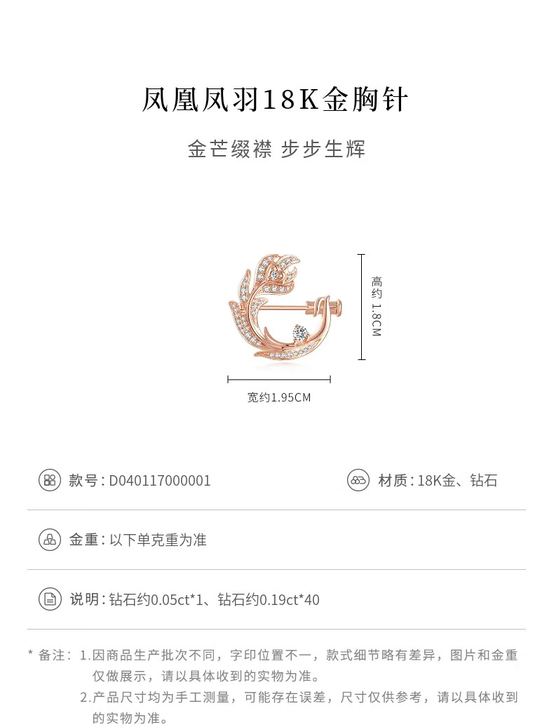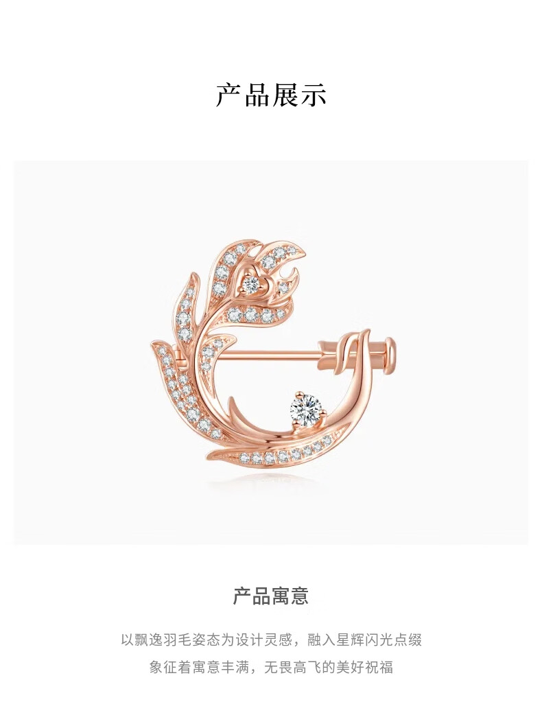 Lao Fengxiang phoenix feather phoenix feather feathers full of stars and diamonds 18K gold rose gold brooch female gift Phoenix brooch 2.47