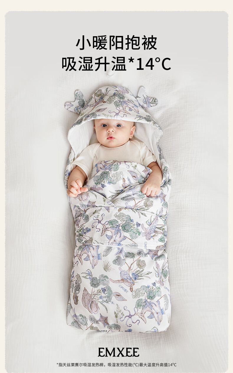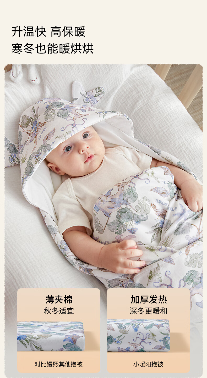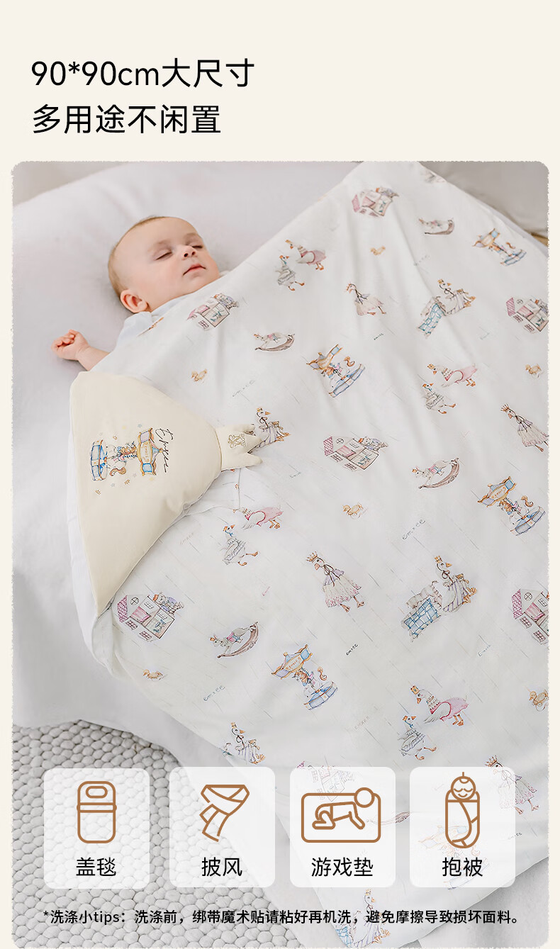 EMXEE baby blanket, four-season blanket, newborn baby autumn and winter baby blanket, anti-jumping blanket, heated velvet inner core, removable Lucky Goose, indoor 0-28 90x90cm