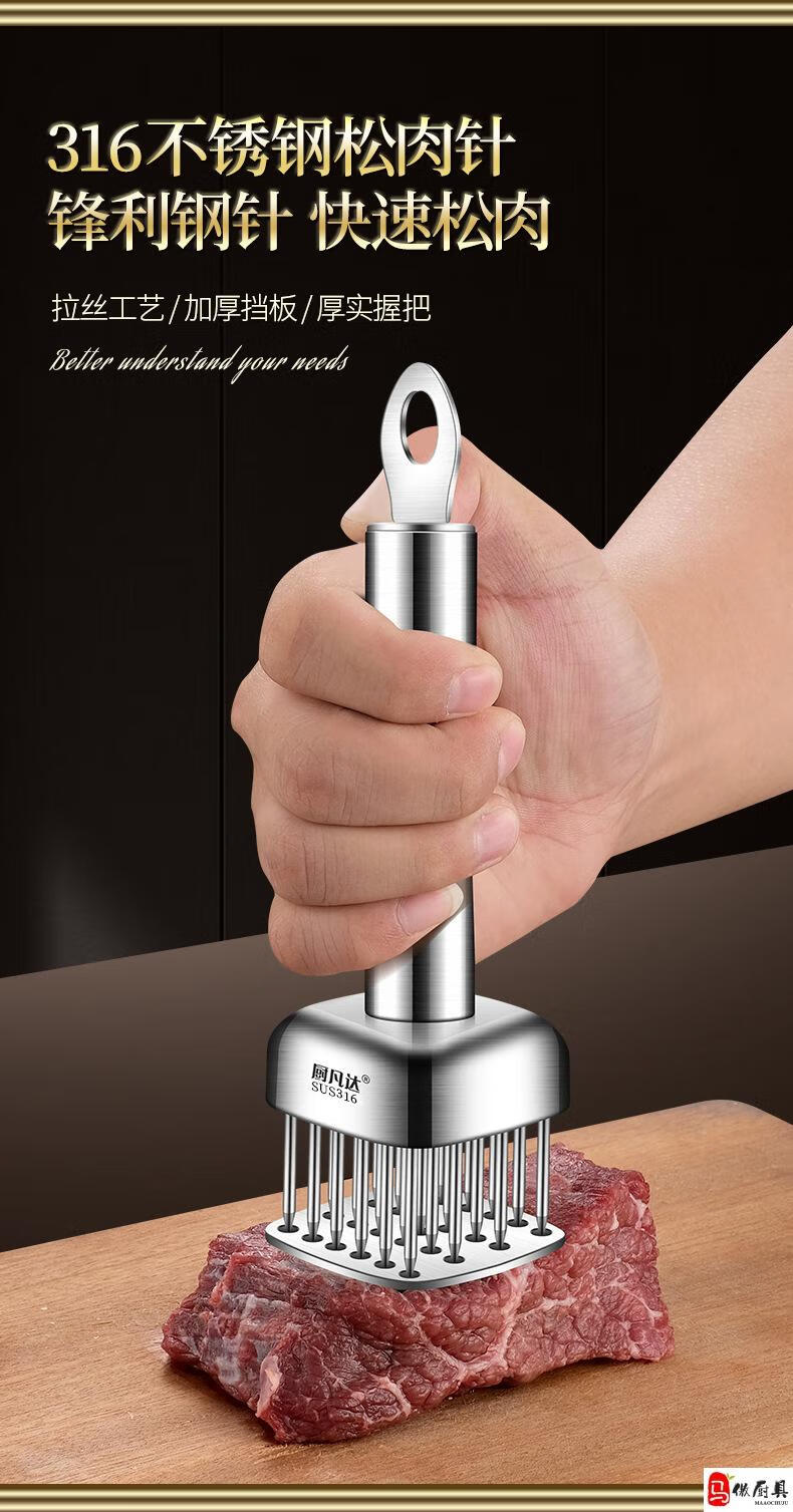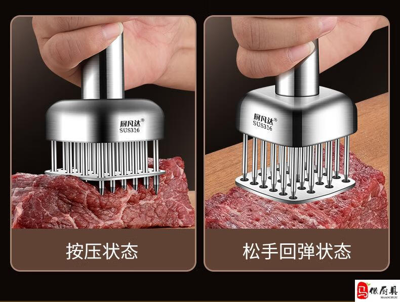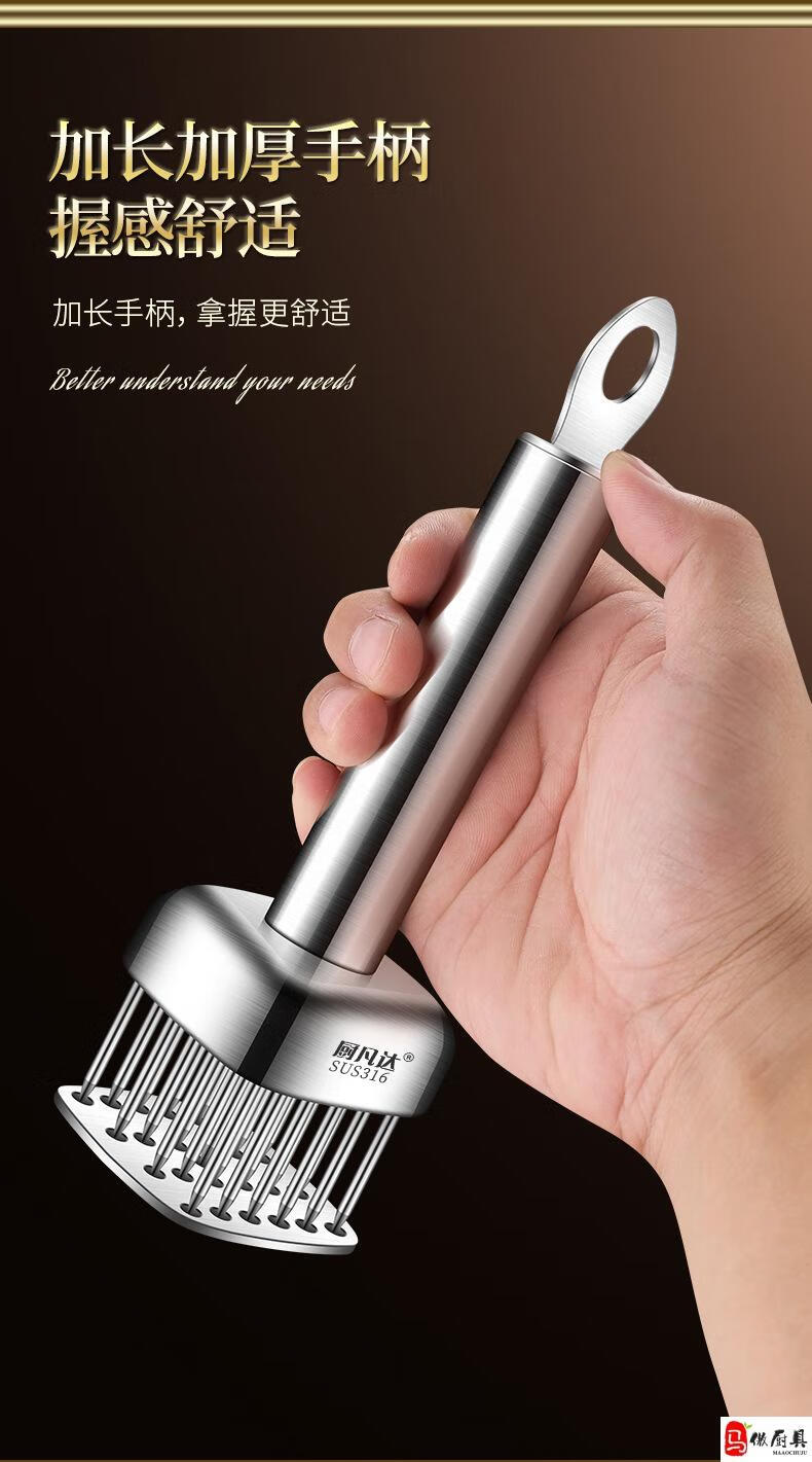 Miaopule German high-end brand imported meat loosening hammer 316 stainless steel one-piece meat hammering meat loosening needle muscle breaking kitchen round flat needle style 304 food safety material