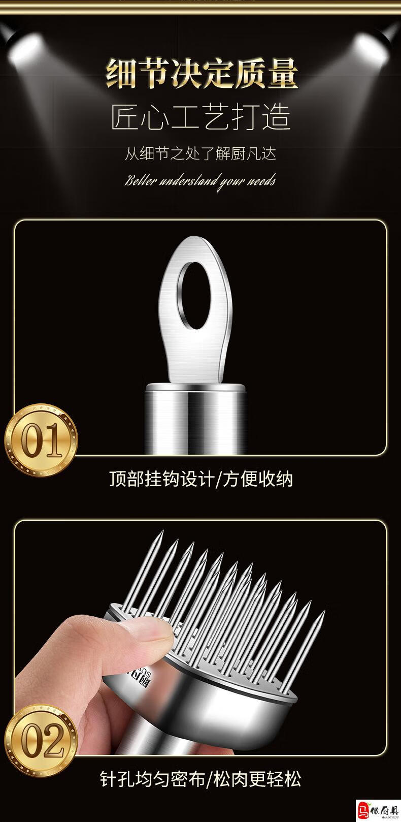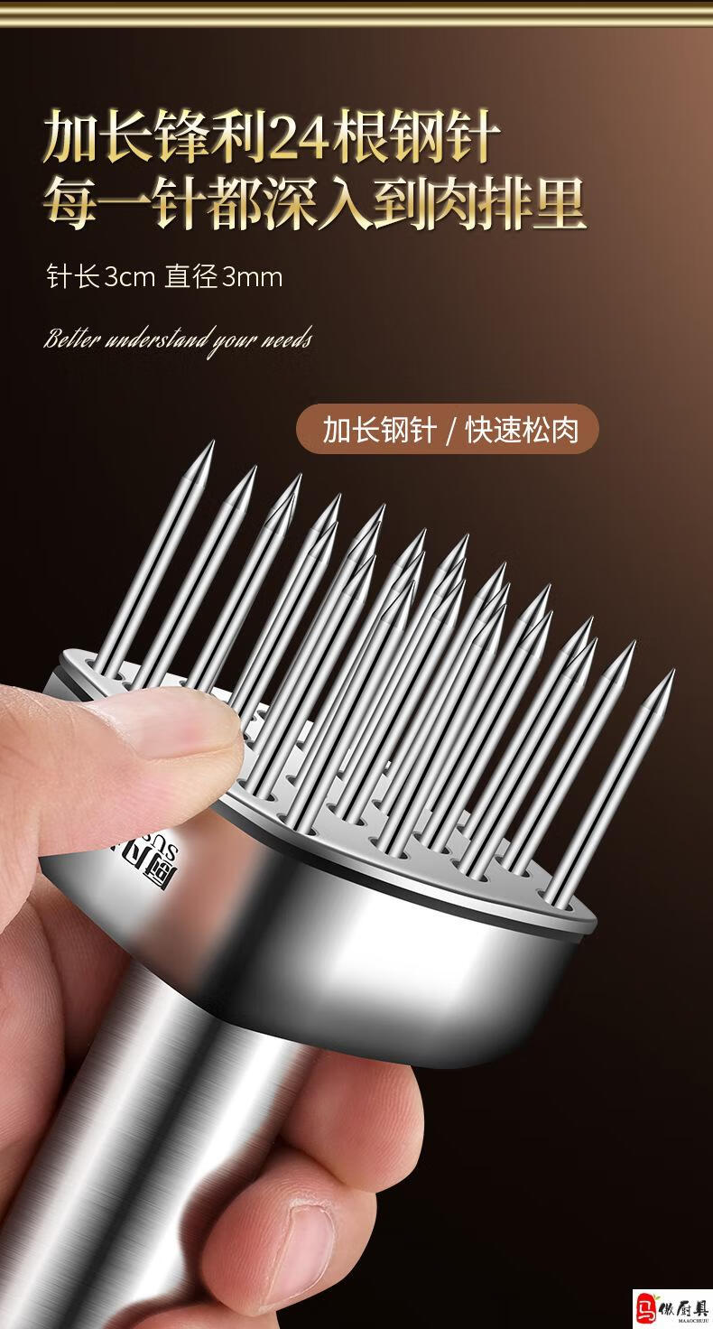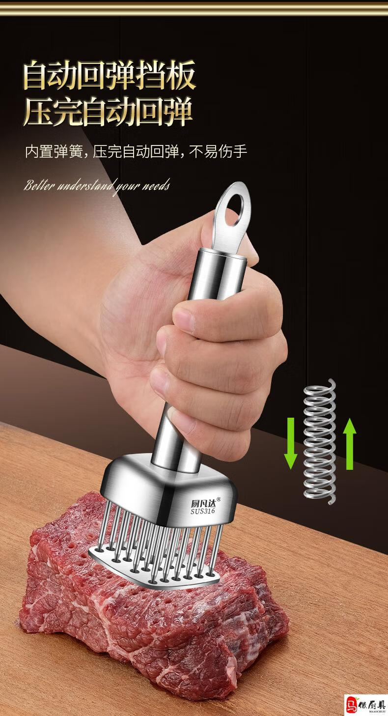 Miaopule German high-end brand imported meat loosening hammer 316 stainless steel one-piece meat hammering meat loosening needle muscle breaking kitchen round flat needle style 304 food safety material