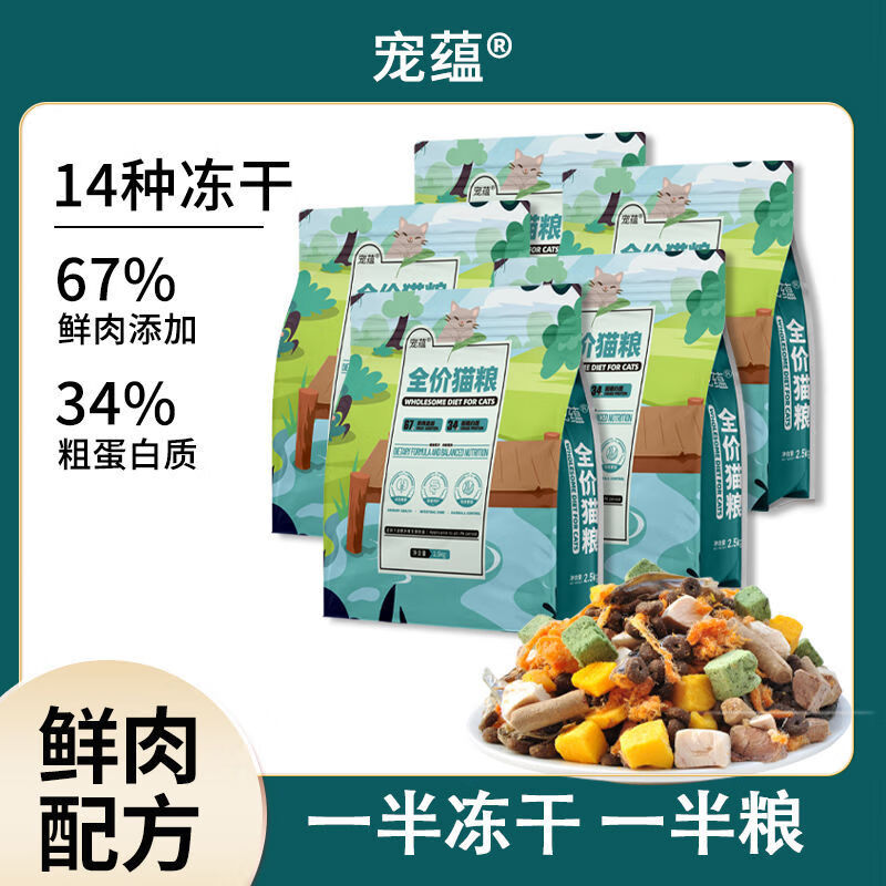 Chongyun Grain-Free Baked Cat Food, half freeze-dried and half grain, full price cat staple food, universal for adult cats and young cats, 14 pieces of food, 14 types of meat + gastrointestinal probiotics 20Jin Jin is equal to 0.5kg