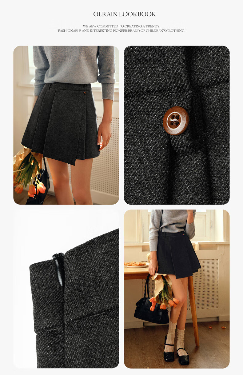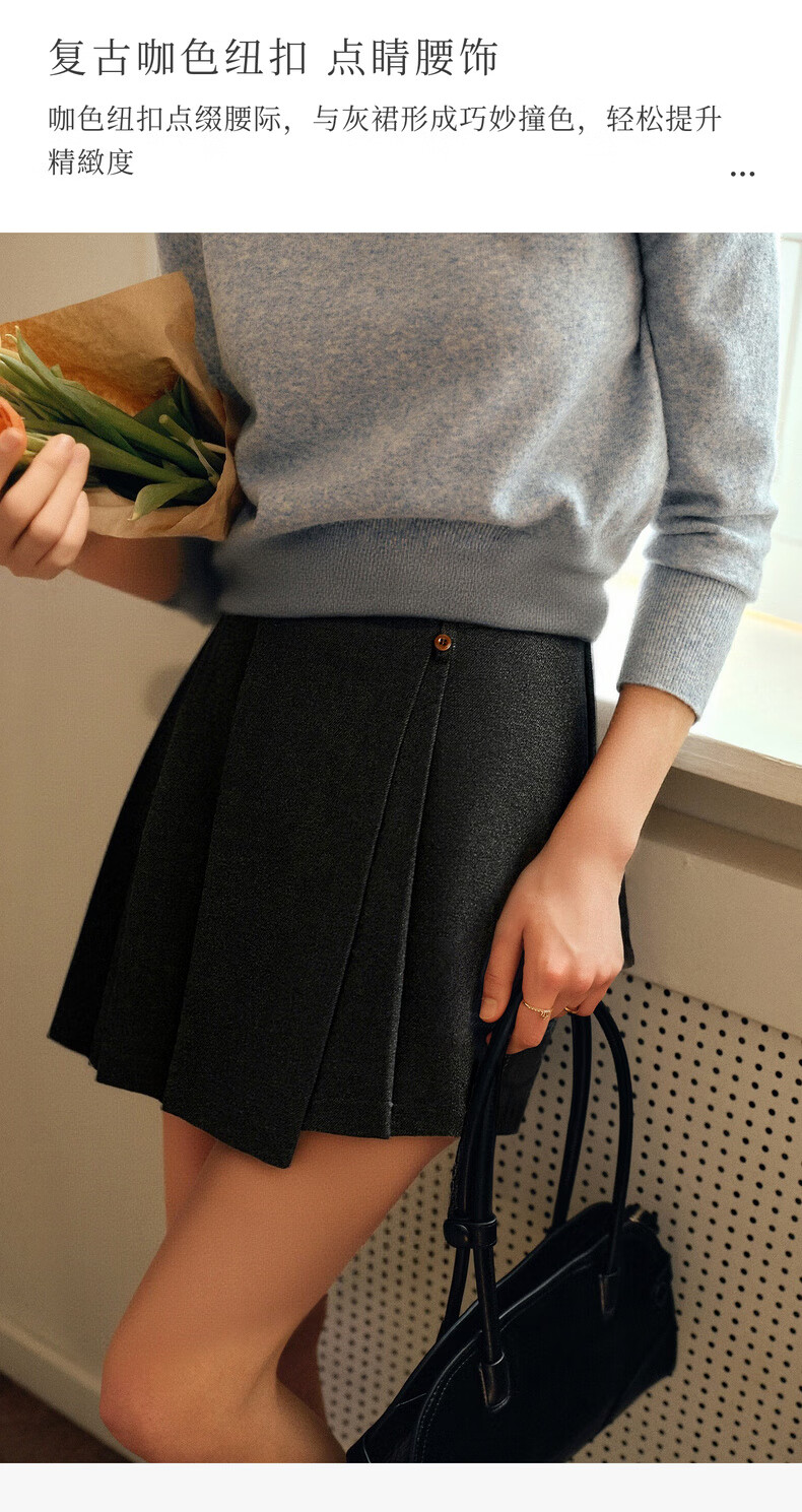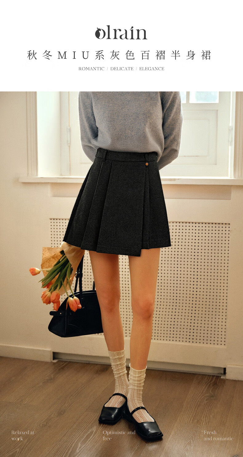Olrain 2025 new women's autumn high-waist slimming pleated skirt gray skirt a-line skirt gray M 160/68A/M