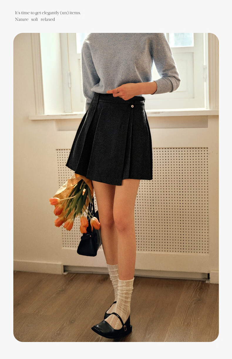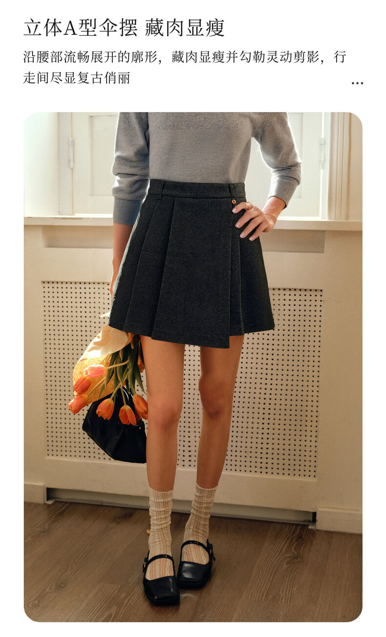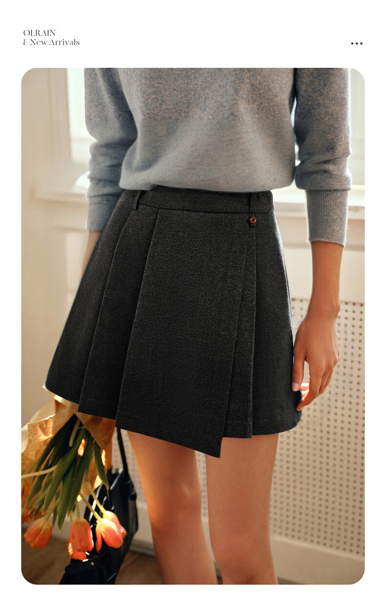 Olrain 2025 new women's autumn high-waist slimming pleated skirt gray skirt a-line skirt gray M 160/68A/M