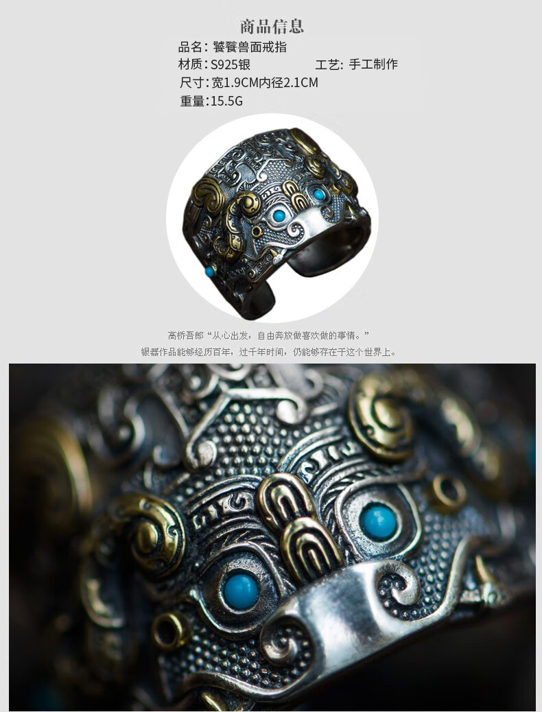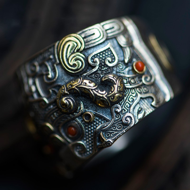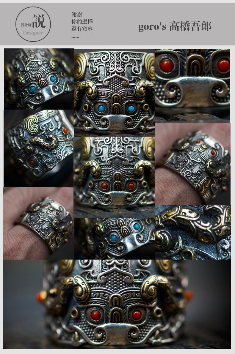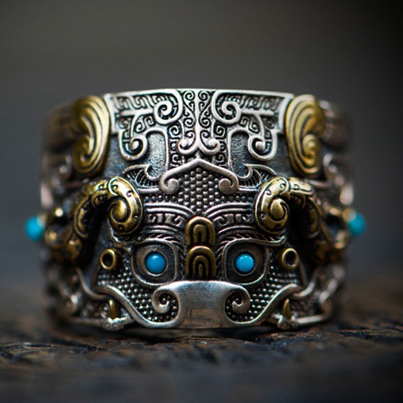 CHAUIYIN Chaoyin Jewelry Ring S925 Silver Taotie Animal Face Pattern Open Ring for Men and Women Ring Fashion Personality Domineering Southern Red Style