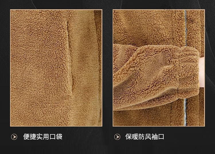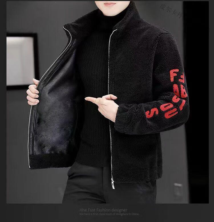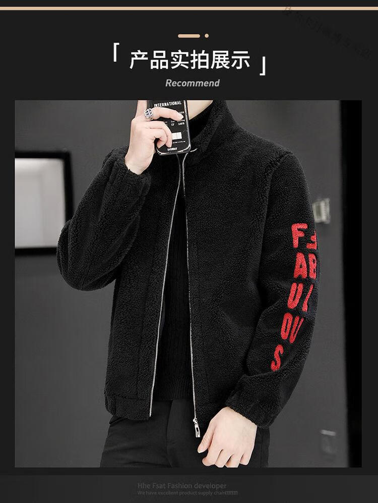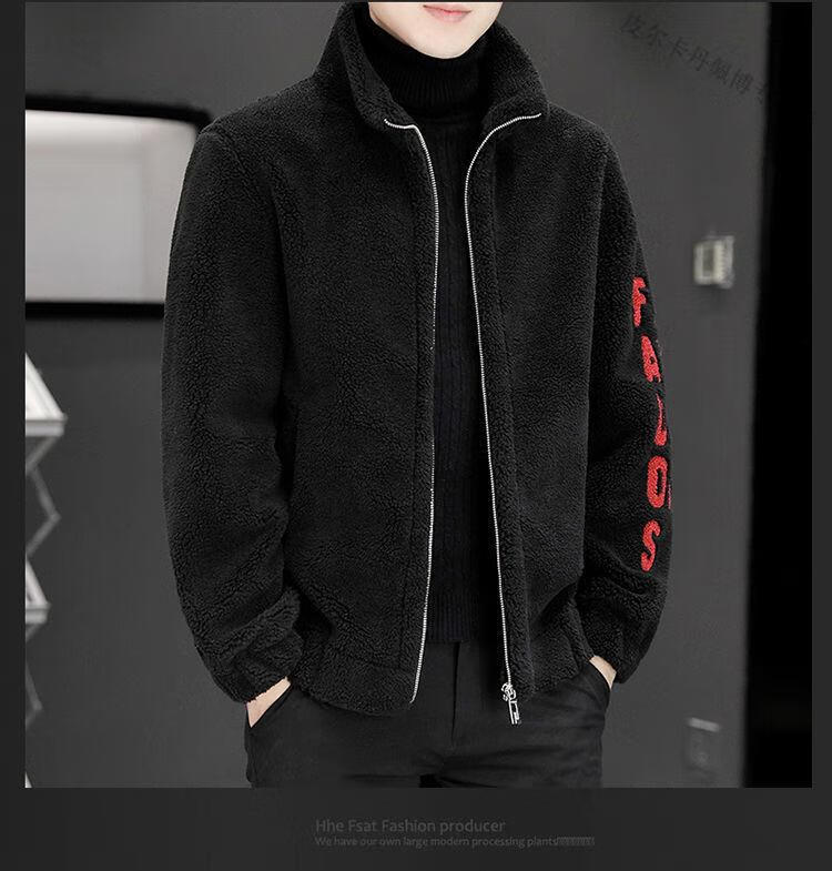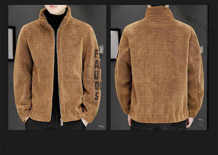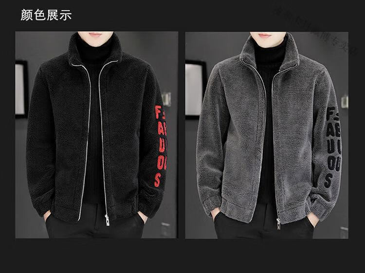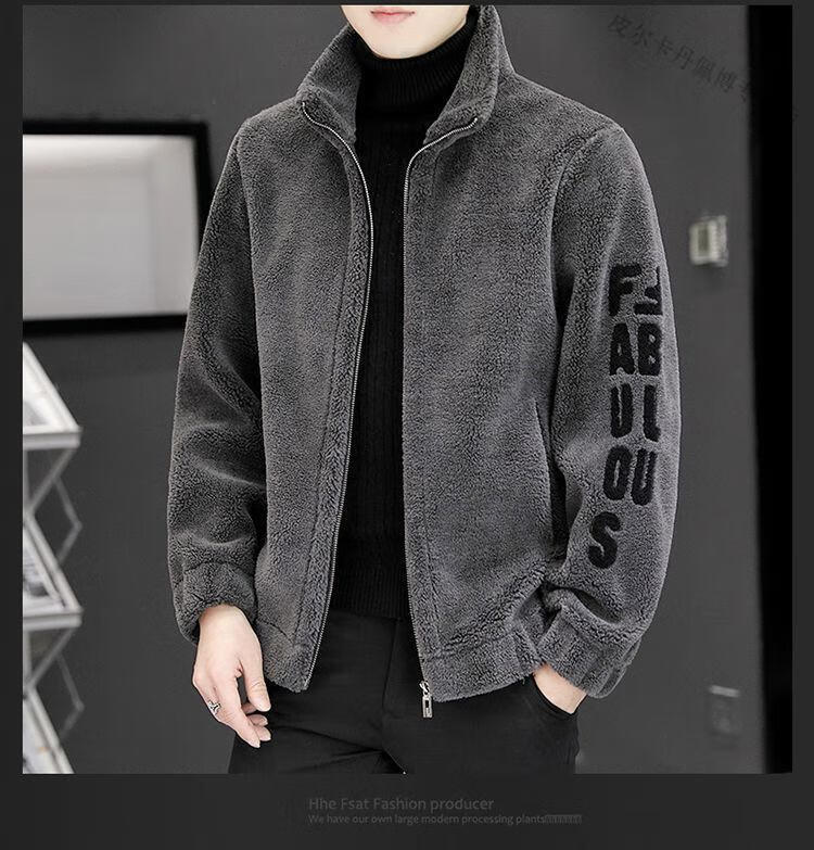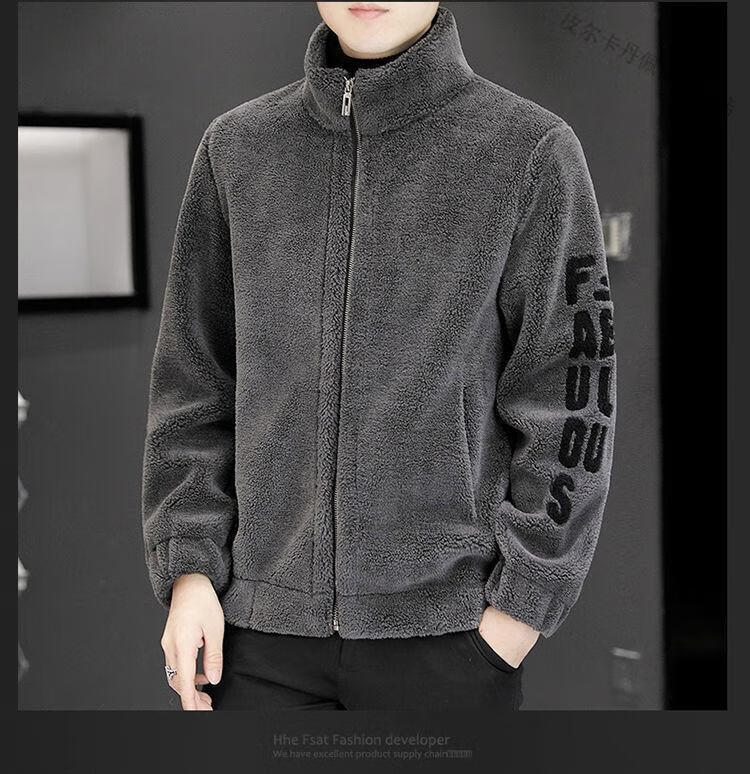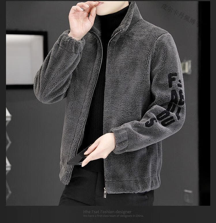 Pierre Cardin 2026 men's autumn and winter new imitation sherpa jacket men's stand collar trendy velvet thickened men's winter jacket GG09# gray single layer L 116-130Jin Jin equals 0.5 kg