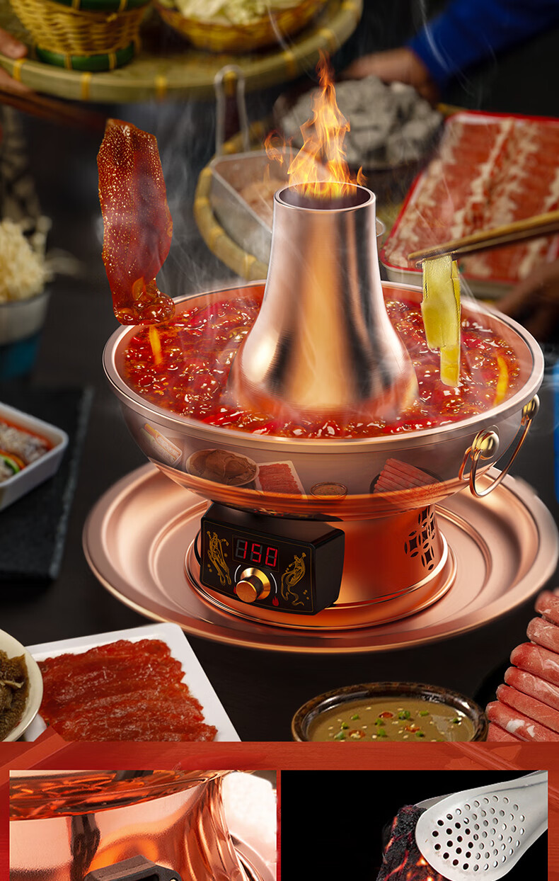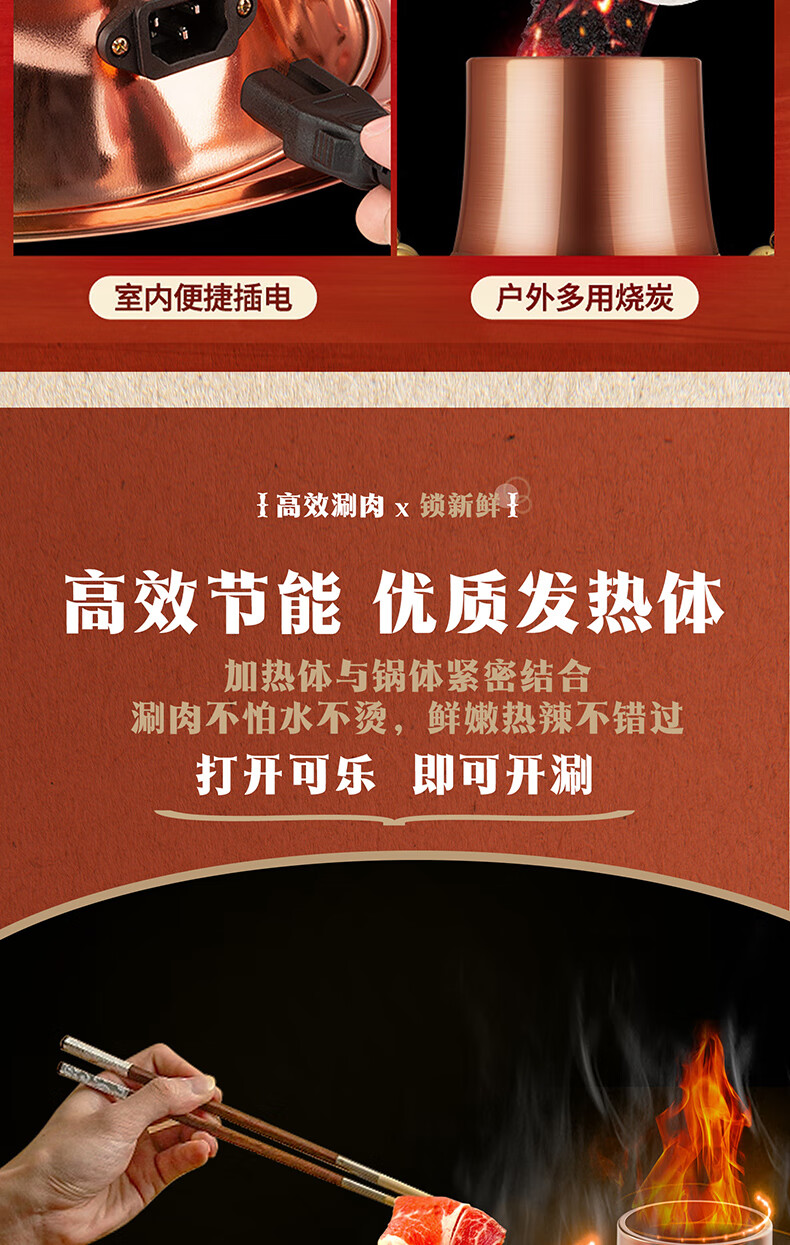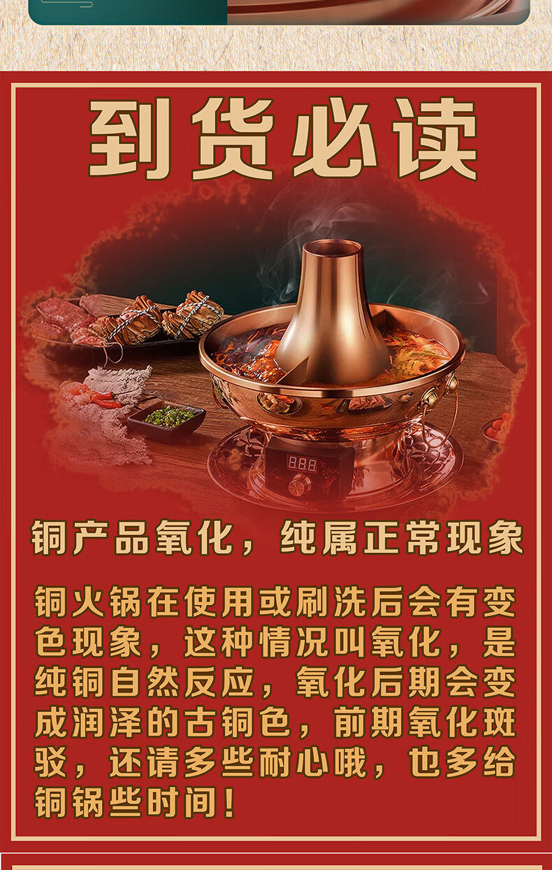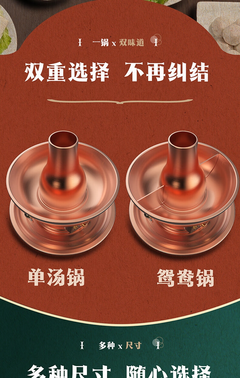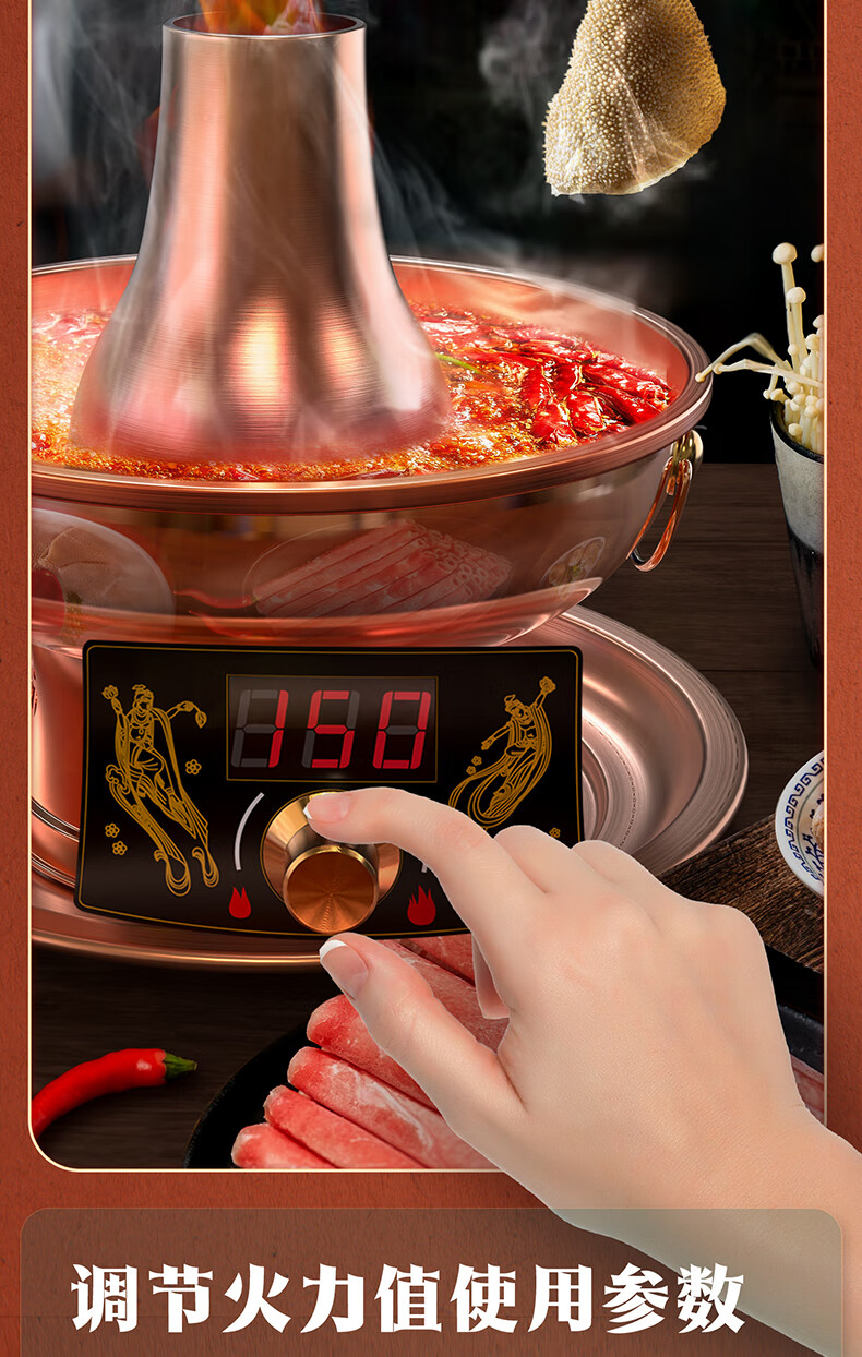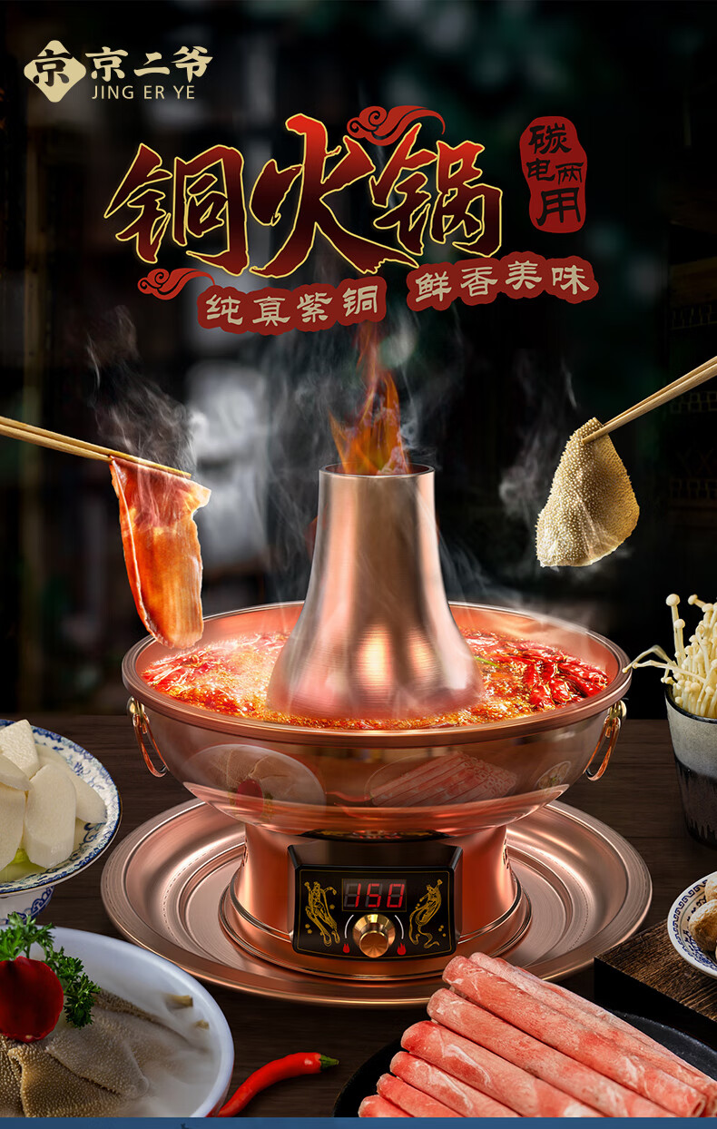 Jing Er Ye pure red copper copper hot pot Jing Er Ye electric hot pot traditional thickened electric carbon dual-purpose brushed meat handmade household copper stove 34 mandarin duck pot (free spoon tool gift pack) suitable for 7-10 people 34cm
