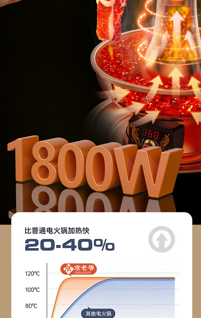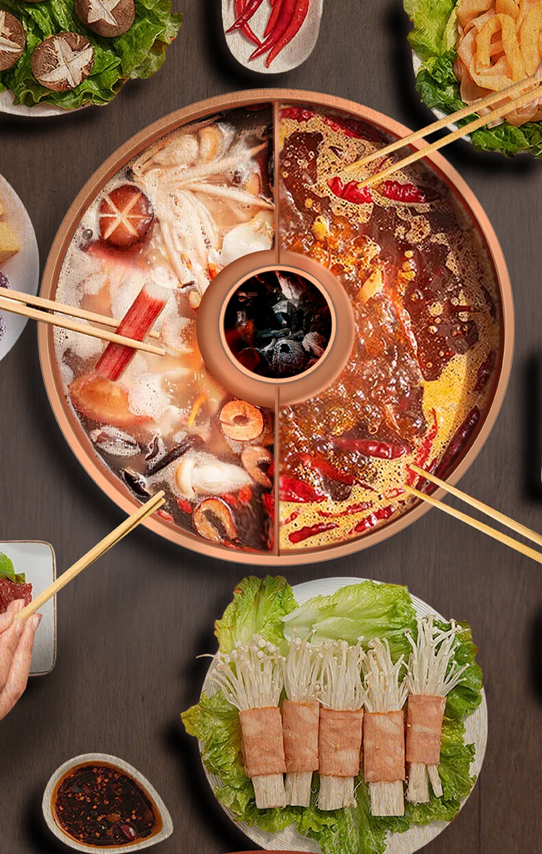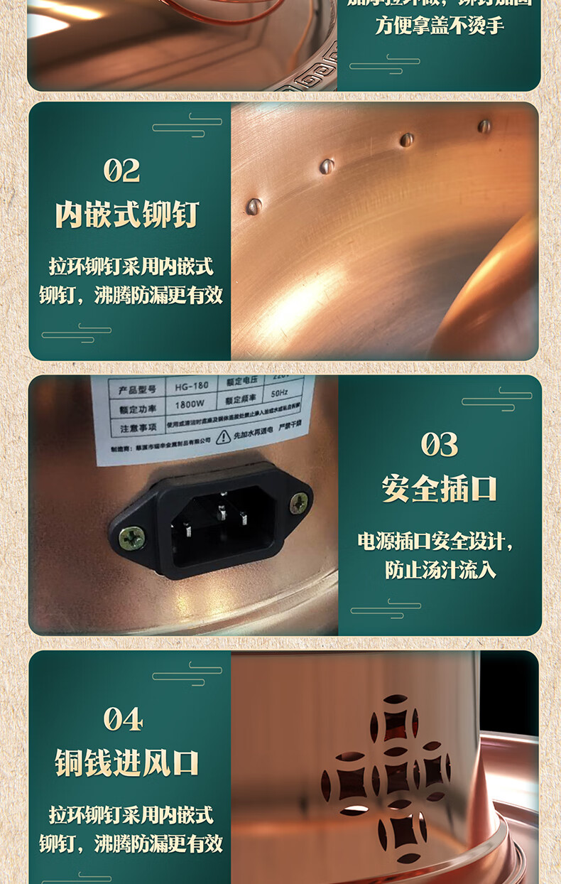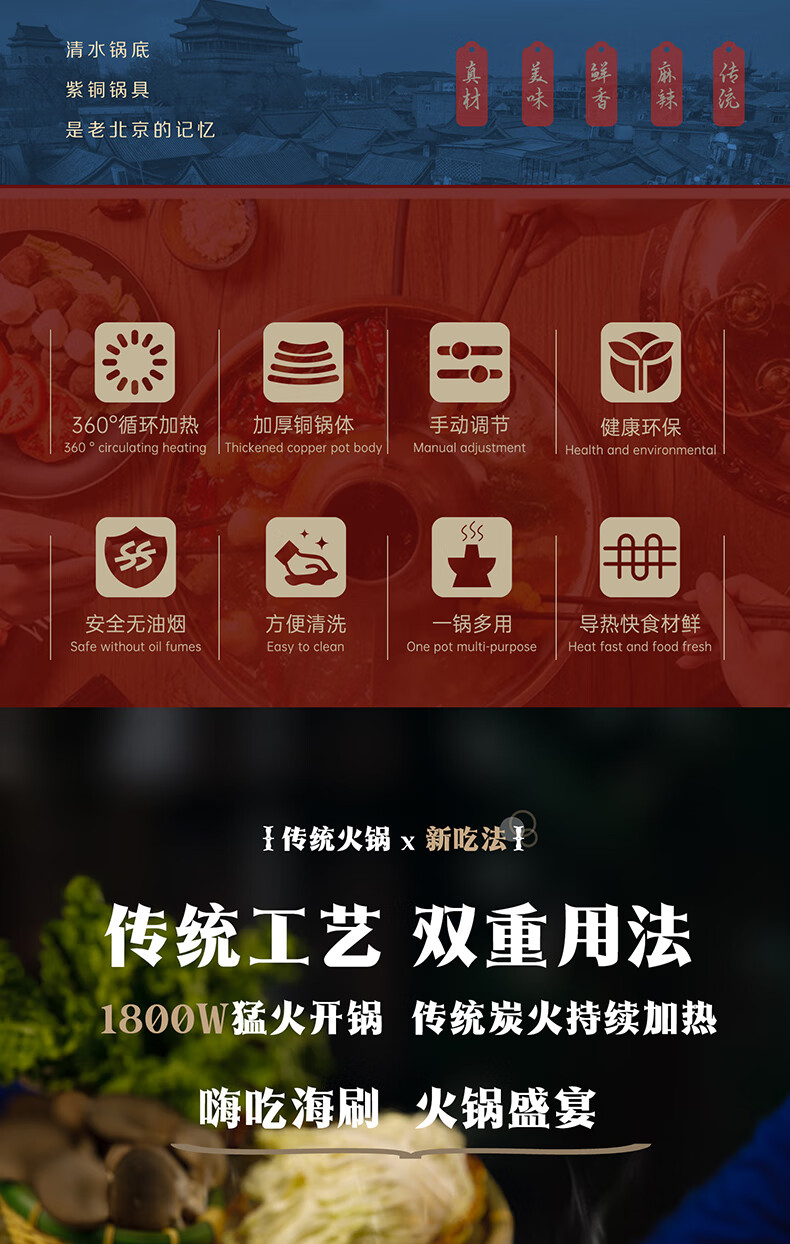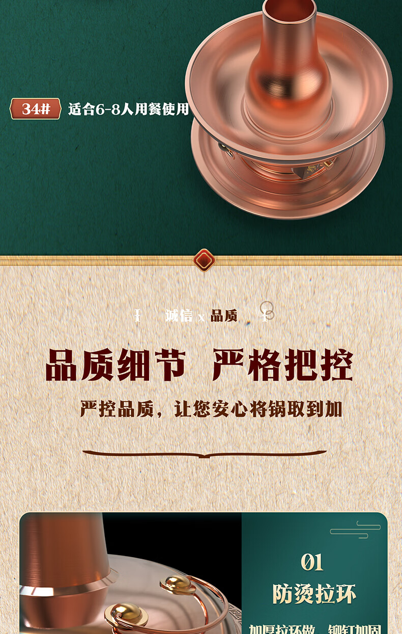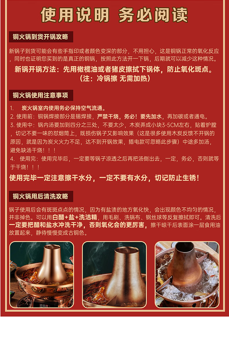 Jing Er Ye pure red copper copper hot pot Jing Er Ye electric hot pot traditional thickened electric carbon dual-purpose brushed meat handmade household copper stove 34 mandarin duck pot (free spoon tool gift pack) suitable for 7-10 people 34cm