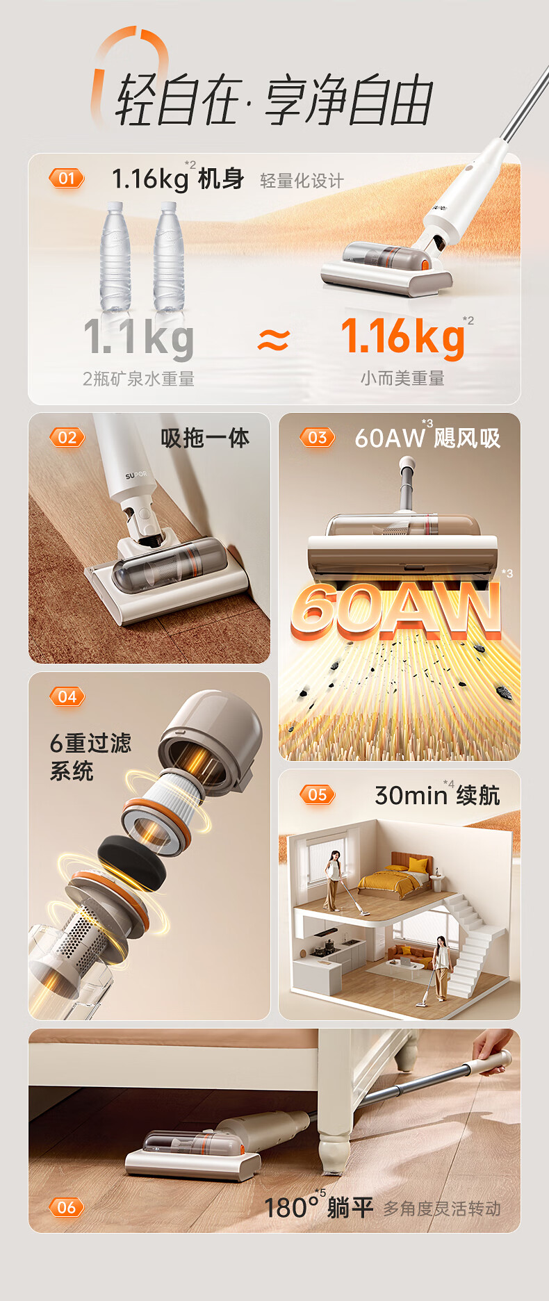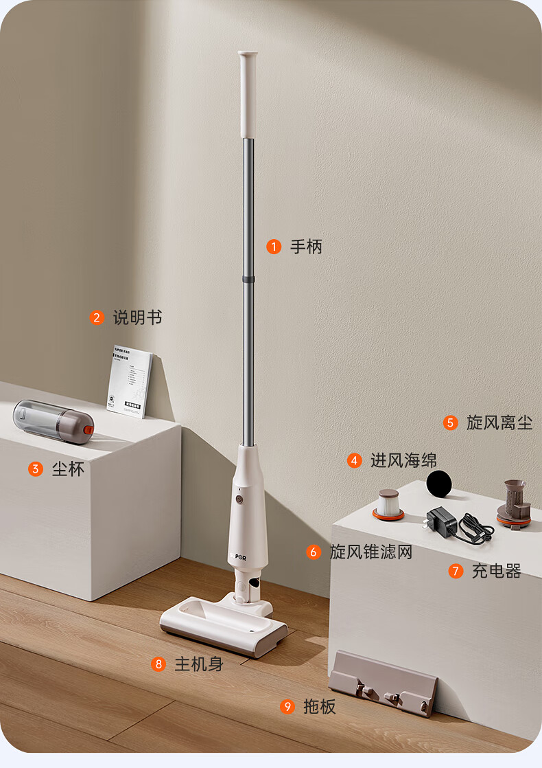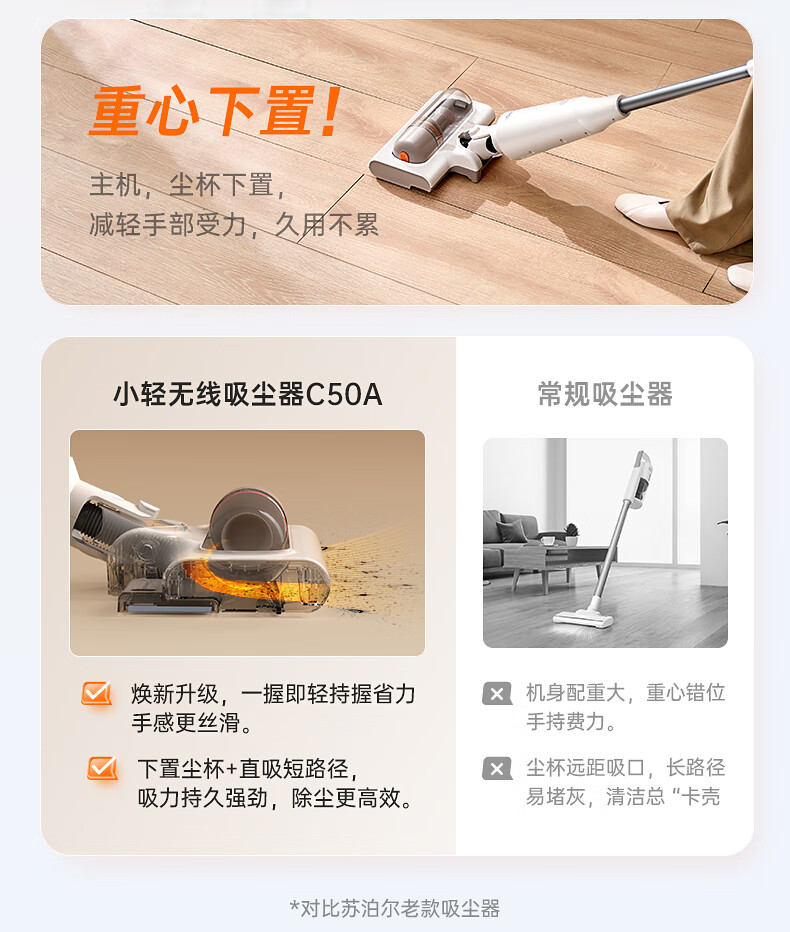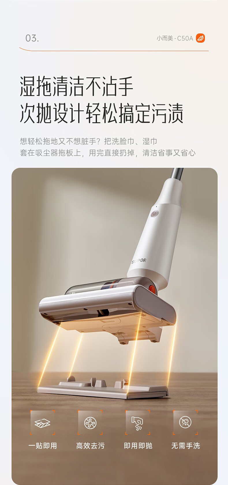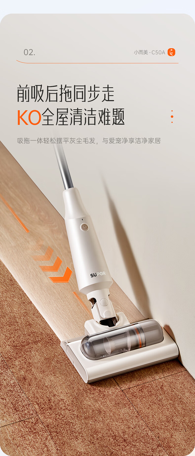 SUPOR vacuum cleaner suction and mopping all-in-one home handheld wireless lightweight high-power high-suction bedroom carpet vacuum small portable mop pet hair sweeper 180 flat EVS-C50A