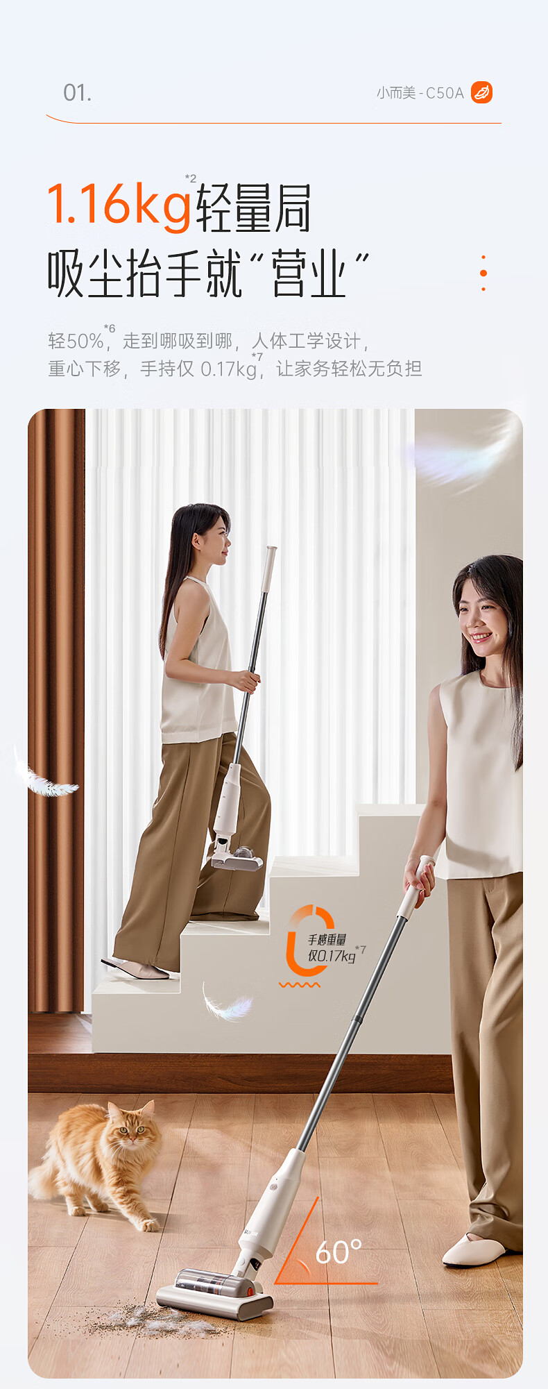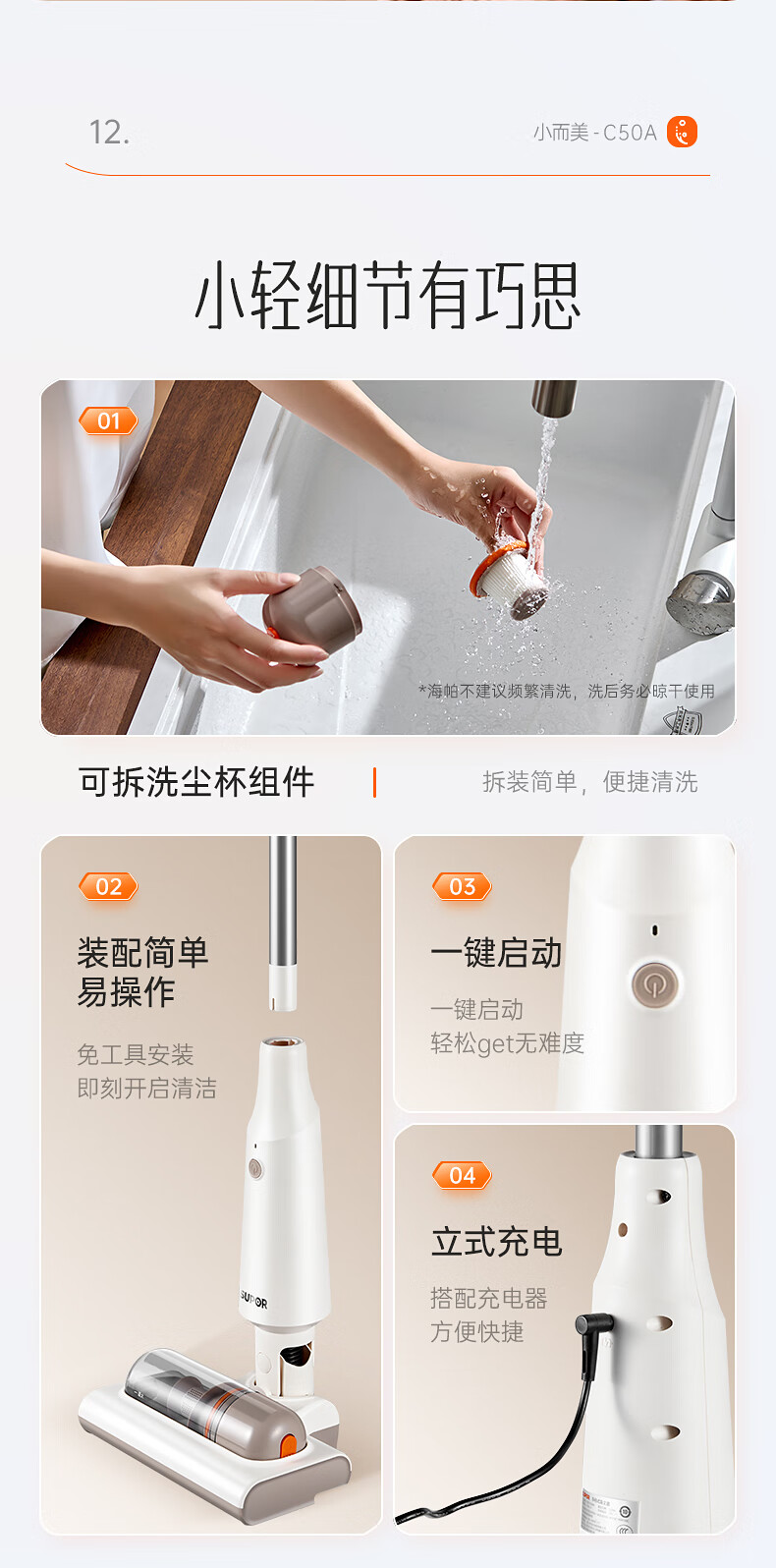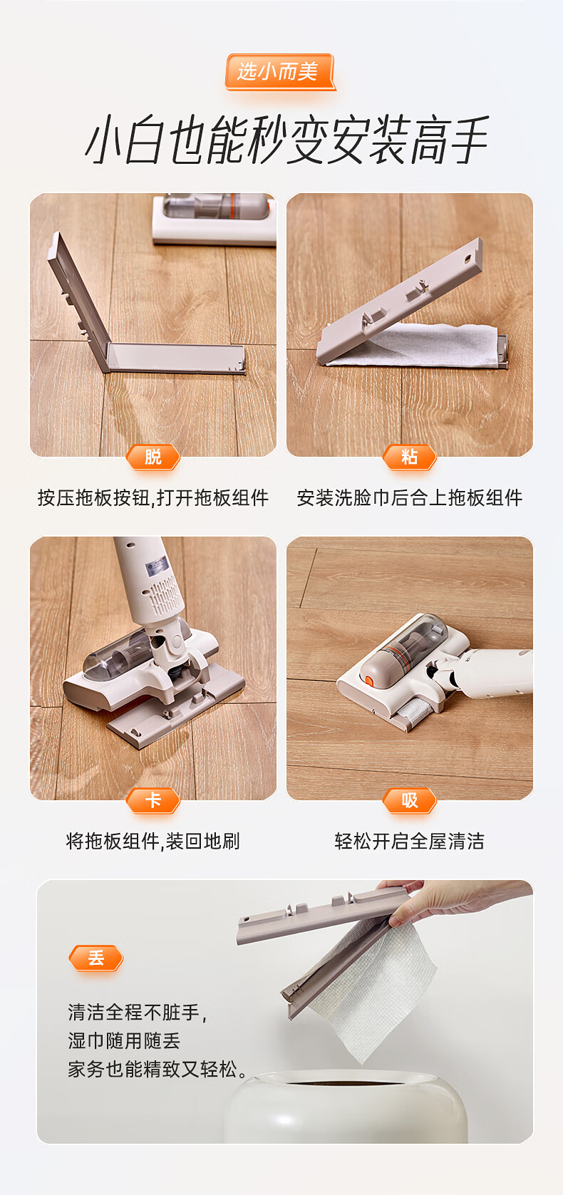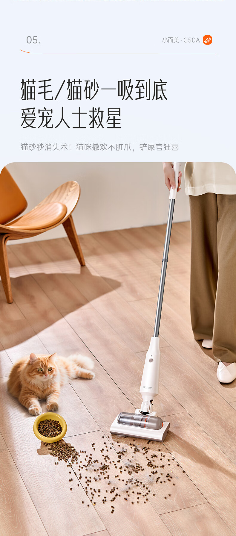SUPOR vacuum cleaner suction and mopping all-in-one home handheld wireless lightweight high-power high-suction bedroom carpet vacuum small portable mop pet hair sweeper 180 flat EVS-C50A